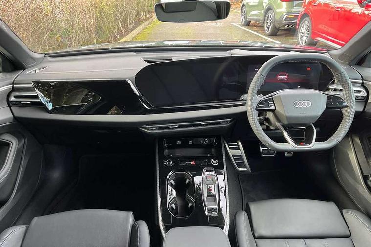 Adaptive cruise control, Advanced driver attention and fatigue montior, Audi application store, Audi assistant, Audi connect emergency call and service, Audi drive select, Audi smartphone interface, Audi virtual cockpit plus with 11.9" OLED colour display, Automatic start/stop system with coasting functionality, Camera based traffic sign recognition, Intersection assist, Lane departure warning, MMI navigation plus with high resolution 14.5" OLED touchscreen colour display, Park assist plus, Parking system plus with 360 display, Progressive steering with servotronic, Rear view camera, Swerve assist and turn assist, Traffic sign based speed limiter, Sports suspension lowered by 20mm, 2 USB-C ports in both the front and rear, Audi sound system impressive sound with 10 loudspeakers including centre speaker and subwoofer, 6-channel amplifier with a total output of 180 watts, DAB digital radio reception, Smartphone compartment with wireless charging, Aluminium roof rails, Aluminium window trims, Auto dimming rear view mirror, Body colour door mirrors, Door mirrors - electrically adjustable, heated, folding and auto dimming on both sides, Front and rear electric windows, Front door sill trims with aluminium inlays, illuminated with 'S' logo, High beam assist, LED headlights Plus incl. digital daytime running lights, turning light, all-weather light, motorway light, manouevring light and intersection light, LED rear lights pro incl. dynamic rear indicators and illuminated light strip with animated coming and leaving home function, LED third brake light, Privacy glass, Rear and side windows with heat insulating glass, Rear side wing doors, Rear wash/wipe, S Line badges on the front wings, S line bumpers, radiator grille and diffuser in phantom black and diffuser insert in matt anthracite, White rhombus logo projection light in exterior mirrors, Windscreen with acoustic glazing, 3 rear headrests, 3 seat rear bench, 3 spoke leather steering wheel with multi-function buttons with touch control, flattened on top and bottom, with S badging and contrast stitching, 3-zone automatic climate control, 40:20:40 split folding rear seat bench with centre armrest and cup holders, Comfort front centre armrest, Front and rear floor mats, Front seats with manual adjustment for position and 4-way electric lumbar support, Front sport seats with integrated headrest and S embossed logo, Headlining in black cloth, Heated front seats, i-Size child seat mounting on the front passenger side and outer rear seats, i-Size and top tether on the outer rear seats, Luggage compartment lid, electrically opening and closing, Manual steering column height and depth adjustment, Single front passenger seat, Stainless steel pedals and footrest, Steering wheel grips in perforated leather and shift paddles, Ambient lighting package plus - A5, 3x3 point rear seat belts, Driver airbag, Electric child safety locks, First aid kit with warning triangle and vests, Front emergency brake assist, Front passenger airbag, Front passenger airbag deactivation, Front side airbags with head airbag system and front interaction airbag, Hill hold assist, Seat belt monitoring with rear seat occupant reminder, Tyre pressure loss indicator, Anti theft alarm, Anti-theft wheel bolts, Keyless Go, Accent surfaces and control buttons in gloss black, Black dashboard with contrast stitching, Inlays in matt brushed aluminium with linear embossing, anthracite, Softwrap in leatherette with contrast stitching, Upper and lower interior elements in leatherette, Tyre repair kit,
