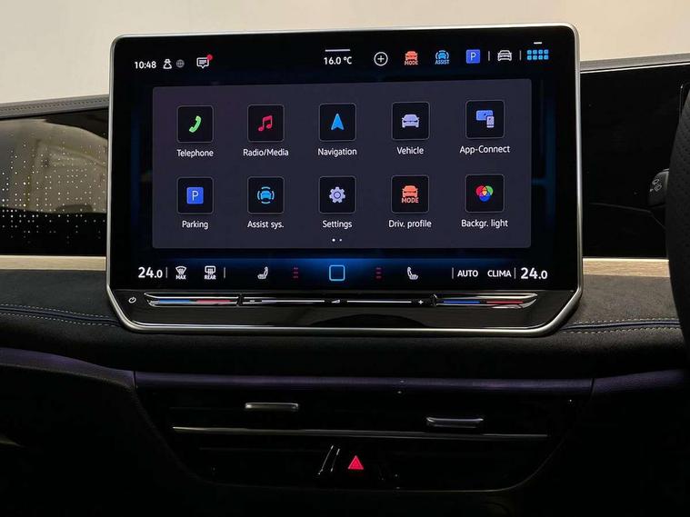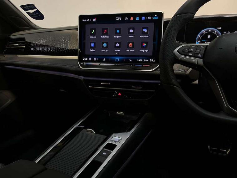 2 x Front USB-C ports, 2 x USB-C charging sockets on the centre console in the rear, charging capacity up to 45W, Adaptive cruise control, Advanced driver attention and drowsiness monitor, Digital cockpit pro 10.25" high resolution, Discover media navigation system includes streaming and internet, Dynamic road sign display, E-Sim card for online connectivity, eCall emergency call service, Full electric tailgate operation, Inductive smartphone charging without external antenna connection, Memory feature for park assist, Oncoming vehicle braking when turning including swerve support, Park assist with park distance control, Predictive speed limiter, Preparation for We connect and We connect plus, Progressive steering, Wireless app connect, Adaptive chassis control DCC pro includes driving mode selection, Front wheel drive, Petrol Particulate Filter, Rear shock absorbers, Rear shock absorption for sports version, Shock absorption in front, Auto dimming interior rear view mirror, Automatic headlights, Body colour bumpers, Body colour door handles, Heat insulating glass in side and rear windows, Heated windscreen + washer jets, LED third brake light, Rain sensor, Rear side wing doors, Rear wiper, Welcome light with surround lighting, 3 seat bench in 2nd row, 3 zone air care climatronic with rear air conditioning control panel, 30 colours options interior ambient lighting, Brushed stainless steel pedals, Front + rear carpet mats, Front head restraints, Front sports seats, Isofix child seat preparation, easy-fit (for two outer rear seats, and front passenger seat), compatible with I-size, Luggage comaprtment cover, power operated, Single front passenger seat, Standard pedal cluster, Sun visors with illuminated vanity mirrors for driver and front passenger, Sunblind for rear side windows, Three rear head restraints, Unsplit rear seat bench, split folding backrest, with centre armrest, Acoustics pack - Passat, LED High matrix headlamps pack - Passat, 3x3 point rear seat belts, ABS (Anti locking brake system) includes BAS (Brake assist) and EBD (Electronic brake pressure distribution), Autonomous emergency braking front assist with pedestrian and cyclist monitoring, Curtain and side airbags in front with centre airbag, Disc brakes in front, Driver/Front Passenger airbags, Drivers knee airbag, Electronic parking brake with auto hold, ESC (Electronic stability control) + EDL (Electronic Differential lock) and ASR (Traction control), EDTC (Engine drag torque control), Extended safety system with proactive passenger protection system, Front passenger airbag deactivation switch, Hill hold function, Tyre pressure loss indicator, Warning triangle and first aid kit, Alarm with interior protection, Keyless locking and starting system keyless access with safelock, Tool kit for tyre mobility set, Trims for alloy wheels,