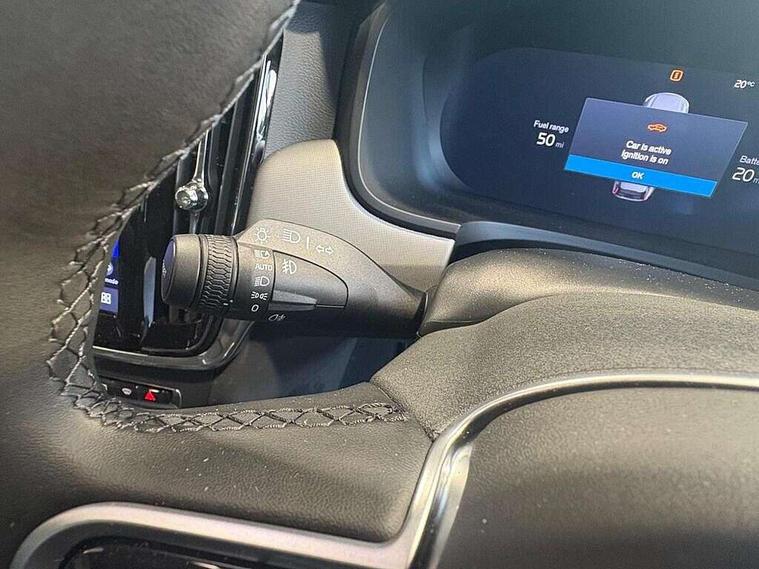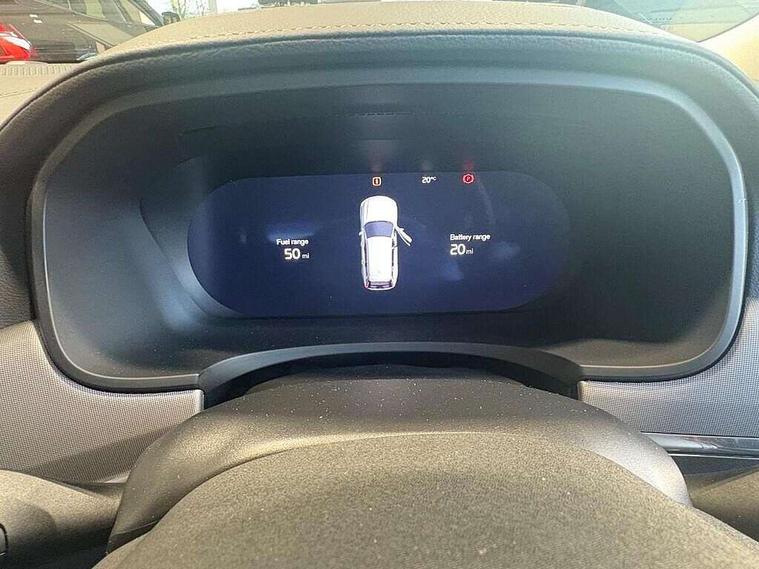 12.3" Progressive Driver Display, 360 degree surround view parking camera with side proximity sensors, 9" centre console touch screen, Adjustable steering wheel force, Apple CarPlay and Android Auto, Bluetooth handsfree system, Drive mode settings, Driver alert control with lane keeping aid, Driver assistance (pilot assist and adaptive cruise control), Driver awareness - Blind spot system + steer assist, cross traffic alert with autobrake, rear collision warning and mitigation, E-call, Emergency assist, Front and rear park assist, Google automotive services - Enabled entertainment apps, navigation with google maps, voice recognition with google assistant, Handsfree bootlid opening/closing, Intelligent speed assistance, Oncoming Lane Mitigation, Power operated tailgate/boot lid, Speed sensitive steering, Volvo on call app, 6m 3 phase 16amp Type 2 / mode 3 charge cable, 8 speed automatic transmission with start/stop + manual change functions, Dynamic chassis, Electric rear axle drive, Lithium-Ion Battery 18.8kWh, On board charger - 6.4 kW 2 phase/3.7kW single phase, Recharging port located in nearside front wing, DAB Radio (Digital Audio Broadcasting), Low speed exterior sound speaker, Premium Sound by Harman Kardon, dirac unison, dolby pro logic II surround sound, 13 speakers/600W output and fresh air subwoofer, Steering wheel remote infotainment controls, Adaptive brake lights with high level LED brake lights, Auto dimming interior + exterior mirrors, Automatic headlight levelling system, Automatic LED Headlights + Active high beam incorporating daytime running lights, Front and rear power windows, Heated windscreen, High gloss black door mirrors and window surround, High gloss black front and rear bumper decoratives, High gloss black mesh front grille and surround, Home safe and approach lighting, Integrated roof rails in high gloss black, Power heated autofolding door mirrors, Puddle lights, Rain sensor with automatic windscreen wiper activation, Rear LED lights with sequential indicators, Rear side wing doors, Rear wiper, Roof antenna, Roof spoiler, Variable front intermittent wipers, Visible VIN plate, 2 zone electronic climate control with Clean zone air quality system + pollen filter, 3 seat bench in 2nd row, 3 Spoke tailored steering wheel with chrome trim, Air purifier particulate matter (PM) 2.5 filter, Ambient door and instrument panel lighting, B Pillar ventilation, Boot lid/tailgate illumination, Bright metal luggage scuff plate, Cargo divider with grocery bag holder, Centre console cupholder and storage, Charcoal carpets and floor mats, Driver and front passenger seat power height adjustment, Extended front seat cushions, Front 12V socket tunnel console and cargo area, Front and rear cabin courtesy light, Front and rear door pocket lights, Front and rear footwell and side step illumination, Front and rear reading lights and centre armrest Storage Illumination, Front headrests, Glovebox compartment with illumination, Heated front seats, Heated rear seats outer positions, Heated steering wheel, Height/reach adjustable steering column, Illuminated luggage compartment, Illuminated recharge aluminium tread plates, Illuminated vanity mirrors + ticket holder, Illumination front tunnel storage, Inner door release handle illumination, Integrated sun curtains in rear doors, ISOFIX attachment on outer rear seats, Leather upholstery, Load cover, Load protection net, Luggage compartment load hooks, Memory function for drivers seat and exterior mirrors, Multi directional lumbar support, Power folding rear headrests, Rear armrest with cupholder, Single front passenger seat, Underfloor cargo storage, Versatile split folding rear seat - 60/40, 3x3 point rear seatbelts, Active bonnet, City safety with steering support with Pedestrian + cyclist + front collision warning with full auto brake and rear auto brake, Driver and front passenger airbags, Drivers knee airbag, Front seats SIPS airbags, Hill start assist, IC (Inflatable Curtains) - Full Length, Passenger airbag cut-off switch, Power child locks on rear doors, Power parking brake with auto hold function, Road sign information display, Run off Road Mitigation, Run off Road Protection, Seatbelt reminder and pretensioners for all seats, SIPS (Side Impact Protection System), Slippery road and hazard light alert, Stability and Traction Control with Spin control, Engine Drag Control and Corner Traction Control, Tyre pressure monitoring system, Vehicle deceleration control with Anti-lock Brake System, Electronic Brake Distribution and Emergency Brake Assist, Warning triangle and first aid kit, WHIPS whiplash protection system - front, 2x Key integrated remote control central locking + fuel flap with deadlocking system and auto open/close power windows, Anti-theft alarm including immobiliser/volume sensor + level sensor, Care key with user defined top speed, Keyless drive includes keyless entry and keyless start, Locking wheel nuts, Private locking for tailgate, Tailored Instrument Panel and Door Tops with Contrast Stitching, 19'' 8 spoke diamond cut black alloy wheels, Tyre sealant kit and compressor,