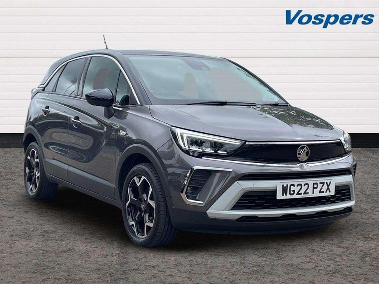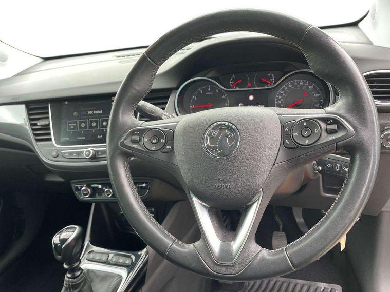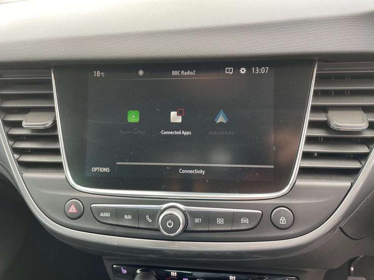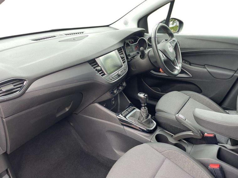 3.5" monochrome instrument colour display, Audible lights on warning, Bluetooth connectivity, Cruise control + speed limiter, Digital clock with automatic RDS time adjustment, Driver drowsiness alert system, E-call, Forward collision warning, Instrumentation - Speedometer, rev counter, low fuel gauge warning light + water temperature gauge warning light, shift up/down indicate light, Lane departure warning system, Multi function trip computer, Multimedia sat nav pro with 8" colour touchscreen, AM/FM, Bluetooth streaming, Bluetooth mobile phone portal, apple CarPlay/Android Auto + 6 speakers, Outside temperature display with ice warning, Refridgerant low indicator, Service interval indicator, Speed sensitive power steering, Speed sign recognition, Vauxhall connect, Front wheel drive, 2 x USB connections, DAB Digital radio, Steering wheel mounted audio/phone/cruise controls, 2 speed wipers/wash wipe/intermittent wipe, Alloy effect front and rear skid plates, Automatic anti dazzle rear view mirror, Automatic headlamp levelling system, Automatic high beam control with cornering light, Automatic lighting control, Black door mirror housings, Black radiator grille with chrome bar, Black roof, Body colour door handles, Body colour front and rear bumpers, Chrome effect upper window moulding, Dark tinted rear side windows + tailgate window, Electrically adjustable and heated door mirrors, Front power windows with express up/down and anti-pinch function, Hazard warning lights, Headlamps for left side traffic, Heated rear window, Integrated tailgate spoiler, Intermittent rear wash/wipe, LED daytime running lights, LED front fog lights, LED Headlights, LED side repeat indicators, LED tail lights, Rain sensitive windscreen wipers, Rear fog lights, Rear power windows with express up/down and anti-pinch function, Rear side wing doors, Rear wing door, Reversing light, Side window demist vents, Solar heat absorbing windscreen and windows, Third brake light, Welcome lighting, Windscreen demist vents, 12v power outlet - front, 2 way adjustable front passenger seat, 2 way front passive headrests, 3 rear seats, 3 spoke flat bottomed leather covered steering wheel with bezel decoration, 4 way electrically adjustable lumbar support for drivers seat, 60/40 split folding rear seat backrest, Adjustable rear seat backrest, Air recirculation facility, Ambient lighting, Anti submarining ramps in front seats, Cabin particulate filter - removes dust, airborne particles and pollen, Centre console, Driver and front passenger illuminated vanity mirrors with flip up covers, Driver's seat armrest, Drivers ergonomic active seat with 8 way manual adjustable driver seat , height, reach and backrest, Dual zone electronic climate control, Fade up/fade down on interior lighting, Four adjustable facia vents, Front door pockets with bottle holders, Front map reading lights, Fully carpeted luggage area, Glovebox with lid, Height adjustable front/rear head restraints, Illuminated load area, Interior courtesy light operated by all doors, Isofix system on outer rear seats, Jet black premium leather side bolsters, Luggage compartment cover, Multi-speed fan with Illuminated control, Open storage compartment in centre console, Passenger assist handles, Reach + rake adjustable steering column, Rear centre headrest, Rear door pockets with bottle holders, Rear floor ventilation ducts, Rear reading lights, Satin chrome effect bezel on steering wheel, Seat cushion extension, Single front passenger seat, Sparkle cloth/vinyl upholstery, Storage pockets on front seat backs, Two drinks holders in centre console, Rear view camera plus pack - Crossland, Winter pack - Crossland, 3x3 point rear seatbelts, 6 airbags - Driver and co-driver front, front side, head curtain roof airbags, front and rear row coverage airbags, ABS, Automatic emergency braking with pedestrian detection, Child locks on rear doors, CSC - Cornering stability control, Deactivate switch for side impact airbags, Deformation zones front and rear, Dual seatbelt pretensioners on front seats, EBD - Electronic brakeforce distribution, Energy absorbing steering column, Engine drag torque control, ESP + traction control, Front and rear seatbelt unfastened audible warning and warning light, Front side impact airbag, Hill start assist, Hydraulic Brake Assist (HBA), Hydraulic brake boost, Inertia reel lap and diagonal seatbelts for all seats, Passenger airbag deactivate switch, Pedestrian detection, Rear seat belt pretensioners, Reinforced passenger safety cell, Seatbelt load limiter, Side impact protection beams, Smart seatbelt reminder for front and rear seats, Tyre pressure monitoring system, 2 remote folding keys, Electronically protected audio equipment, Engine immobiliser, Locking wheel nuts, Remote central deadlocking, Remote control central locking activation switch on driver door, Remote control central locking operates on doors, tailgate and fuel filler flap, Remote security alarm system, Visible vehicle identification number, Black facia with silver trim insert, Black trim inserts on front doors, Cluster black with chrome rings, 17" five twin spoke diamond bi colour alloy wheels,