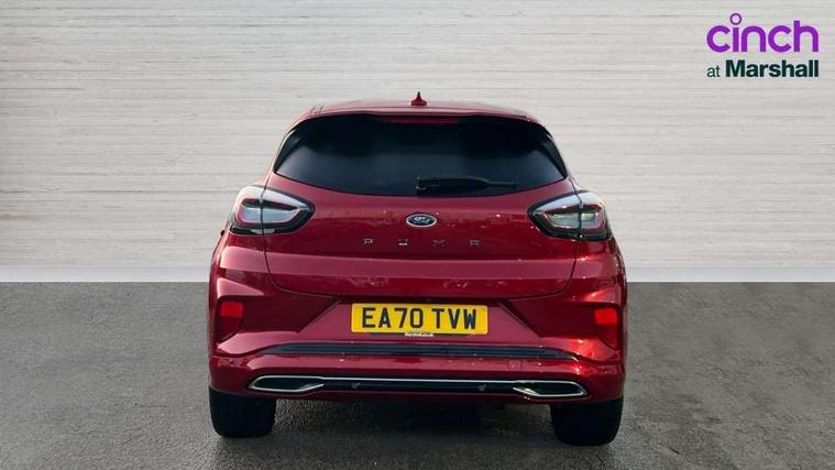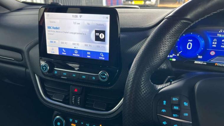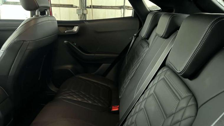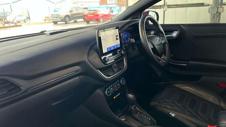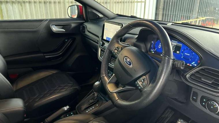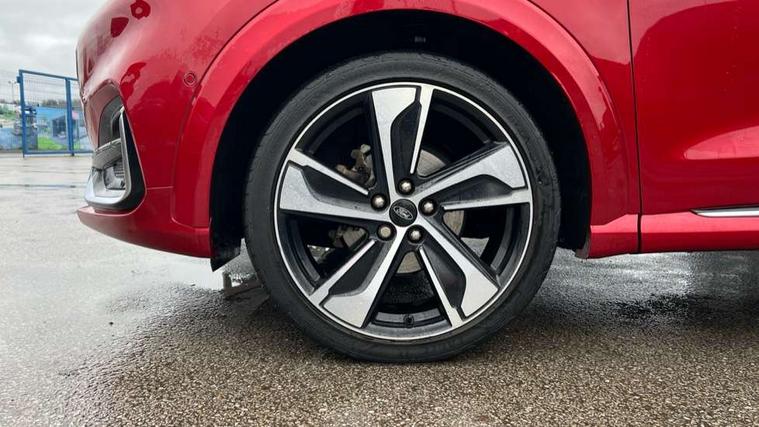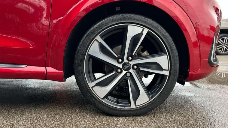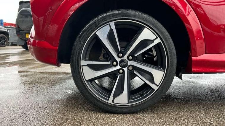 Ford easy fuel, Full digital 12.3" instrument cluster, Lane keeping aid with lane departure warning, Power assist steering, Rear parking sensor, Selectable drive modes(Normal, sport, Eco, trail, slippery), Wireless charging pad, Automatic headlights with rain sensing wipers and auto high beam, Body coloured door mirrors, Bodyside chrome styling, Fixed LED headlamps, Front fog lights with cornering lights and LED rear lamps, Gloss black with chrome elements on front and rear bumpers, High chrome waistline, LED daytime running lights, Power foldable heated door mirrors with puddle lamps, Privacy glass to side rear windows and tailgate glass, Quickclear heated windscreen, Rear wiper, ST-Line body kit with large rear spoiler wth sports suspension, Unique Vignale style upper grille and surround, Centre console with armrest and stowage, Ford megabox extended bootspace, Front and rear floor mats, Front and rear head restraints, Lumbar massage for driver and passenger, Manual air conditioning, Perforated leather flat bottomed steering wheel with metal grey stitching, Premium leather upholstery, Premium sensico wrapped instrument cluster, B&O Premium Audio system + Ford SYNC 3 navigation pack - Puma, Comfort pack - Puma, 3 rear seatbelts, Electronic stability control (ESC) and hill start assist, Pre-collision assist with autonomous emergency braking, pedestrian/cyclist detection & post-collision braking, Tyre pressure monitoring system (TPMS), Thatcham alarm, Carbon look interior deco spears,