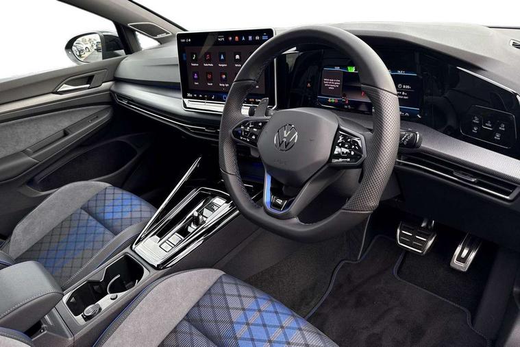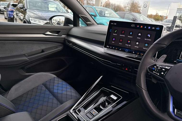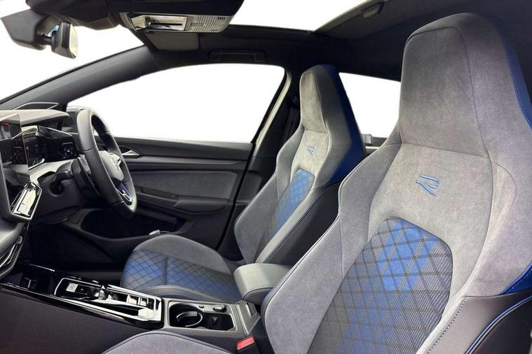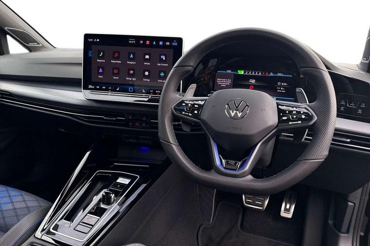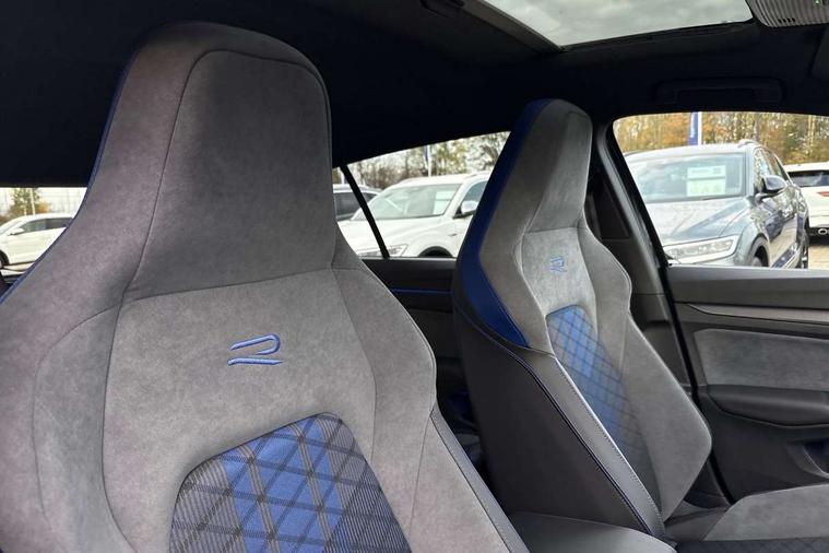 Activated carbon canister, Adaptive cruise control (ACC), Advanced driver attention and drowsiness monitor, Dynamic road sign display, E-Sim card for online connectivity, eCall emergency call system, Electronic maximum speed limit increased to 270 km/h, includes driving Modes 'drift' and 'special', larger roof spolier and GPS laptimer + G-Meter, Multi-color Digital cockpit pro, selection of different info profile possible, Multifunction front facing camera for distance control, Navigation system, Oncoming vehicle braking when turning including swerve support, Progressive steering, Side assist blind spot lane change system, rear traffic alert and exit warning system, Speed limiter, Speedo, rev counter, electronic odometer, trip, service interval display, exterior temperature and fuel gauge, Traffic jam assist, Voice enhancer and voice control, Warning signal and warning light for front and rear seatbelts not fastened, We connect plus preparation, We connect preparation, Wireless app connect, All wheel drive - 4Motion, Petrol Particulate Filter, Start-stop system with battery regeneration (recuperation - energy recovery during braking), XDS electronic differential lock for improved traction and handling, 2 USB C ports in front, 2 USB charging sockets on the centre console in the rear charging capacity upto 45W, Digital radio reception (DAB), Diversity antenna for FM reception, Gaming platform via car app, Infotainment system with 12.9" display, Mobile phone interface with inductive charging feature, 3rd brake light, Auto dimming rear view mirror, Automatic headlamp activation with Coming home and Leaving home feature, Black badge on B-pillar, Black mirror caps, Black strips on radiator grille and headlights, Body colour door handles, Darkened headlights, Darkened R Logos and VW logos in front, rear and on fender, Exterior mirrors convex on the left and aspherical on the right, Front and rear electric windows, Front fog lamps and cornering light, Heat insulating windshield made of laminated glass, Illuminated lighting animation with wake up/goodbye scenario, LED matrix headlights with ambient light V2, advanced high beam, dynamic range contol with cornering, LED rear lamp with indicator, poor weather, LED separate daytime running light, Light assist with High beam control, R name plate, Rain sensor, Rear fog light on one side and reversing lights on both sides, Rear side wing doors, Rear tinted glass 65% light absorbing from B pillar backwards, Rear windscreen washer and wiper with interval delay, Remote electrically foldable door mirrors, puddle lights and reverse activated passenger's door mirror, Welcome light with surround lighting, 12V socket in front centre console, 12V socket in luggage compartment, 3 rear head restraints, 3 seat bench in 2nd row, 30 colour ambient lighting, illuminated center console storage compartment in front, Air care climatronic 3 Zone automatic climate control with rear air conditioning control panel, Aluminium gearshift handle, Brushed stainless steel pedals, Chrome plated radiator grille inserts, air vent surrounds and light switch surrounds, Entry lights, Front + rear black carpet mats, Front centre armrest, Integrated front head restraints, ISOFIX anchors for child seats on outer rear bench seats and on front passanger seat compatible for i-Size, Luggage compartment lighting, Rear cupholder and loadthough, Single front passenger seat, Soul black instrument panel, Soul black roof lining, Split folding backrest with centre armrest and unsplit rear seat bench, Sun visors with illuminated vanity mirrors, Driver assistance pack - Golf Estate/Hatchback Auto, R styling pack - Golf, Technology park and comfort pro package - Golf Hatchback, 3 point height adj front seatbelts + pretensioners, 3 rear three point seatbelts, ABS, Autonomous emergency braking front assist with pedestrian and cyclist monitoring, Child locks on rear doors, Driver and front passenger airbag with front passenger airbag deactivation, Electronic parking brake with auto hold, ESC (Electronic Stability Control), Extended pedestrian protection measures, Front and rear black brake calipers with darkened R-logo, Hill start assist, Rear disc brakes, Two tone horn, Tyre pressure loss indicator, Volkswagen roadside assistance, Anti theft wheel bolts, Preparation for alcohol interlock, Sporty vehicle dynamics, Tool kit for tyre mobility set, Tyre mobility kit Includes 12V compressor and tyre sealant, Wheel hub cover with darkened R-logo,