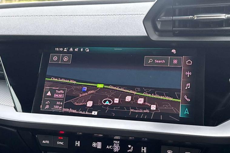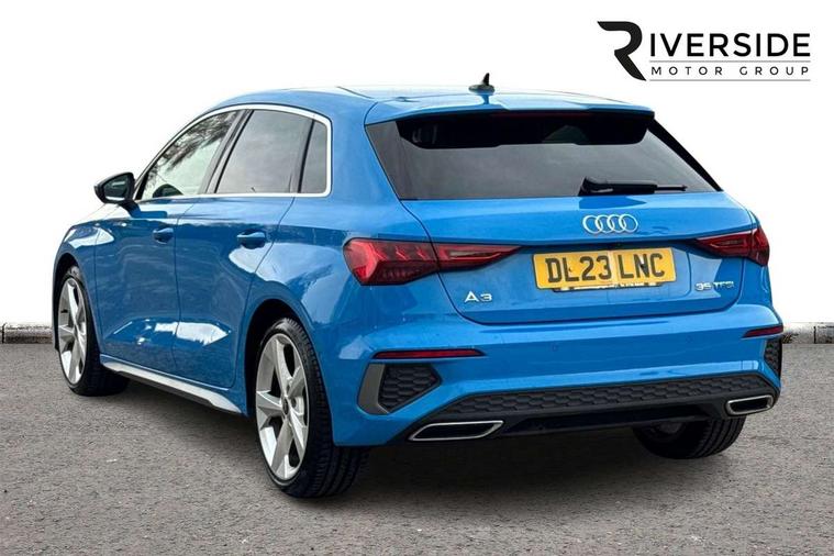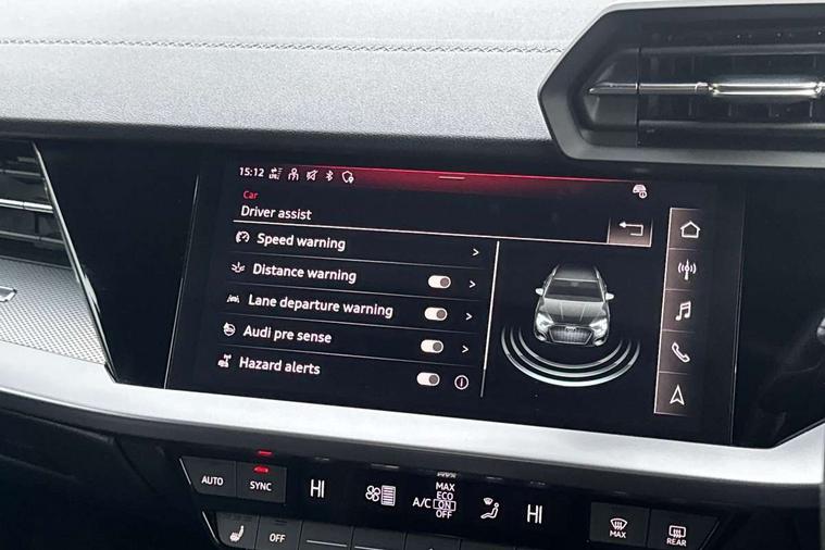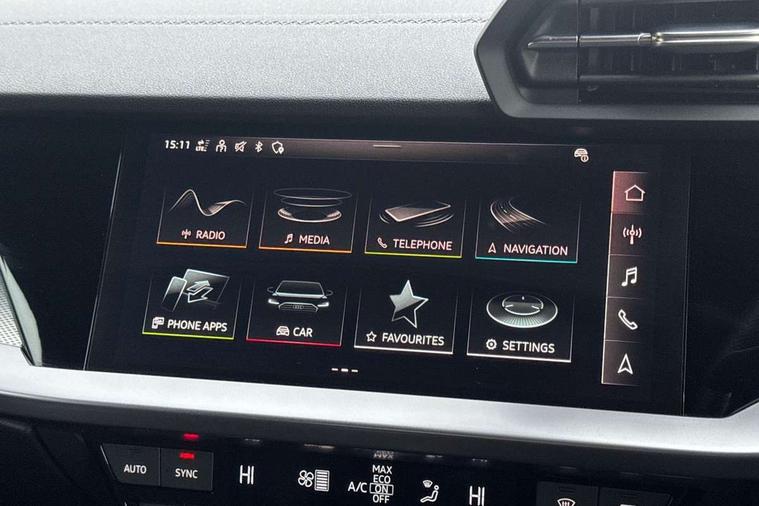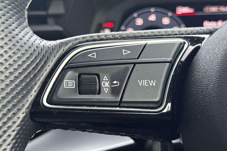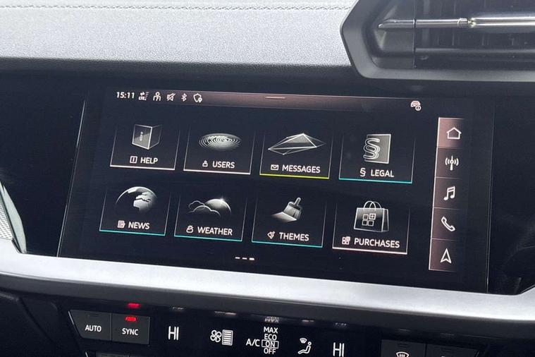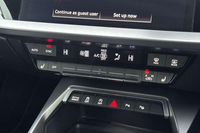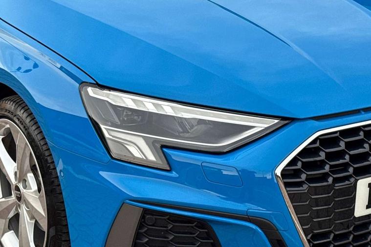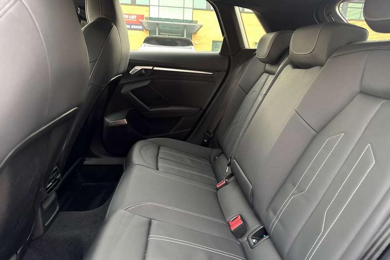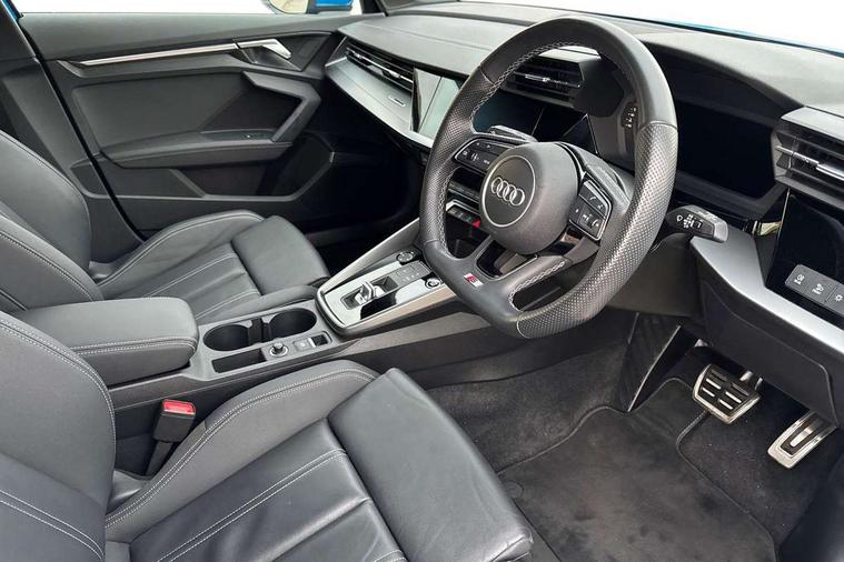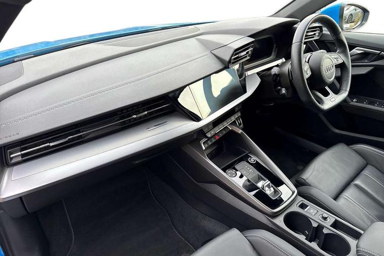Audi drive select (Auto, Comfort, Dynamic, Efficiency and Individual), Audi smartphone interface, Audi Virtual Cockpit - 10.25" digital and colour instrument cluster, Automatic start/stop system with recuperation, Bluetooth interface, Camera based traffic sign recognition, Collision avoidance assistant, e-Call (emergency call), Electromechanical power speed sensitive steering, Lane departure warning system, MMI Navigation Plus with high resolution 10.1" colour touch screen display, Service indicator, Trip computer, Voice control system with natural language interaction, Sports suspension, 2xUSB-C connection with data and charging functions, 6 passive loudspeakers, DAB Digital radio, 3rd brake light, Acoustic glass windscreen, Aluminium window trim, Auto dimming frameless rear view mirror, Body colour exterior mirrors, Electrically adjustable/heated/folding/dimming door mirrors with kerb view includes integrated LED indications + kerb view function for passenger side, Front electric windows, Illuminated aluminium inserts front door sills with S logo, LED daytime running lights, LED headlights with LED rear lights and dynamic rear indicators, Light and rain sensors, Privacy glass - dark tinted rear window, rear door and side windows, Rear electric windows, Rear side air outlets in grained matt black, Rear side wing doors, Rear wiper, S line bumpers, S roof spoiler, 12V socket and storage compartment in front centre console, 3 seat bench in 2nd row, 3 spoke leather multifunction steering wheel with paddle shift, 4 way electrically adjustable lumbar support for driver and front passenger, 60/40 split folding rear seat bench, Black cloth headlining, Dual zone electronic climate control, Front and rear centre armrest in leather, Front and rear headrests, Front/rear floor mats, Height and reach adjustable steering wheel, Interior lighting - glove compartment light and right hand side, Luggage compartment floor covering, Manual boot compartment lid, Manually adjustable front seats, Seat side bolsters, Single front passenger seat, Stainless steel pedals and front footrest in black, Twin leather upholstery with front sports seats S embossed logo, Aluminium interior elements pack - A3 Sportback, LED interior lighting pack - A3 Sportback, S line styling pack - A3 Sportback, 3x3 point rear seat belts, Driver and front passenger airbag with passenger airbag deactivation, Electronic Stabilisation Control (ESC) including ABS, ASR and EDL, First aid kit with warning triangle and 2 safety vests, Front side airbags with head airbags and interaction airbag, Pre-sense front with pedestrian and cyclist detection, Seatbelt monitoring, Tyre pressure loss indicator, Anti theft alarm, Anti-theft wheel bolts, Electronically operated child lock, Immobiliser, Remote control central locking, Dark spectrum aluminium inlays, accent surfaces in the dashboard and centre console in platinum grey silk effect paint finish,