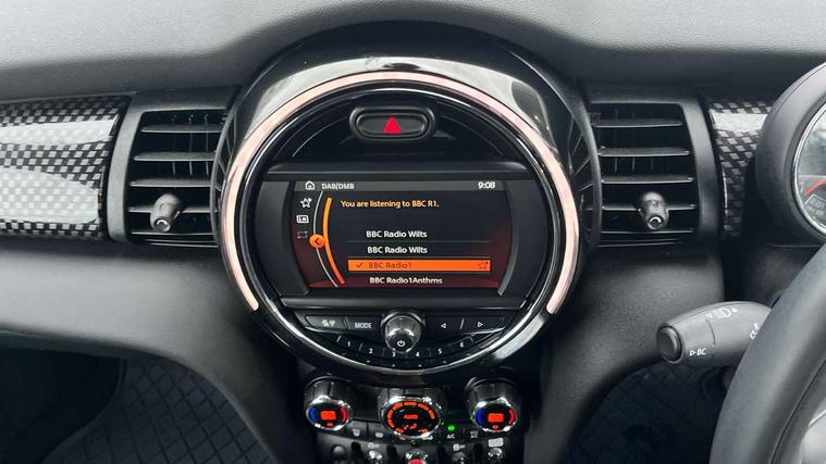 Acoustic seat-belt warning, Basic bluetooth function with USB audio, Brake fluid level warning light, Brake pad wear indicator warning light, DTC - Dynamic traction control, Exterior temperature gauge, Intelligent emergency call, MINI TeleServices, Oil level indicator, On board computer, Push button starter, Service interval indicator, Servotronic PAS, Electronic differential lock, Performance Control, Auxiliary input socket, DAB digital radio module, 2 speed wipers+intermittent wipe, Anti dazzle mirror, Anti trapping/one touch open close front windows, Body colour scoop integrated into engine- compartment lid, Body coloured bumpers, Chrome bezels around rear lights and headlights, Chrome door handles, Chrome plated fuel cap, Chrome plated trim on bottom edge of window, Chrome strip on lower grille, Electric front windows, Electric rear windows, Electrically adjustable door mirrors, Flared wheel arches, Follow me home headlights, Green tinted heat insulating glass, Heated door mirrors/heated windscreen washers, Heated rear window with auto timer, High gloss black tailgate, Honeycomb radiator grille, LED fog lights, LED rear lights, Rear wiper, Side scuttles, Twin chromed exhaust pipes, White indicator lights, 2 rear head restraints, 4 boot load lashing points, 4 way manually adjustable passenger seat with height, reach, tilt, backrest and headrest, 6-way manually adjustable driver's seat, Active carbon filter, Adjustable front seats backrest, Air recirculation system, Auxiliary socket in centre console storage compartment, Centre console storage, Driver's seat height adjuster, Driver/passenger sunvisors, Front and rear cupholders, Front head restraints, Front passenger grab handle, Front seat backrest storage nets, Front sports seats, Gear/selector and handbrake in artificial leather, Internal chrome door handles, Isofix child seat preparation, Luggage compartment lighting, Multifunction steering wheel, Reach + rake adjustable steering column, Rear grab handles, Rear storage trays, Split folding rear seats, Storage compartments in doors, Toolkit in luggage compartment, 3 point seatbelts, 3x3 point rear seatbelts, ABS/EBD, ASC+T, Cornering brake control (CBC), Crash Sensor - activates hazard/interior lighting + unlocks doors, Driver and passenger airbags, Driver/front passenger side airbags, DSC - Dynamic Stability Control, Fuel cut off safety device, Head airbags, Hill start assist, Passenger airbag deactivation system, Seatbelt pretensioners, Tyre pressure warning, Ventilated front disc brakes, Drive away door locking, Locking wheel bolts, Remote central locking/doors+fuel cap+tailgate, Second remote key, Thatcham category 1 alarm + immobiliser,