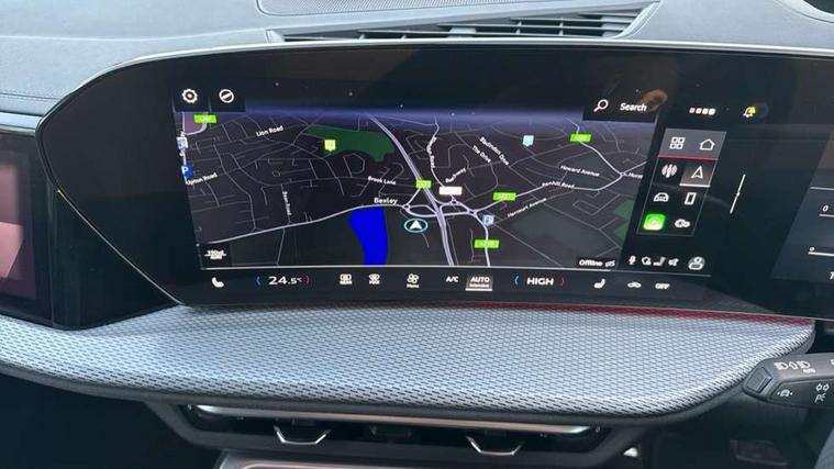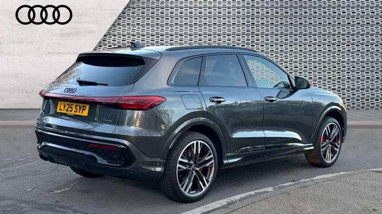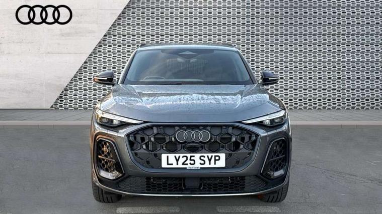 Adaptive cruise control, Advanced driver attention alert, Audi application store, Audi connect emergency call and service, Audi drive select, Audi smartphone interface, Audi virtual cockpit plus with 11.9" OLED colour display, Camera based traffic sign recognition, Fatigue monitor, Front cross traffic intersection assist, Lane change assistant with exit warning system, rear cross traffic alert and rear turn assist, Lane departure warning with emergency assist, MMI 10.9" front passenger touch display, MMI navigation plus with high resolution 14.5" OLED touchscreen colour display, Park assist plus, Parking system plus with 360 display, PAS, Reversing camera, Swerve assist and turn assist, Top view camera, Traffic sign based speed limiter, 2 USB-C ports in both the front and rear, Audi sound system impressive sound with 8 loudspeakers including centre speaker and subwoofer, 6-channel amplifier with a total output of 180 watts, DAB Digital radio, Smartphone compartment with wireless charging, Active digital light signatures - Six additional combinations of active daytime running light signature, Auto dimming rear view mirror, Black roof rails, Coming/leaving home lighting function, Electrically adjustable heated and folding + automatically dimming exterior mirrors, Exhaust tailpipes in dark chrome, Front and rear electric windows, Front door sill trims with aluminium inlays, illuminated with 'S' logo, Full body paint finish, Grill frame, inlay and front air inlets in matt anthracite chrome, Headlight cleaning system, Heated rear window, High beam assist, High gloss window surrounds, LED rear lights pro incl. dynamic rear indicators and illuminated light strip with animated coming and leaving home function, Logo projection light in exterior mirrors, Matrix LED headlights, Memory function for door mirrors, Privacy glass, Projection third brake light for rear window in LED, Radiator grille in phantom black, Rear and side windows with heat insulating glass, Rear honeycombe grille in matt black with inlay in matt anthracite chrome, Rear side wing doors, Rear wash/wipe, S Line badge on the front wings, Towbar preparation, Windscreen with acoustic glazing, 3 rear head restraints, 3 seat bench in 2nd row, 3 spoke leather steering wheel with multi-function buttons with touch control, flattened on top and bottom, with S badging and contrast stitching, 4 way electric lumbar support for driver and front passenger, 40:20:40 split folding rear seat bench with centre armrest and cup holders, Comfort centre armrest, Deluxe 3 zone electronic climate control, Dinamica microfiber/leather upholstery, Electrically adjustable front seats with memory function for driver's side, Front and rear floor mats, Front sport seats with integrated head restraints, Headlining in black cloth, Heated front seats, i-Size child seat mounting on the front passenger side and outer rear seats, i-Size and top tether on the outer rear seats, Interior trim in aluminium look, Luggage compartment lid, electrically opening and closing, Manual steering column adjustment, Single front passenger seat, Softwrap in Dinamica, Stainless steel pedals and footrest, Steering wheel grips in perforated leather and shift paddles, Ambient lighting package plus - Q5, Black styling package plus - Q5, Storage and luggage compartment pack - Q5, 3x3 point rear seatbelts, ABS, Acoustic vehicle alerting system, Convenience key with safelock, Driver and front passenger airbag with passenger airbag deactivation, Electric child safety locks, First aid kit with warning triangle and high visibility vests, Front emergency brake assist, Front side airbags with head airbag system and front interaction airbag, Hill hold assist, Occupant detection in rear seat area, Proactive passenger protection system for front, sides and rear, Red brake calipers, Side airbags in front and rear with head airbag system and front interaction airbag, Tyre pressure loss indicator, Anti theft alarm, Anti-theft wheel bolts, Remote control key with SAFELOCK and keyless go, Accent surfaces and control buttons in gloss black, Black dashboard with contrast stitching, Steel grey seat stitching, Upper and lower interior elements in dinamica microfiber, Tyre repair kit,