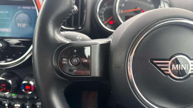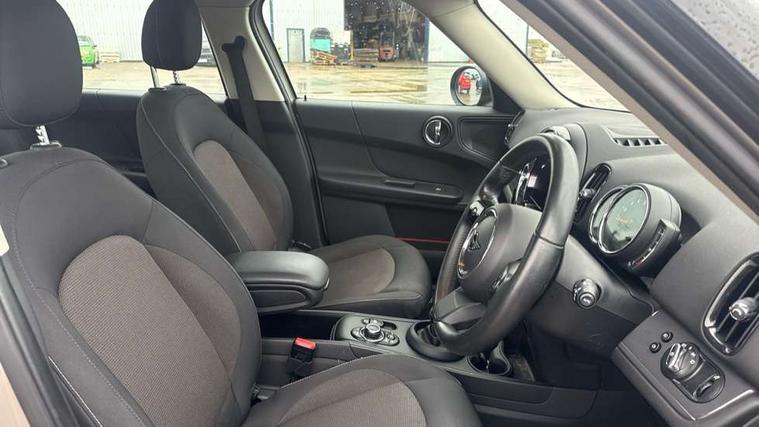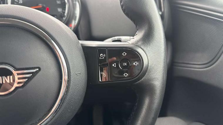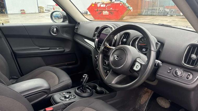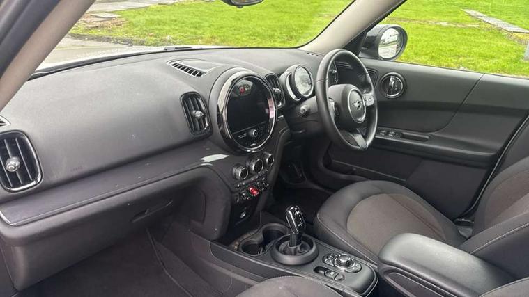 Active Guard incl speed limiting and lane departure functions with auto steering, and front collision warning with brake intervention, Automatic start/stop function with brake energy recuperation, Compatible mobile phone bluetooth with audio streaming, Cruise control with brake assist, Electro-mechanical speed dependant steering assistance, Instrument cluster, Mini E-call, On board computer, Rear parking distance control, 51 Litre fuel tank, Double Vanos system, Fully variable valve control, High precision injection, Performance Control, Steptronic transmission with double clutch, FM tuner and DAB digital radio, 3rd brake light, Body colour fuel filler cap, Day time driving lights, Door sill strips, Dynamic brake lights, Electric windows, Heated rear window, Heated windscreen washer jets, LED fog lights, LED Headlights, Left exhaust tailpipe with chrome finisher, Model logo, Model logo on Tailgate, Radiator grille, Rain sensor with auto headlights, Rear fog lights, Rear side wing doors, Rear window wiper, Side scuttle panel with integrated indicator, Split rear doors, Sun/heat protection glass, White indicator lenses, 12V socket in centre console, 3 seat bench in 2nd row, 3 spoke sport leather steering wheel + limiter function and audio controls, 360L luggage compartment capacity, 4 lashing eyes in luggage compartment, 40:20:40 split folding rear seats, Chrome interior highlights, Colour line - Carbon black, Cupholders, English handbook, Floor mats, Front headrests, Glove compartment, Headliner with grab handles and clothes hooks, Height and length steering column adjustment, Interior lighting with 12 basic colours selectable via toggle switch in roof, Isofix rear child seat preparation, Leather gearshift lever and handbrake gaiters, LED reading lights, vanity mirror lights, front foot well light and spotlight on front seats, Manual air conditioning, Mechanical seat adjustment, driver seat height adjust, forward/back and front seats backrest, Multifunction steering wheel, Passenger seat height adjuster, Rear headrests, Single front passenger seat, Storage compartments in doors, Sunvisors with vanity mirrors, Excitement pack - Countryman, Navigation pack - Countryman, 2 tone horn, 3 point seatbelts on all seats, 6 Airbags - front, side, head and seat belt tensioners, Anti-lock braking system (ABS), DSC - Dynamic Stability Control, Electronic handbrake, Front and rear disc brakes, Hill start assist, Manual rear child locks, Tyre pressure monitoring system, Alarm system with tilt sensor, monitoring doors, bonnet interior and tailgate, Auto drive away locking, Deadlocking function, Electronic vehicle immobiliser, Locking wheel bolts, Start/stop toggle with keyless go, Tool kit,