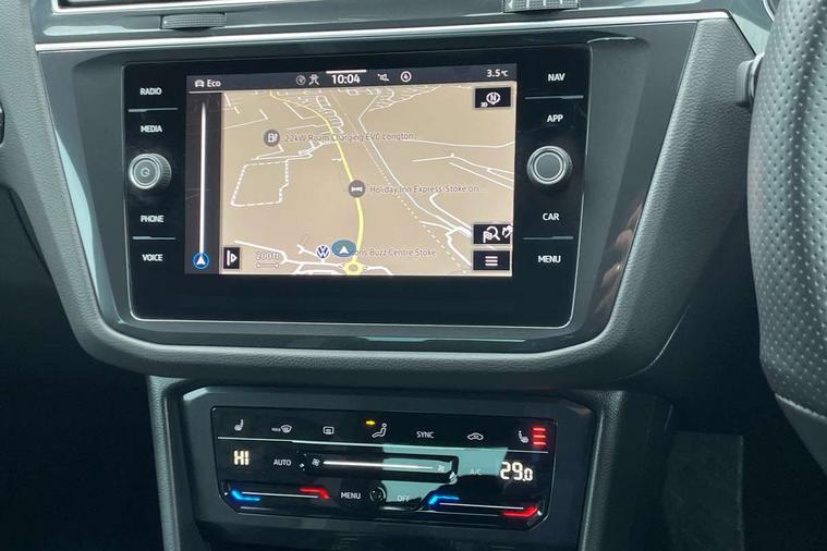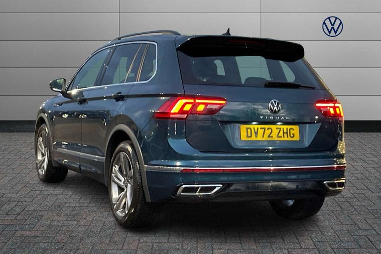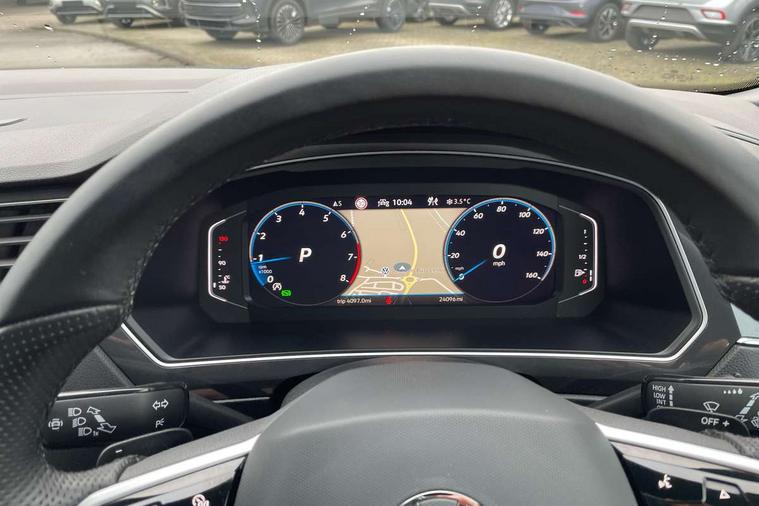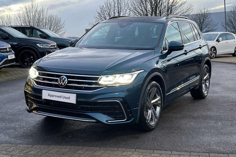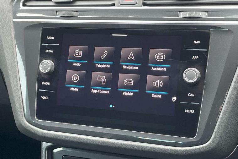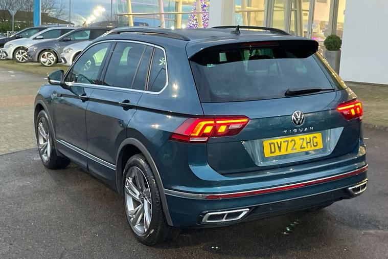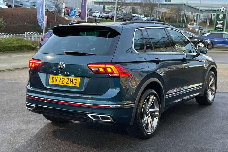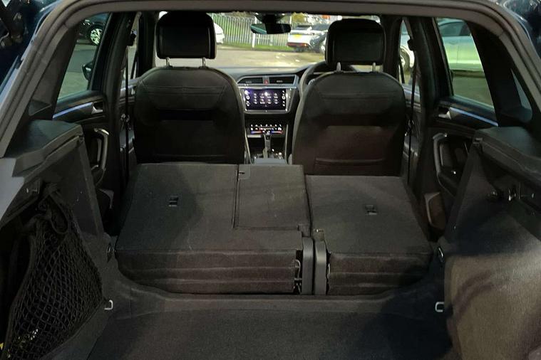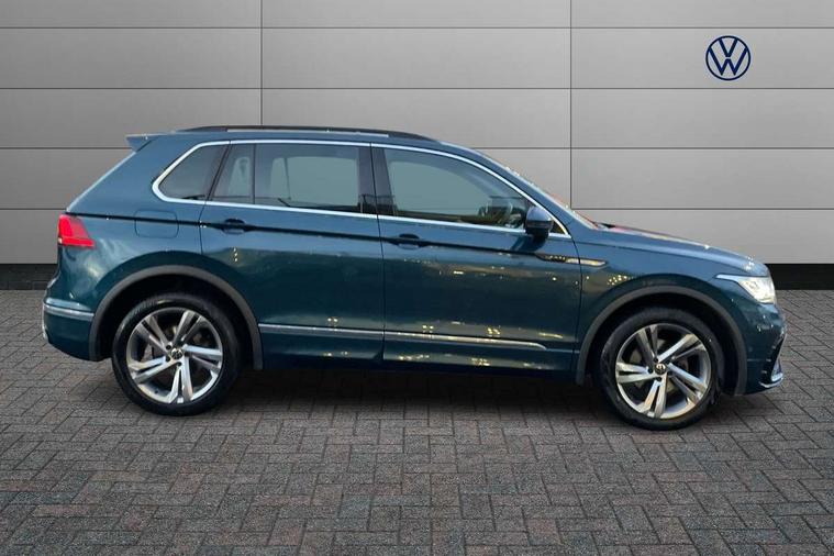 Adaptive cruise control ACC stop and go including speed limiter, App-Connect incl. App-Connect Wireless for Apple CarPlay and Android Auto, Bluetooth phone integration system, Comfort drive travel assist, Digital cockpit pro, Driver alert system, Driver profile selection, Dynamic road sign display, eCall emergency call system, Electromechanical speed sensitive power steering, Emergency assist, Front and rear parking distance sensors, Instrument cluster mph speedometer Great Britain, Lane keeping system Lane Assist, Lights on warning, Multifunction front facing camera, Outside temperature display, Premium multifunction display with multi colour display, Preparation for subsequent activation Navigation feature Discover Media includes Streaming and Internet, Remote control boot opening, Rev counter, Service interval indicator, Speed limit display, Start/stop system with regenerative braking, Tailgate/trunk lid unlocking from outside, Trip computer, Warning sound and light for doors and tailgate open, Battery regeneration during braking, Sports suspension, 8 Speakers, Digital radio reception DAB+, Diversity antenna for FM reception, Radio, Auto dimming interior rear view mirror, Automatic headlight control system, Body colored bumpers in R-Line style, Body colored exterior mirror housings, Body colour door handles, Chrome moldings on the side windows, Coming/leaving home lighting function, Dynamic headlight range control, Front and rear electric windows, Heated rear window, High level 3rd brake light, Laminated safety glass windshield, heat and sound insulating, LED headlamps with LED separate daytime running light and dynamic cornering light, LED rear combination lamps, LED rear number plate lights, License plate carrier in front and rear, Poor weather light and cornering light, Power adjustable, folding and heated door mirrors with surround lighting, front passenger exterior mirror lowering function, Privacy glass for rear side windows and rear window, R Line body kit, R Line side sills, Rain sensor, Rear exhaust tailpipe, Rear fog lamp, Rear side wing doors, Rear spoiler in R style, Rear windscreen washer and wiper with interval delay, Side and rear windows in heat insulating glass, Trailer Stability Programme, Unique R Line badging, Windscreen wipers/ intermittent wipe + 4 position delay, 12V outlet in center console rear and in luggage compartment, 12V outlet in front and tray, 2 LED front reading lights, 2 LED rear reading lights, 3 bench rear seats in 2nd row, 3 rear headrests, Air Care Climatronic 3 zone automatic climate control with enhanced air filter and controls in the rear, Art Velours greyson sports cloth upholstery, Backrest release for left front seat, Black headlining, Brushed stainless steel pedals and footrest, Carpet mats in front and rear with decorative stitching in Gray, Climate control unit rear with touch function, Door and side trim panel in foam film, insert in leatherette, Driver + front passenger lumbar support, Front footwell illumination, Front scuff plates in aluminum with R-Line logo, Front seats head restraints (x-adjustment), Height adjustable front seats, Height/reach adjust steering wheel, Isofix Preparation 2 Rear child seats, Leather gear knob, Rear bench seat asymetrically split folding, longitudinally movable and folding with load-through hatch and center armrest, Remote unlocking for rear seat backrest, Single front passenger seat, Sun visors with illuminated vanity mirrors, Top front comfort seats, Winter pack - Tiguan, 3 point seat belt for centre rear seats, 3 point seat belts with seat belt pretensioners for the outer rear seats, Curtain airbags for front and rear passengers, Driver/Front Passenger airbags, Drivers knee airbag, Electronic parking brake with auto hold, Electronic Stability Control with driver steering recommendation, ABS, ASR, EDL, EDTC and trailer stabilization, Front assist with autonomous emergency braking (for Adaptive Cruise Control ACC up to 130 mph), Front disc brakes, Front passenger airbag deactivation, Front side airbags, Height adjustable front 3 point seatbelts + pretensioners, Manual child proof rear door locks, Pedestrian monitoring system, Proactive passenger protection system in combination with front assist, Rear disc brakes, Two tone horn, Tyre pressure loss indicator, Warning sound and light for front seat belts if unfastened, Warning triangle, Anti theft alarm system with interior monitoring, backup horn and towing protection, Anti theft wheel bolts, Electronic engine immobiliser, Keyless locking and starting system keyless access with safelock, Chrome elements on the mirror switch power window switches and door pulls, Decorative inserts Carbon Gray for dashboard and front door trim panels, Interior door handle in matte chrome, 19" Valencia alloy wheels with AirStop tyres, Tool kit, Tyre mobility kit Includes 12V compressor and tyre sealant,
