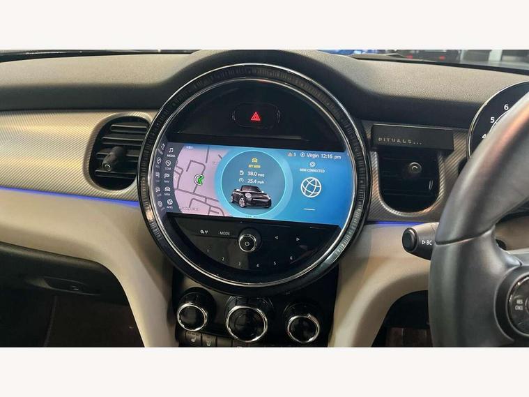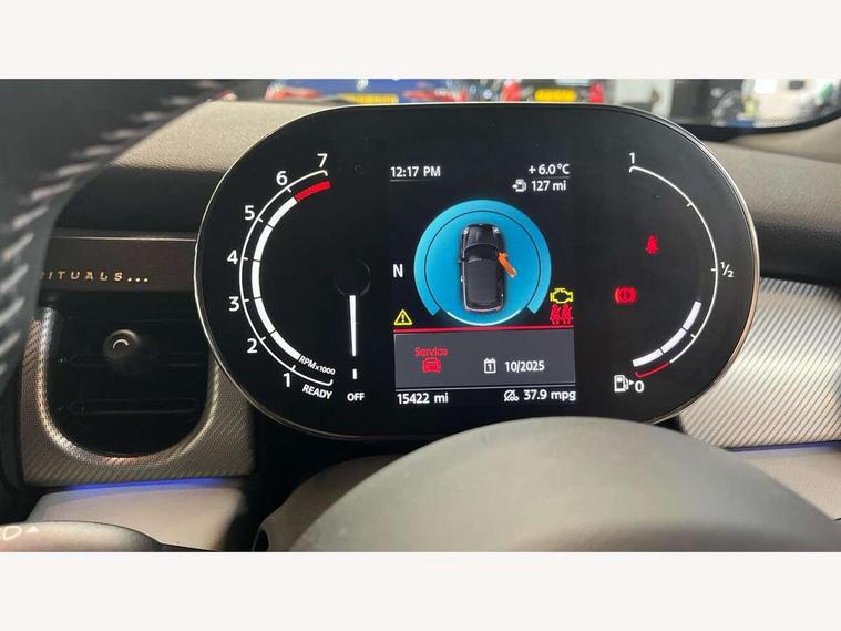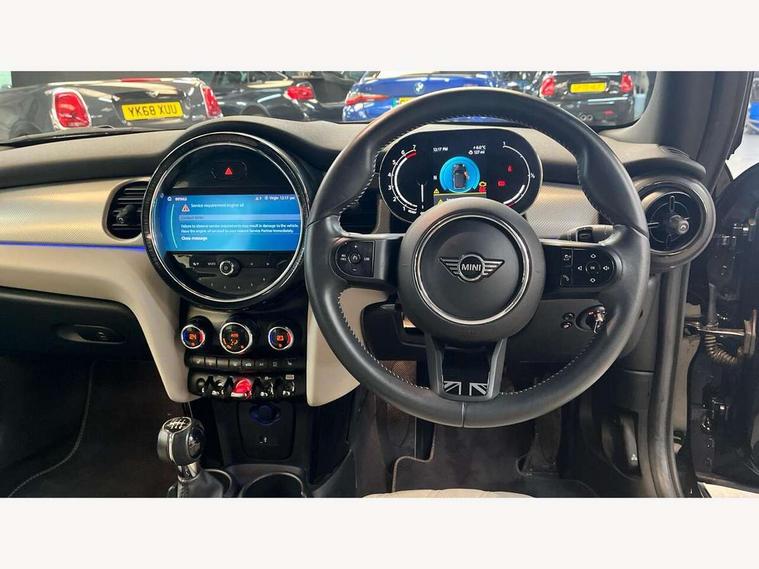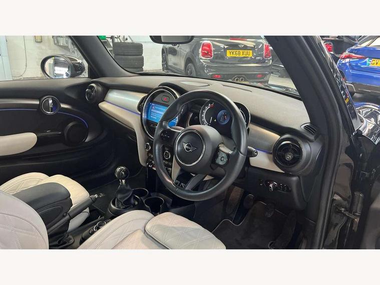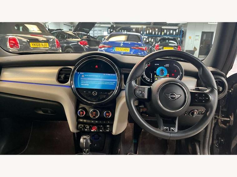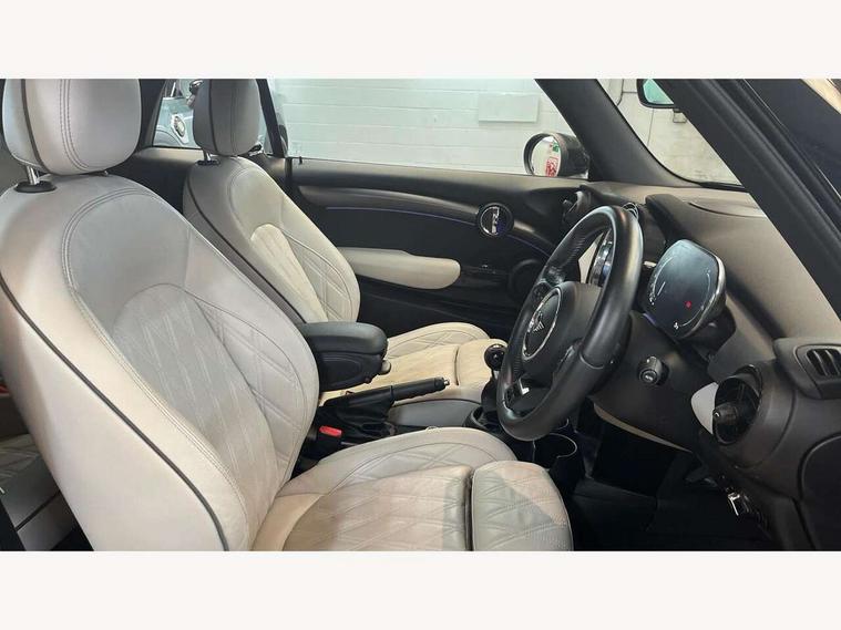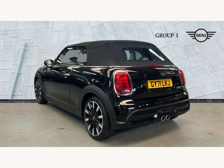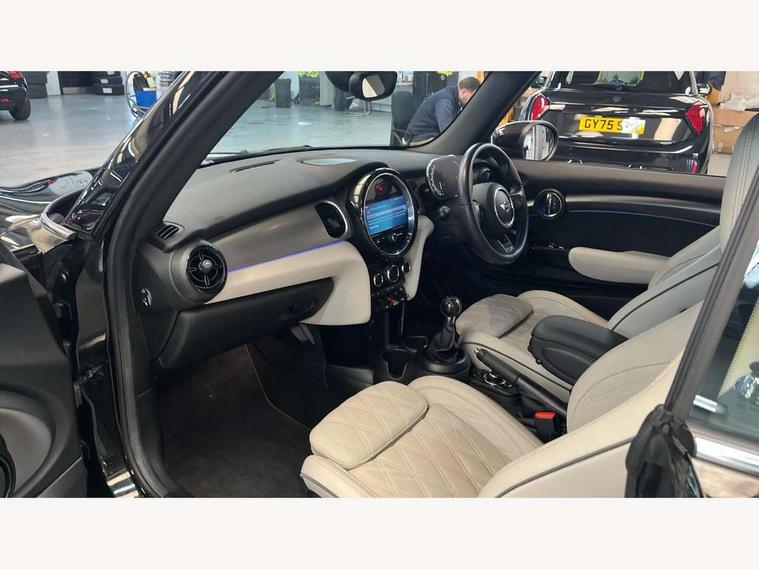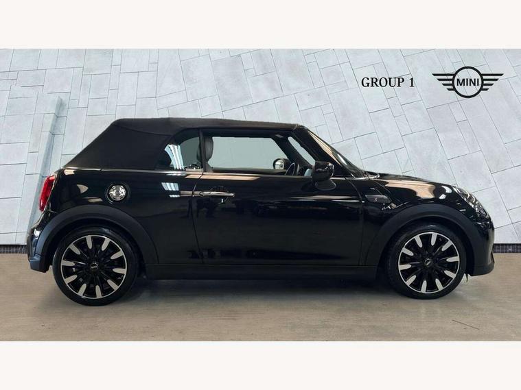 Apple CarPlay, Automatic start/stop function with brake energy recuperation, Compatible mobile phone bluetooth with audio streaming, Cruise control with brake assist, Electro-mechanical speed dependant steering assistance, Instrument cluster, MINI Driving Modes - centre toggle switch to control driving setting (sport, mid and green), Mini E-call, MINI TeleServices, On board computer, Rear park distance control, Service interval indicator, 6 Speed manual transmission including gear change indicator display, Double Vanos system, Fully variable valve control, High precision injection, Performance Control, 8.8" touchscreen with LED ring, FM tuner and DAB digital radio, Automatic headlight activation switch, Bonnet scoop, Dynamic brake lights, Electric windows, Fully electric black softtop with integrated sunroof functionality, Heated rear window, Heated windscreen washer jets, LED headlight with closed ring and daytime driving lights, Metal door sill strips with Cooper S imprint, Mini Yours soft top - Black/Union Jack, Model logo Cooper S on right of tailgate, Radiator grille bars, tailgate handle, lower front grille grating, rear central fog light in chrome, Rain sensor window wipers, Rear fog lights, Rear LED lights with union jack design, Side scuttle panel with integrated indicator, Sun/heat protection glass, Two central exhaust tailpipes with chrome finisher, White indicator lenses, 12V Accessory socket in centre console, 4 lashing eyes in luggage compartment, 50/50 split folding rear seats, Chrome interior highlights, Colour line - Carbon black, Cupholders, Easy Load boot handles, Front and rear head restraints, Front and rear isofix with front passenger airbag deactivation, Front seatback storage pockets, Glove compartment, Height and length steering column adjustment, Interior lighting with 12 different colours running across the dashboard, underneath door bezel illuminated laser engraved design on central display, Leather gearshift lever and handbrake gaiters, LED reading lights, vanity mirror lights, front foot well light and spotlight on front seats, Manual air conditioning, Mechanical seat adjustment, driver seat height adjust, forward/back and front seats backrest, MINI Yours walk nappa leather steering wheel with grey seam and MINI Yours badge on piano black lower steering wheel spoke, Multifunction steering wheel, Sports steering wheel, Storage compartments in doors, Sunvisors with vanity mirrors, Velour floor mats, Convertible pack with comfort access - Mini Convertible, 3 point seatbelts on all four seats, 6 Airbags - front, side and seat belt tensioners, Active rollover protection, Anti-lock braking system (ABS), DSC - Dynamic Stability Control, Front and rear disc brakes, Hill start assist, Two tone horn, Tyre pressure monitoring system, Alarm system with tilt sensor, monitoring doors, bonnet interior and tailgate, Electronic vehicle immobiliser, Keyless Go, Tool kit,