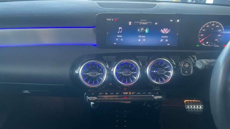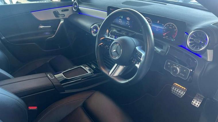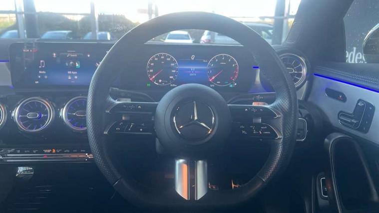 10.25 inch Instrument display with digital cockpit, 10.25 inch touchscreen central media display, Active lane keeping assist, Attention assist - Monitors steering behaviour and long journey fatigue, Bluetooth connection, Car wash mode, Cruise control with limiter, Direct steer system, DYNAMIC SELECT with a choice of driving modes (ECO, Comfort, Sport and Individual), ECO start/stop function, Fluid level warning indicator for fuel, oil, coolant and washer fluid, Hard-disk navigation, Hey Mercedes Voice activation, Lamp failure indicator, MBUX augmented reality for navigation, Mercedes me connect including emergency call system, accident recovery, breakdown and maintenance management, Mercedes me remote services, Outside temperature gauge, Owners manual in English, Pre-installation of private car share, Radio aerial integrated into front and rear windshields, Service indicator (ASSYST), Smartphone integration with Apple CarPlay and Android auto, Tailgate, Traffic sign assist, Trip computer in multifunction display with current consumption indicator, Wireless charging in the front centre console, Comfort suspension with ride height lowering, Rear axle multi-link, DAB digital radio tuner, MBUX multimedia system, Mercedes Benz advanced sound system (225 W) with 10 speakers, 1 central speaker, speakers on doors, a tweeter on door, one sub woofer + boost amplifier, Pre installation for Mercedes Benz Link, Adaptive brake lights, AMG body styling with AMG front apron and rear apron and visible exhaust tailpipe in chrome trim elements, Body colour door handles, Electric panoramic sunroof with automatic tilt and convenience closing fuinctions, rain sensor auto closing and electronic roller sunblind, Electric windows, Electrically adjustable and heated door mirrors with integrated LED indicators, Exhaust system with 2 Visible tailpipe trim elements and rear apron with trim in chrome, Headlamp assist automatic headlamp activation, Heated glass rear windscreen + timer control, High level LED third brake light, Integrated LED daytime running lights, Interior mirror with black reading lamps and frameless, LED tail lamp, Multibeam LED headlamps with adaptive highbeam assist plus, Privacy glass with dark tinting on rear side windows and rear window, Radiator grille with Mercedes-Benz pattern in chrome and central Mercedes star, single louvre in high-gloss black with chrome inserts, Rain sensing windscreen wipers with two sensitivity settings, Rear fog lamp, Rear side wing doors, Rear wiper, Variable front intermittent wipers, 3 seat bench in 2nd row, 3 twin spoke flattened multifunction steering wheel in nappa leather - horizontal twin spoke in high gloss black, vertical twin spoke in silver chrome, 40:20:40 split folding rear seat backrests, Air conditioning - Two zone thermotronic luxury automatic climate control with display, Air vents with surround in silver chrome, Automatic child seat recognition sensor, Black roof lining, Brushed stainless steel sports pedals with rubber studs, Electrically adjustable front memory seats including 4 way lumbar support, Floor mats with stitched AMG lettering, Front centre armrest with stowage, Galvanished gear shift paddles in silver chrome, Heated front seats, Illuminated front door sills with Mercedes Benz lettering and changeable cover, Interior lighting - 64 colour Ambient lighting, Luggage net on driver/front passenger seat backrest, Manually height and reach adjustable steering column, Rear armrest with two integral cup holders for drinks, Rear head restraints, Single front passenger seat, Sport seats with fixed head restraints, Stowage compartment in centre console with retractable cover, Sunvisors with illuminated vanity mirrors, Twin front cupholders, Two outer rear seat isofix and top tether child seat fixing points, Keyless go comfort pack - CLA with easy pack tailgate, Light and sight pack - CLA, Mirror pack - CLA, Night package - CLA, Parking pack with 360 degree camera - CLA, Seat comfort pack - CLA, USB package plus - CLA, Active bonnet pedestrain safety measure which detects an impact and raises bonnet by 65mm, Adaptive brake assist with hold function and hill start assist, Anti lock braking system (ABS) with brake assist, Black seat belts, Bonnet with power domes, Brake calipers with Mercedes-Benz lettering, Brake pad wear warning indicator, Childproof locks manually operated for rear doors and electrically operated for rear power windows, Crash responsive emergency lighting, Driver and front passenger head and sidebags, Driver and front passenger windowbags, Drivers knee airbag, Dual stage driver and front passenger airbags, Electric parking brake, Electronic stability programme with acceleration skid control, ESP curve dynamic assist, Exit warning, Front and rear seatbelt reminder, Front passenger seat occupancy sensor, Perforated front brake discs, Three point rear seat belts, Tyre pressure monitoring system, Warning triangle and first aid kit, Alarm system with immobiliser and interior protection -Thatcham category 1, Guard 360 deg vehicle protection - tow away protection with visual, acoustic warning, interior monitoring, preinstallation for parking damage, Remote central locking and crash sensor with emergency opening function, Light aluminium with longitudinal grain interior trim, 19" AMG multi-spoke black painted light alloy wheels with high sheen rim finish, Summer tyres, Tirefit tyre sealant kit,
