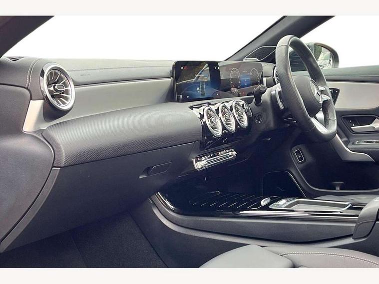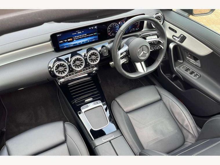 10.25 inch Instrument display with digital cockpit, 10.25 inch touchscreen central media display, Acoustic ambient protection, Active lane keeping assist, Attention assist - Monitors steering behaviour and long journey fatigue, Bluetooth connection, Car wash mode, Cruise control with limiter, Direct steer system, DYNAMIC SELECT with a choice of driving modes (ECO, Comfort, Sport and Individual), ECO start/stop function, Fingerprint sensor, Fluid level warning indicator for fuel, oil, coolant and washer fluid, Hard-disk navigation, Head up Display, Hey Mercedes Voice activation, Lamp failure indicator, MBUX augmented reality for navigation, Mercedes me connect including emergency call system, accident recovery, breakdown and maintenance management, Mercedes me remote and charging services plus, Outside temperature gauge, Owners manual in English, Pre-installation of private car share, Radio aerial integrated into front and rear windshields, Service indicator (ASSYST), Smartphone integration with Apple CarPlay and Android auto, Traffic sign assist, Trip computer in multifunction display with current consumption indicator, Wireless charging in the front centre console, Charging system - AC charging system rated at 11kW, Charging system - DC charging system rated at 22kW, Comfort suspension, Mode 3 charging cable for wallbox and public charging stations with 5m upto 11kW, Rear axle torsion beam, Burmester lettering on the speakers, Burmester surround sound system (710W) with dolby atmos, speakers - 1 central, 1 woofer, 1 tweeter, 1 subwoofer with 60W, 2 in C pillar, DAB digital radio tuner, MBUX multimedia system, Pre installation for Mercedes Benz Link, Adaptive brake lights, AMG body styling with AMG front apron and rear apron and visible exhaust tailpipe in chrome trim elements, Body colour door handles, Electric panoramic sunroof with automatic tilt and convenience closing fuinctions, rain sensor auto closing and electronic roller sunblind, Electric windows, Electrically adjustable and heated door mirrors with integrated LED indicators, Exhaust system with 2 Visible tailpipe trim elements and rear apron with trim in chrome, Hand free access, Headlamp assist automatic headlamp activation, Heated glass rear windscreen + timer control, High level LED third brake light, Integrated LED daytime running lights, Interior mirror with black reading lamps and frameless, LED tail lamp, Multibeam LED headlamps with adaptive highbeam assist plus, Privacy glass with dark tinting on rear side windows and rear window, Radiator grille with Mercedes-Benz pattern in chrome and central Mercedes star, single louvre in high-gloss black with chrome inserts, Rain sensing windscreen wipers with two sensitivity settings, Rear boot, Rear fog lamp, Rear side wing doors, Variable front intermittent wipers, 3 seat bench in 2nd row, 3 twin spoke flattened multifunction steering wheel in nappa leather - horizontal twin spoke in high gloss black, vertical twin spoke in silver chrome, 40:20:40 split folding rear seat backrests, Air conditioning - Two zone thermotronic luxury automatic climate control with display, Air vents with surround in silver chrome, Automatic child seat recognition sensor, Black roof lining, Brushed stainless steel sports pedals with rubber studs, Charging socket, Electrically adjustable front memory seats including 4 way lumbar support, Floor mats with stitched AMG lettering, Fluorescent jacket, Front centre armrest with stowage, Galvanished gear shift paddles in silver chrome, Illuminated front door sills with Mercedes Benz lettering and changeable cover, Interior lighting - 64 colour Ambient lighting, Luggage net on driver/front passenger seat backrest, Manually height and reach adjustable steering column, Pre-entry climate control, Rear armrest with two integral cup holders for drinks, Rear head restraints, Single front passenger seat, Sport seats with fixed head restraints, Stowage compartment in centre console with retractable cover, Sunvisors with illuminated vanity mirrors, Twin front cupholders, Two outer rear seat isofix and top tether child seat fixing points, Keyless go comfort pack - CLA, Light and sight pack - CLA, Mirror pack - CLA, Night package - CLA, Parking pack with 360 degree camera - CLA, Seat comfort pack - CLA, USB package plus - CLA, Winter pack - CLA, Active bonnet pedestrain safety measure which detects an impact and raises bonnet by 65mm, Adaptive brake assist with hold function and hill start assist, Anti lock braking system (ABS) with brake assist, Black seat belts, Bonnet with power domes, Brake calipers with Mercedes-Benz lettering, Brake pad wear warning indicator, Childproof locks manually operated for rear doors and electrically operated for rear power windows, Crash responsive emergency lighting, Driver and front passenger head and sidebags, Driver and front passenger windowbags, Drivers knee airbag, Dual stage driver and front passenger airbags, Electric parking brake, Electronic stability programme with acceleration skid control, ESP curve dynamic assist, Exit warning, Front and rear seatbelt reminder, Front passenger seat occupancy sensor, Perforated front brake discs, Radar-based recuperation, Sports braking system, Three point rear seat belts, Tyre pressure monitoring system, Warning triangle and first aid kit, Alarm system with immobiliser and interior protection -Thatcham category 1, Guard 360 deg vehicle protection - tow away protection with visual, acoustic warning, interior monitoring, preinstallation for parking damage, Remote central locking and crash sensor with emergency opening function, Light aluminium with longitudinal grain interior trim, 19" AMG multi-spoke black painted light alloy wheels with high sheen rim finish, Summer tyres, Tirefit tyre sealant kit,