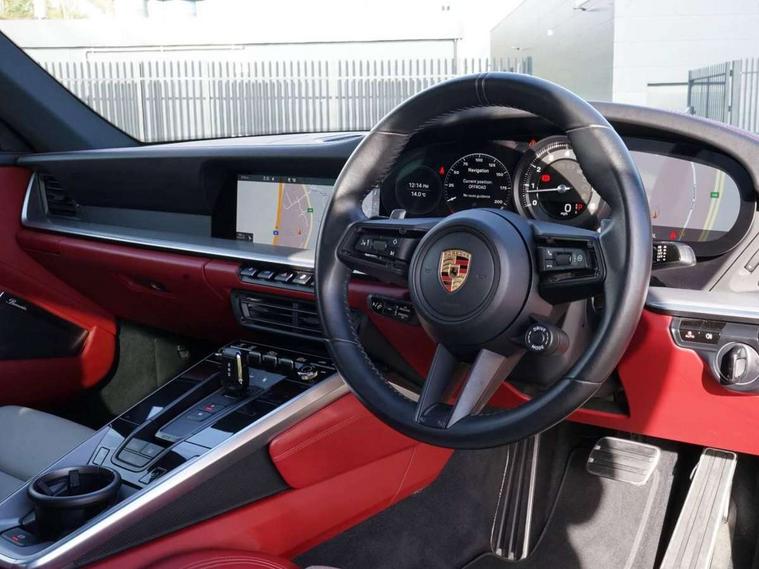 10.9 inch centre display, Automatic start/stop system, Connect Plus, Apple CarPlay, telephone module, wireless internet access, carfinder, remote vehicle status, remote service, vehicle track, Digital display for selected gear in rev counter, Electromechanical power-assisted steering with variable steering ratio and steering pulse generator, Instrument cluster with central analogue rev counter and two 7-inch TFT displays, PAS, Porsche communication management (PCM) including online navigation module, Porsche WET Mode, Service indicator, Stationary management with HOLD function, Trip computer, Warn and Brake Assist, 8 Speed Porsche Doppelkupplung (PDK), Aluminium block and cylinder heads, Direct fuel injection (DFI), Expansion intake manifold, Four valve per cylinder, Front anti roll bar, Gasoline particulate filter, Integrated dry-sump lubrication with an on-demand oil pump, McPherson strut front suspension, Multi-link suspension with anti-roll bar at rear, Porsche Stability Management (PSM), ABS with extended brake functions, Porsche Torque Vectoring Plus (PTV Plus) inc electronically regulated rear differential lock and fully variable torque distribution, Twin turbocharger intercooled, Two three-way catalytic converters and on-board diagnostics for monitoring emission control system, VarioCam Plus variable valve timing and switchable valve lift, Analogue sound system, DAB Digital radio, "PORSCHE" lettering integrated in taillight strip, Automatic headlight activation including welcome home lighting, Automatically operated rear spoiler, Body colour bumpers, Electrically adjustable heated exterior mirrors on door waist rails, aspherical on driver's side, Engine compartment cover grille with vertical slats in silver colour (high-gloss), Four-tract exhaust system with twin dual-tube tailpipes (in stainless steel), Green tinted heat insulating glass, Heated rear windscreen, Intelligent lightweight body in Aluminium/Steel composite construction, LED auxiliary light units in the front end with position lights, direction indicators and side indicators, Model designation on rear trim with highly polished chrome-plated finish, Power windows with one touch operation and door seal protection, Retractable door handles, Side air intakes at front with active cooling flaps and air blades, Taillight strip including integral parking lights and rear driving lights, Three dimensional LED taillights and integral third brake light, Trims on sideskirts in black, Windscreen washer system with aero wiper blades and washer jets, Windscreen with grey top tint, 12V socket in front passenger footwell, Automatic air recirculate, Centre console cupholder, Clothes hooks on seat backrests and on B-pillars, Floor mats, Front and rear head restraints, Heated front seats, Individual driver/passenger temperature controls, Inner door sill guards with model designation, ISOFIX child seat mounting points on passenger seat, Luggage compartment at front, Multifunction steering wheel, Passenger cupholder, Pollen/active carbon filters, Roof lining and A, B & C-pillar trims in fabric, Split folding rear seats, SPORT button to activate dynamic driving settings for engine, transmission (with PDK), Storage compartments in each doors, Two zone automatic climate control, Sound package plus - 911 (992), Brake discs with 350mm diameter at front and 350mm at rear, internally vented and cross-drilled, Dual stage driver/passenger airbags, Electric parking brake, Electromechanical power brake, ESP, Porsche side impact protection doors with thorax airbag in outer backrest side bolster and head airbag for driver/passenger in door panel, POSIP, PTM (Porsche Traction Management) and All-wheel drive with map-controlled multi-plate clutch, Six piston front and four piston rear in closed type aluminium monobloc, TPMS (Tyre pressure monitoring system), Alarm, interior ultrasonic protection, Electronic immobiliser, Keyless Go, Remote central locking, Tyre sealing compound and electric air compressor kit,