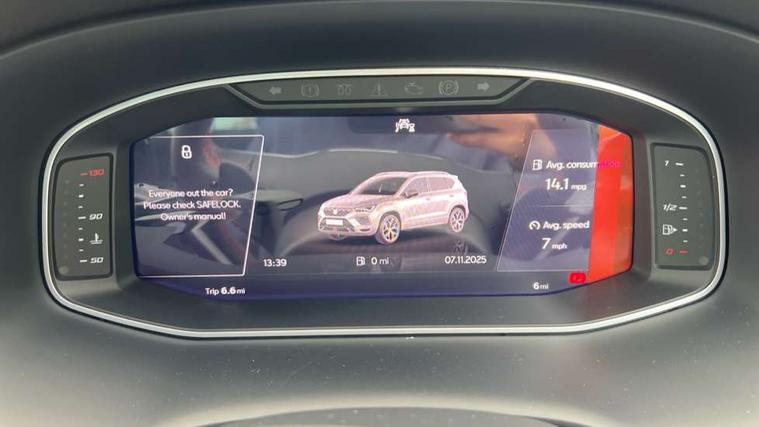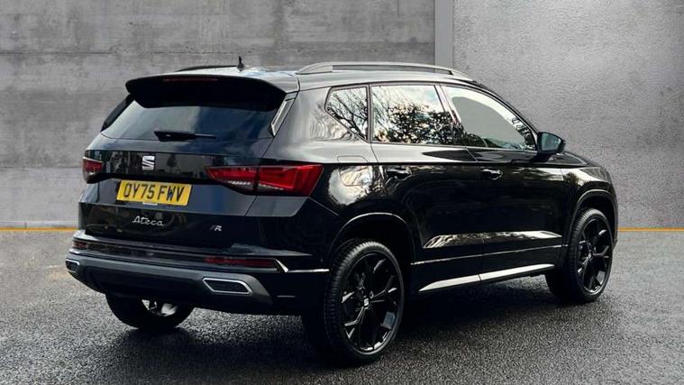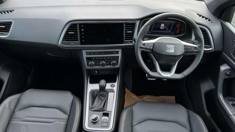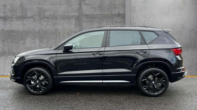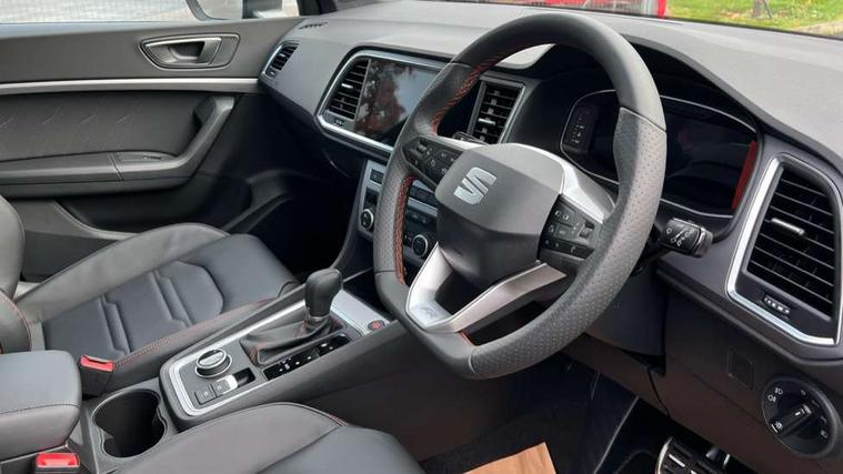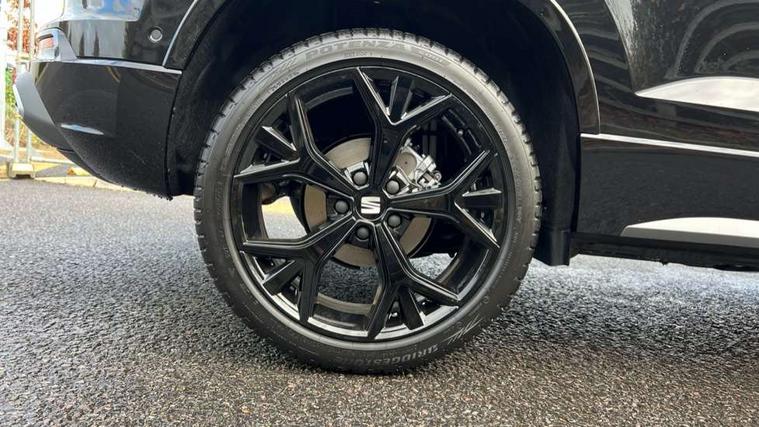 10" Digital cockpit, Bluetooth audio streaming with handsfree system, E-call, Electric tailgate with virtual pedal, Outside temperature gauge, Progressive power assisted steering, SEAT drive profile with driving experience button - Normal, Sport, Eco and Individual mode, gearshift, steering and throttle response, Self parking functionality (includes front and rear parking sensors), Speed limiter, Start/stop system, Top view camera with rear view camera, Trip computer, wired and wireless full link smartphone integration, Wireless phone charger, Steering wheel mounted audio/phone controls, Black roof rails, Black side window trim, Body colour bumpers, Body coloured wheel arch surrounds, Chrome front grille frame, Dark tinted rear windows, Daytime running lights, Door mirrors with welcome light silhouette, Dynamic headlight range control with self adjusting whilst driving, Electric adjustable/heated/folding door mirrors, Front and rear electric windows, Illuminated aluminium front door sill, LED 3rd brake light, LED headlamps with lens and LED front fog lamps with cornering function, LED rear tail lights with dynamic indicators, Rear exhaust tailpipe, Rear fog lights, Rear side wing doors, Rear spoiler, Rear wash/wipe, Variable front intermittent wipers, 12V socket in front, 3 seat bench in 2nd row, 60/40 split folding rear seat, Aluminium pedals, Black greenhouse interior roof, Dual zone climate control, Electric adjustable driver seat with memory function, Front and rear head restraints, Front centre armrest, Front seat back storage pockets, Heated front seats, Height adjustable passenger seats with lumbar adjustment, ISOFIX points in outer rear seats with top tether anchorage points, Leather sports steering wheel and gear knob, Leather upholstery with front comfort seats, Rear armrest and easy back seat release mechanism from boot, Single front passenger seat, Steering wheel mounted gearshift paddles, Convenience pack - Ateca, Interior lighting pack - Ateca, Navigation system pack with DAB - Ateca, Safety and driving pack (L) - Ateca, Safety and driving pack with attention and drowsiness assist - Ateca, 3x3 point rear seatbelts, ABS, Traction control system (TCS), Electronic stability control (ESC) and Electronic differential lock system (XDS), Airbags - Driver and front passenger airbag with deactivation, front side, two curtain and driver's knee airbags, Electric parking brake with auto hold function, Front and rear seatbelt reminder, Hill hold control, Manual rear child locks, Single tone horn, Tyre pressure monitoring system, Alarm, Keyless entry, Locking wheel bolts, Remote central locking, Chrome interior detailing, 19" Exclusive alloy whelels 36/10 in glossy black, Tool kit,