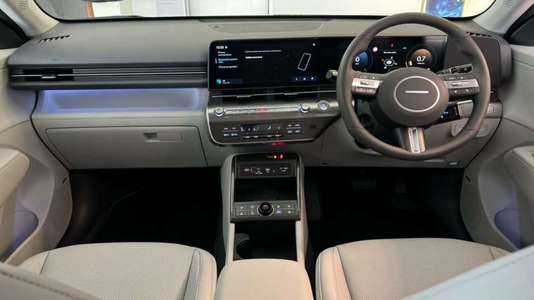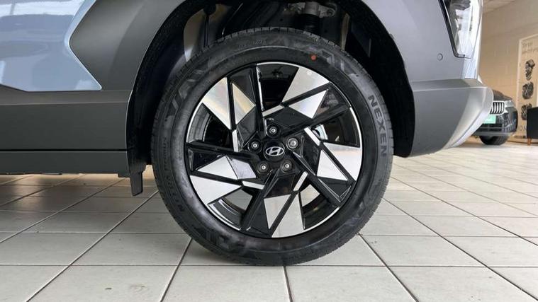 12.25" digital instrument cluster, 12.3" touchscreen centre console display satellite navigation with bluelink, live services and mapcare, Blind spot collision avoidance assist, Blind spot view monitor, Bluetooth connectivity with voice recognition, Driver status monitor (DSM), Driver supervision instrument cluster with 12.3" LCD display, eCall emergency call system, Feature on demand - Enabled, Forward collision avoidance assist (FCA 1.5) - Car, pededstrian, cycle and junction turning, Front parking sensor, HDA - Highway Drive Assist Level 1.5, Height adjustable power tailgate, Intelligent speed limit assist, Lane follow assist, Lane keep assist, Leading vehicle departure alert (LVDA), Parking Collision Avoidance Assist-Reverse (PCA-R), Parking distance warning - side, Parking system with rear camera and guidance system, PAS, Rear cross traffic collision avoidance (RCCA), Rear parking sensor, Rear view camera with dynamic guidelines, Roadside assistance, Safe exit warning (SEW), Smart cruise control with stop and go functionality, Surround view monitor, Wireless phone charging pad, Wireless Smartphone Integration includes Apple CarPlay and Android auto, 2 front USB C and 2 rear USB C charging points, Bose Premium Audio system with 7 premium speakers + subwoofer, DAB Digital radio, Steering wheel audio, phone and cruise controls, Auto dimming rear view mirror, Automatic headlights with dusk sensor, Automatic windscreen wipers with rain sensor, Black painted wheel arch inserts, Body colour exterior door handles, Body coloured door mirrors, Door mirror LED indicator lights, Electric front windows with anti-trap mechanism and one touch control, Electric rear windows, Electric sunroof, Electrically adjustable and heated door mirrors, Horizon centre LED DRL, LED projector headlights, LED taillights, LED upper and lower rear lights, Power folding door mirrors, Privacy glass - Rear windows and tailgate, Rain sensor, Rear roof spoiler with integrated LED brake light, Rear side wing doors, Rear skid plate - silver, Rear wiper, Roof rails, Solar glass with front door glass and windscreen, Tinted glass in front and rear doors, Windscreen auto defog function, 12V power outlet in front console, 2 zone climate control, 3 seat bench in 2nd row, 40/20/40 split folding rear seat, Adjustable head restraints, Ambient lighting, Driver and passenger front seat pockets, Driver's seat electric adjustments, Driver's seat lumbar support, Driver/passenger sunvisors and illuminated vanity mirrors, Floor mats, Front passenger's seat electric adjustments, Heated front seats, Heated rear seats, Heated steering wheel, Height/reach adjustable steering column, Leather steering wheel, Leather upholstery, LED centre interior light, LED front interior light, Luggage compartment LED lighting, Luggage net, Luggage shelf, Metal paint effect interior door handles, Rear centre armrest with cupholders, Shift by wire SBW, Single front passenger seat, Ventilated front seats, Vertical adjustment rear head restraints, Trailer wiring package - Kona, Airbag - front, front side, curtain and centre front airbag, Anti-lock brake system (ABS), Childproof rear door locks, Downhill brake control, Electric parking brake, Electronic stability control, Fixed 3 point for second row centre passenger seatbelt, Hill start assist control (HAC), Rear seat alert, Tyre pressure monitoring system, Alarm/immobiliser, Rear occupant alert, Remote central locking, Smart key with keyless entry and start/stop button, Five year annual vehicle health checks, 18" Alloy wheels, Temporary mobility kit (TMK),