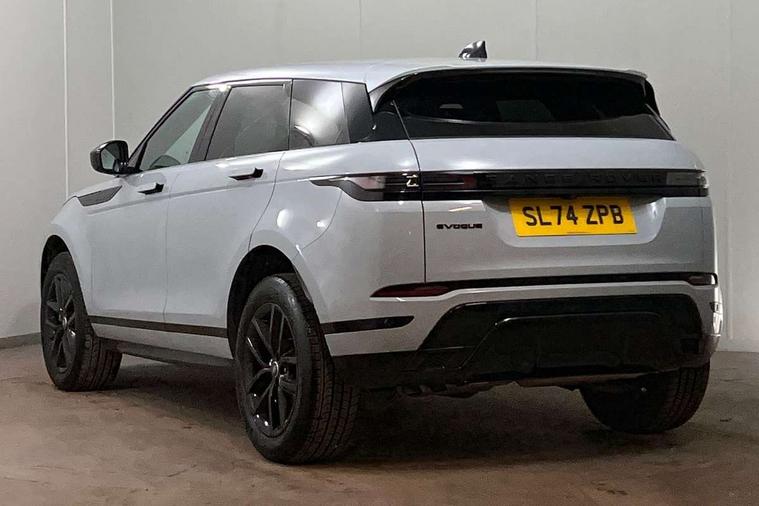 11.4" touch screen, 3D 360 degree surround camera with wade sensing, Adaptive cruise control, Android Auto, Apple car play, Blind spot assist, Bluetooth connectivity, Brake pad wear indicator warning light, Driver condition monitor, eCall emergency system, Eco mode, Electronic power assisted steering (EPAS), Front and rear parking aid, InControl remote, Interactive driver display, Land Rover InControl apps, Lane keep assist, Pivi pro connected includes diamond pivi variant, smart settings, connected navigation pro, nuance speech licence, Powered tailgate/boot lid, Rear collision monitor, Rear traffic monitor, Tailgate, Traffic sign recognition with adaptive speed limiter, Voice control system, Wireless device charging, All terrain progress control, Diesel exhaust fluid (DEF) large tank, Efficient Driveline, Large fuel tank, Terrain Response 2, Digital Audio Broadcast radio-DAB, Steering wheel mounted controls, Acoustic laminated windscreen, Auto headlights, Auto high beam assist, Automatic headlight levelling, Electric windows with one touch open/close and anti trap, Flush deployable exterior door handles, Front and rear recovery eyes, Heated rear window with timer, Heated washer jets, Heated windscreen, LED headlights with signature DRL and LED tail Lights, Power fold, auto-dimming, heated door mirrors with approach lights and auto dimming driver side, Rain sensing windscreen wipers, Rear animated directional indicators, Rear fog lights, Rear side wing doors, Rear wiper, Side repeater indicators in mirror, Tailgate spoiler, Third brake light, Winter wiper park position, 12 way driver memory and 10 way passenger electric front seats with 2 way manual headrest + 4 way lumbar support, 40:20:40 split folding rear seats with centre headrest and armrest, Ambient interior lighting, Bright metal pedals, Carpet mats, Chrome tread plates with range rover branding Includes stainless steel loadspace scuff plate with etched graphic, Customer configurable single point entry, Front and rear cupholders, Heated front seats, Heated steering wheel, Isofix system on outer rear seats, Manually adjustable steering column, Overhead lighting console, Overhead stowage for sunglasses, Passive front head restraints, Rear air vents, Rear head restraints, Satin chrome gearshift paddles, SE Grained leather upholstery, Single passenger seat, Standard steering wheel with Moonlight Bezel, Sunvisors with illuminated vanity mirrors, Twin sliding front centre armrest, Power socket pack 2 - Evoque, 3 rear 3 point seatbelts, Anti-lock braking system (ABS), Brake hold function, Customer configurable autolock, DSC - Dynamic Stability Control, Electronic brake force distribution, Electronic parking brake, Electronic traction control, Emergency braking, Front and rear seatbelt reminder, Hill descent control, Hill launch assist, Low traction launch, Occupant protection assist, Passenger seat occupant detector, Power operated child locks, Roll stability control, Six airbags - Driver and passenger airbags/driver knee airbag/front side airbag and curtain airbags, Torque vectoring brake, Tyre pressure monitoring system, Alarm, Immobiliser, Intrusion sensor, Keyless entry, Locking wheel nuts, All season tyres,