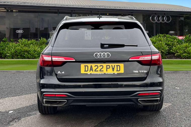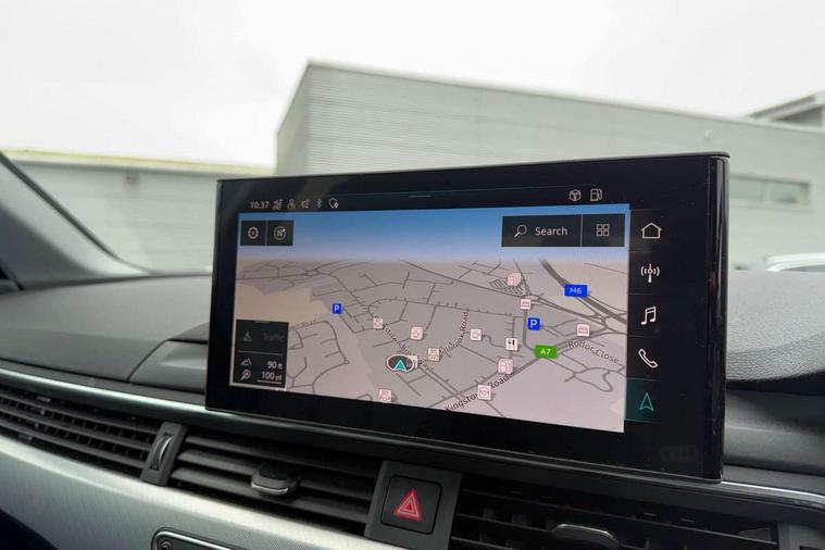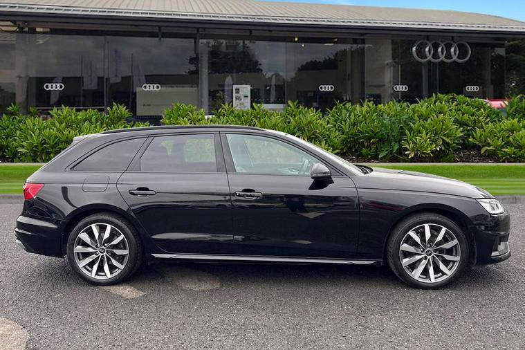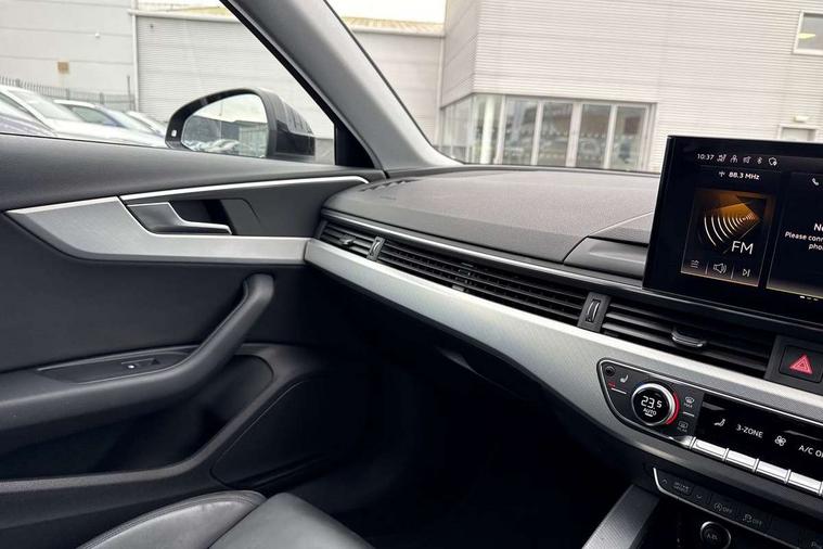 Audi connect safety and service (e-call), Audi connect with Amazon Alexa Integration, Audi drive select, Audi smartphone interface, Audi virtual cockpit, Automatic start-stop system with coasting functionality and efficiency programme, Bluetooth interface, Cruise control system with speed limiter, Electromechanical power steering, Email, calendar and text messages displayed via MMI, MMI Navigation plus with MMI touch includes 10.1" high resolution colour MMI display, 3D map, Power operated tailgate, Voice control system, 54 litre fuel tank, Comfort dynamic suspension, 2 USB charging ports, 8 passive loudspeakers, DAB digital radio reception, Auto dimming rear view mirror, Body colour door handles, Body colour side sill trim, Body coloured door mirrors, Electrically folding auto dimming/adjustable/heated door mirrors with LED side indicators and kerb view function for passenger side, LED headlights and rear lights with LED daytime running lights, LED third brake light, Matt aluminium silver tailpipe trim, Privacy glass, Rain and light sensors, Rear diffuser in matt titanium black with trim strip in matt aluminium silver, Rear side wing doors, Rear wiper, Sport front and rear bumpers with side skirts, Variable intermittent front wash/wipe, Windscreen with acoustic glazing, 3 spoke high multi-function leather sport steering wheel with paddle shift and height and reach adjustable, 4 way electric lumbar support for driver and front passenger, 40/20/40 split folding 3 rear seat bench in 3 parts with rear centre armrest, Deluxe 3 zone electronic climate control, Door sill trims with aluminium inlay, Electric load area cover, Front and rear head restraints, Front centre armrest, Heated front seats, ISOFIX child seat mounting and top tether, Manual seat adjustment, Single front passenger seat, Twin leather upholstery + front sports seats, Black styling pack - A4 Avant Sport Edition/S4 Black edition/S4 Vorsprung, High gloss package - A4, LED Interior light pack - A4/S4, 3 rear seatbelts, 6 airbags - Driver, front passenger, curtain and side windows, Electronic Stabilisation Control (ESC) including ABS, ASR and EDL, Hill hold assist, Multi collision brake assist, Pop-up bonnet for pedestrian protection, Pre sense city, Rear door child safety locks, Seatbelt monitoring, Warning triangle and first aid kit, Anti theft alarm, Anti theft wheel bolts, Central locking, Keyless Go, Aluminium ellipse silver inlays, 18" 10 spoke dynamic design alloy wheels, Tool kit, Tyre repair kit,