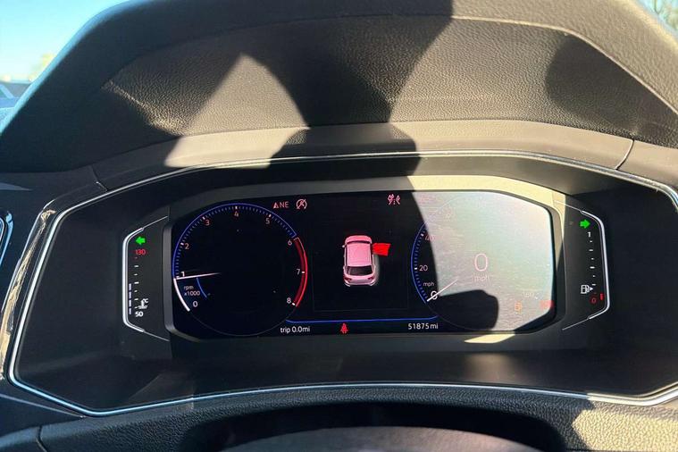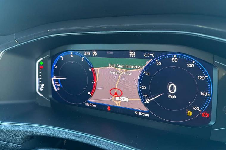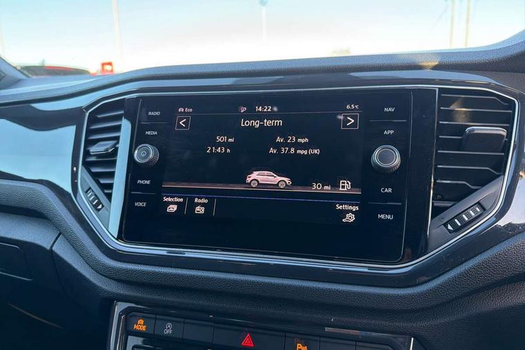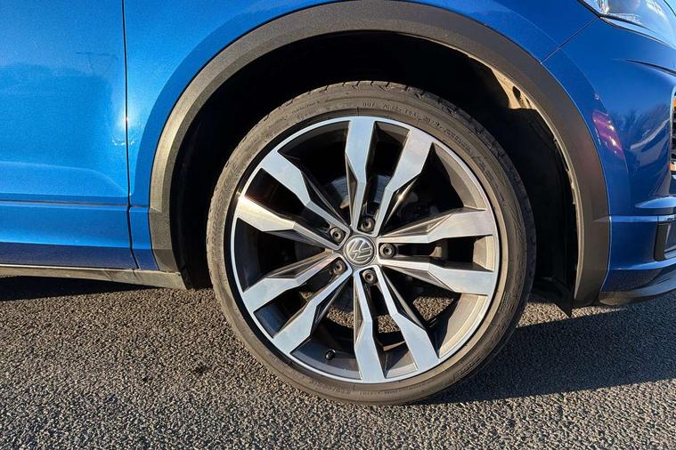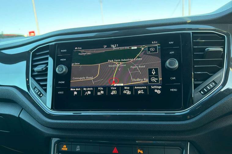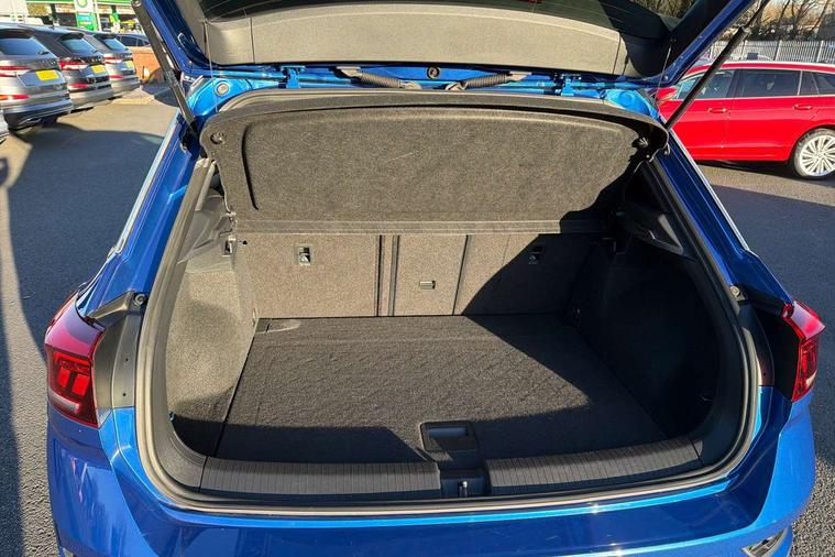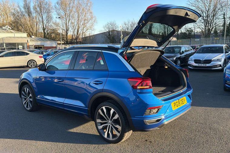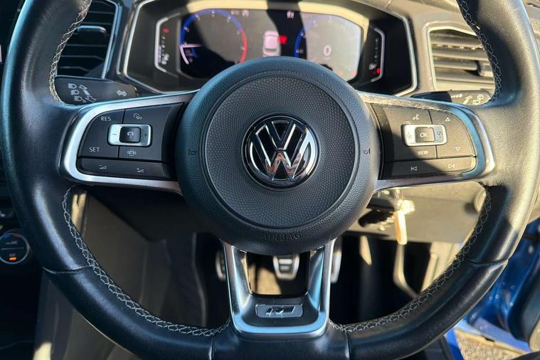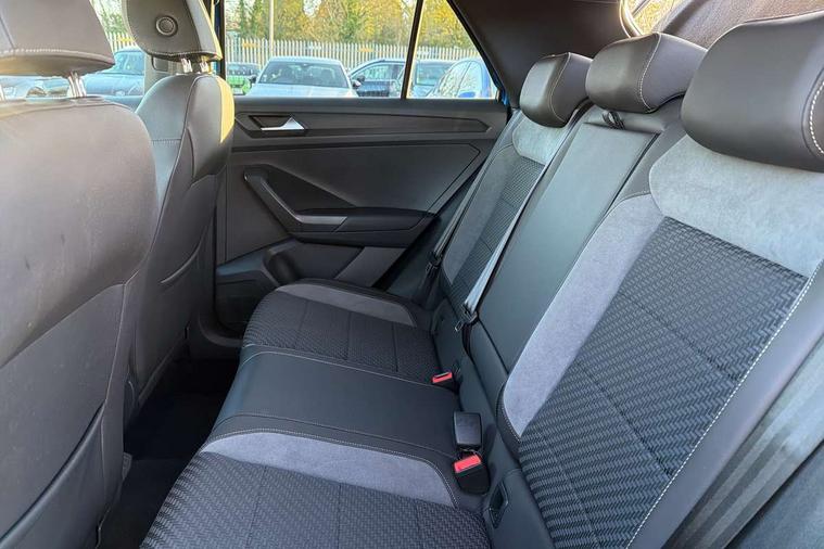 App-Connect, 2 USB connection charging sockets, Active Info Display, 10.3" high resolution TFT dash display screen with customised information, Adaptive cruise control, Automatic start/stop system, Bluetooth telephone and audio connection for compatible devices, Car information display, Car-Net Security and Service, Discover navigation, 8" touch screen navigation/infotainment system with Car-Net, European map, CD/radio, 2D/3D map and speed limiter, Driver alert system with audible and visual fatigue detection system, Driver profile selection, Dusk sensor, Front assist, radar sensor controlled distance monitor, city emergency braking + predictive pedestrian protection, Lane assist, Multifunction computer with visual gear change recommendation for fuel consumption, Progressive power assisted steering, Service interval indicator, Think blue trainer driver tips and journey analysis, Voice activation, Warning sound and light for doors and tailgate open, Warning sound and light for front seatbelts unfastened, Battery regeneration during braking, Bluetooth - Simultaneous pairing of 2 compatible mobile devices, DAB Digital radio, Dynamic navigation based on TMC+, Multi device interface (MDI) with USB connection, Music playback - MP3, WMA and AAC files, Premium USB cable in choice of either Apple or Android smartphone compatibility, SD card slot, SMS functionality - read, compose and send SMS messages using touch-screen display, Three route options - Fast, Short, Eco, Title and cover art display, Auto dimming interior rear view mirror, Automatic hazard lights activation under emergency braking, Black grained lower door protectors, Black grained wheel arches, Body colour door handles, Body colour rear roof spoiler, Chrome effect left and right trapezoid exhaust tailpipe fascia surround, Chrome trim on upper and lower radiator grille, Door mirror integrated indicators, Electrically foldable, adjustable and heated door mirrors with puddle lights and reverse activated kerb-view adjustment on passenger's door mirror, Front and rear electric windows, Front fog lights with static cornering function, Front windscreen wiper with intermittent wipe and 4 position delay, Fully galvanised body, Heated rear window, High level 3rd brake light, LED darkened rear light clusters, LED dipped and main beam headlights with automatic range adjustment including signature LED daytime running lights, LED rear number plate lights, Manual coming/automatic leaving home lighting function, Rain sensor, Rear tinted glass from B-pillar backwards approx 65% tinted, Rear windscreen washer and wiper with interval delay, 12V socket in centre console storage area, 2 LED front and rear reading lights, 3 rear head restraints, 4 load lashing points in luggage compartment, Aluminium pedals, Ambient lighting in front footwell and light strips below trim in front doors, Black roof lining and sun visors, Carbon flag cloth upholstery, Climate control - 2 zone electronic air conditioning with automatic air recirculation and allergy filter, Drawer under drivers seat, Front + rear carpet mats, Front centre armrest with storage compartment, longitudinal and height adjustable and two rear air vents, Front cupholders x 2, Front footwell illumination, Front seat back storage pockets, Front sport seats, Glovebox, Height adjustable front seats, Height/reach adjust steering wheel, Illuminated vanity mirrors, Instrument lighting, white adjustable panel illumination, Interior light delay, Isofix easy fit child seat preparation for 2 outer rear seats, Load through provision with single cup holder when folded down, Luggage compartment cover, removable, Luggage compartment lighting, R Line badge, Split folding rear seat backrests with centre armrest, Storage compartment in left and right luggage area, Storage compartment in rear doors, Storage compartments in driver and front passenger doors, Three spoke multi-function leather trimmed steering wheel and gearknob, Unique R Line door sill protectors, R line styling pack - T-Roc, Winter pack - T-Roc, 3 rear three point seatbelts, ABS, Driver and front passenger safety-optimised head restraints, Electronic parking brake with auto hold, ESC with EDL, ASR, EDTC and trailer stabilisation function, Front and rear curtain airbags, driver and front passenger airbags with passenger deactivation switch and front side impact airbags, Rigid safety cell with front and rear crumple zones, Three point height adjust front seatbelts + pretensioners, Tyre pressure loss indicator, Ventilated front and rear disc brakes, Volkswagen roadside assistance, Alarm with remote central locking and interior protection, Electronic engine immobiliser, Remote central locking with 2 remote folding keys, Caribou grey decorative inserts in dash and door panel, 19" Suzuka alloy wheels with low rolling resistance tyres and anti wheel bolts, Steel space saver spare wheel,
