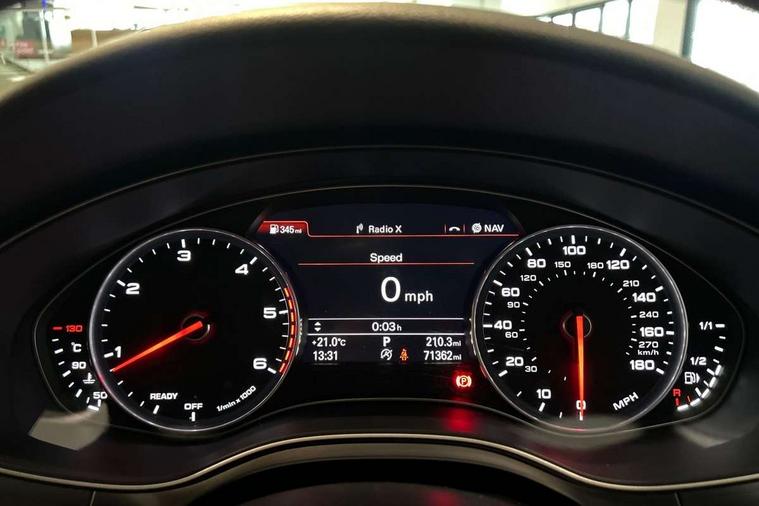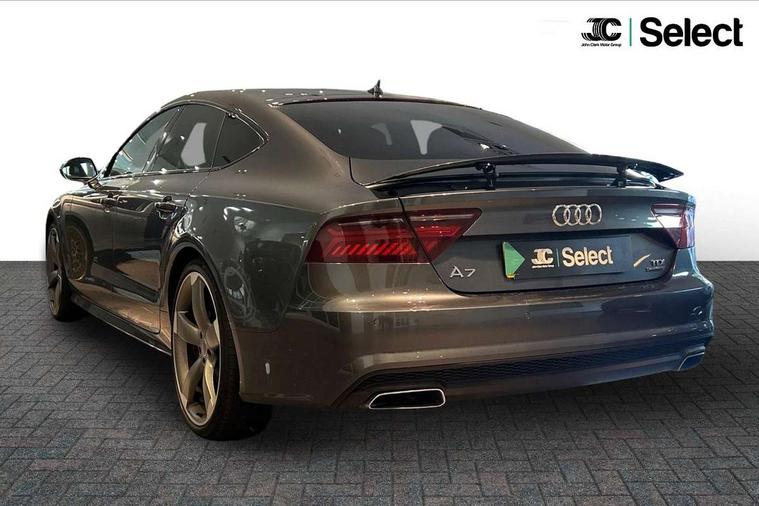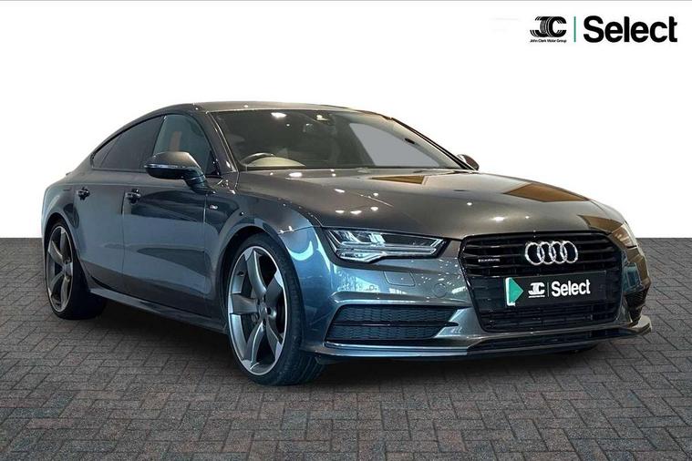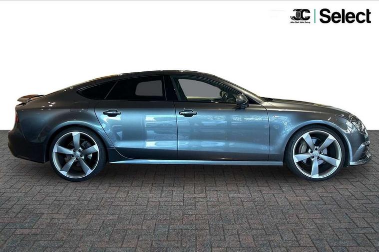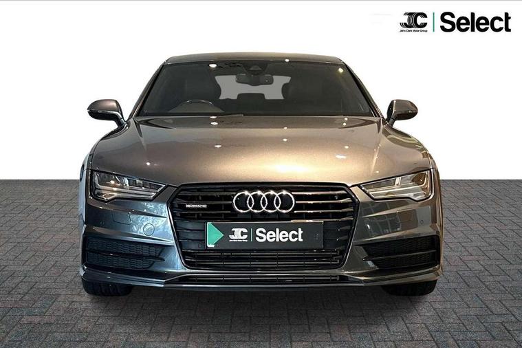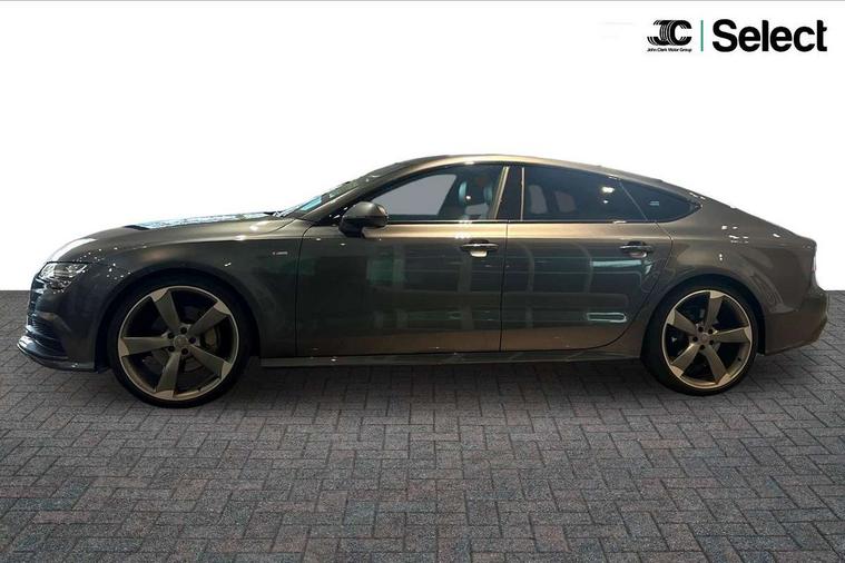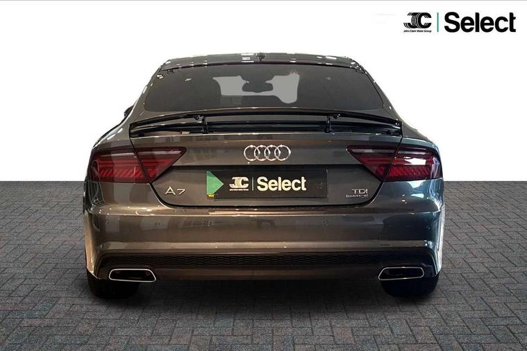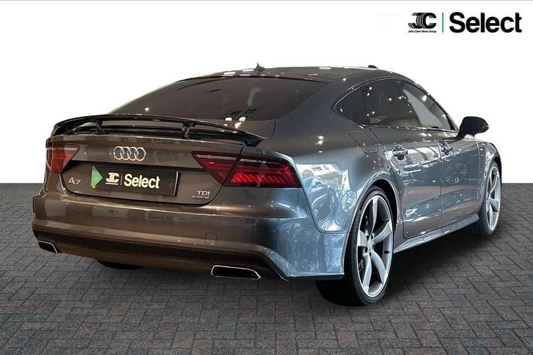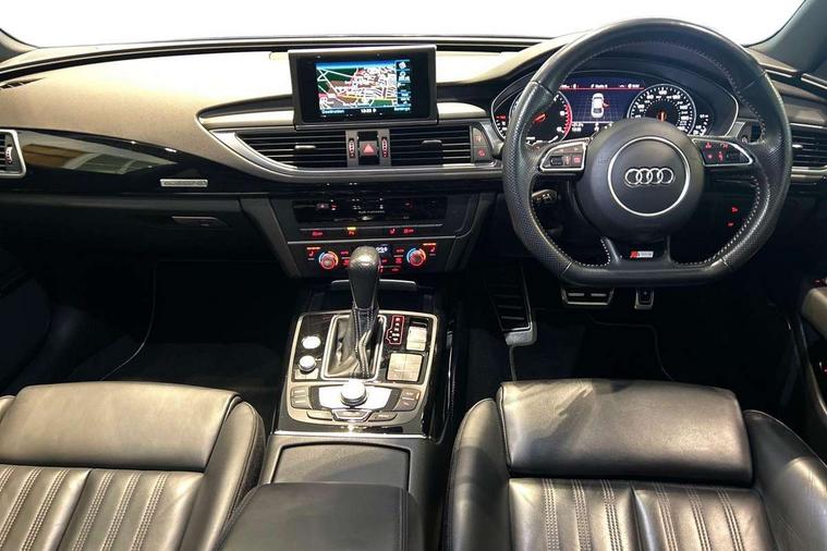 Audi drive select, Audi parking system plus with front and rear sensors, Colour driver's information system display, PAS, Power boot opening and closing, Service indicator, Diesel particulate filter, Audi music interface, Auxiliary input socket, DAB digital radio module, MMI radio plus with CD player, Acoustic glass, Auto dimming rear view mirror, Body coloured bumpers, Body coloured door mirrors, Front and rear electric windows, Headlight washers, LED daytime running lights, LED tail lights, Matrix beam LED headlights, Platinum grey front lip spoiler, Platinum grey rear diffuser, Privacy glass (to rear of B post), Rain and light sensors, Retractable rear boot spoiler, S Line body styling, 12V power points in front + rear centre consoles, 4 zone control automatic air conditioning, 4-way electric lumbar support, Alcantara door panels, Black cloth headlining, Door sills trims with aluminium inlays, Electrically adjustable front seats - driver seat with memory, Front and rear headrests, Front centre armrest, Front/rear floor mats, Isofix front passenger and rear seat preparation, Jack and tool kit, Perforated leather gearknob, Rear centre armrest, Split folding rear seat, Black styling pack - A7, High gloss pack - A7, 3x3 point rear seatbelts, ABS, ASR traction control, Curtain airbags, Driver and passenger airbags, Driver/front passenger side airbags, EDL, Electromechanical parking brake, Electronic stability control, ESP, Front passenger airbag deactivation, Front seat belts warning, Hill hold assist, Tyre pressure warning, Warning triangle, Anti theft alarm, Anti-theft wheel bolts, Immobiliser, Keyless Start, Preparation for tracking system, Remote central locking, Space saver spare wheel,