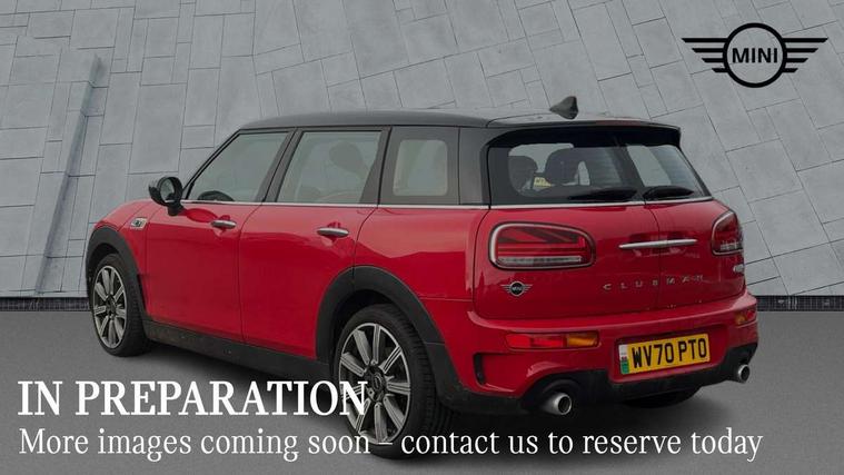 Active Guard incl speed limiting and lane departure functions with auto steering, and front collision warning with brake intervention, Automatic start/stop function with brake energy recuperation, Compatible mobile phone bluetooth with audio streaming, Digital cockpit, Electro-mechanical speed dependant steering assistance, Instrument cluster, Mini E-call, MINI TeleServices, On board computer, 6 Speed manual transmission including gear change indicator display, Double Vanos system, Fully variable valve control, High precision injection, Performance Control, FM tuner and DAB digital radio, Bonnet scoop, Chrome fuel filler cap, Chrome lower front grille grating, Chrome radiator grille bars, Dynamic brake lights, Electric windows, Heated rear window, Heated windscreen washer jets, LED headlights with closed ring as daytime driving lights, LED rear light with union jack design, Metal door sill strips with Cooper S imprint, Model logo, Model logo on rear doors, Rain sensor with auto headlights, Rear fog lights, Rear window wiper, Side scuttle panel with integrated indicator, Split rear doors, Sun/heat protection glass, Twin exhaust tailpipe, White indicator lenses, 12V Accessory socket in centre console, 360L luggage compartment capacity, 4 lashing eyes in luggage compartment, 60/40 split folding rear seat, Chrome air vents, gear lever base and door handles, Chrome interior highlights, Cupholders, English handbook, Front and rear head restraints, Glove compartment, Height and length steering column adjustment, Interior lighting with 12 basic colours selectable via toggle switch in roof, Isofix rear child seat preparation, Leather gearshift lever and handbrake gaiters, LED reading lights, vanity mirror lights, front foot well light and spotlight on front seats, Manual air conditioning, MINI Yours fine walk nappa leather steering wheel with contrast stitching in silver and MINI Yours badge, Multifunction steering wheel, Storage compartments in doors, Sunvisors with vanity mirrors, Toolkit, Excitement pack - Clubman, Navigation pack - Clubman, 2 tone horn, 3 point seatbelts on all seats, 6 Airbags - front, side, head and seat belt tensioners, Anti-lock braking system (ABS), DSC - Dynamic Stability Control, Electronic handbrake, Front and rear disc brakes, Tyre pressure monitoring system, Alarm system with tilt sensor, monitoring doors, bonnet interior and tailgate, Auto drive away locking, Deadlocking function, Electronic vehicle immobiliser, Locking wheel bolts, Start/stop toggle with keyless go, Chrome line interior,