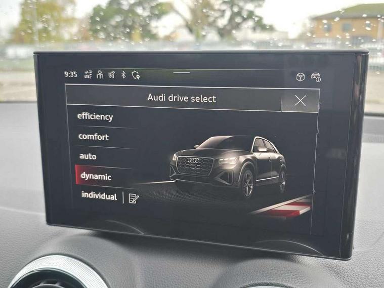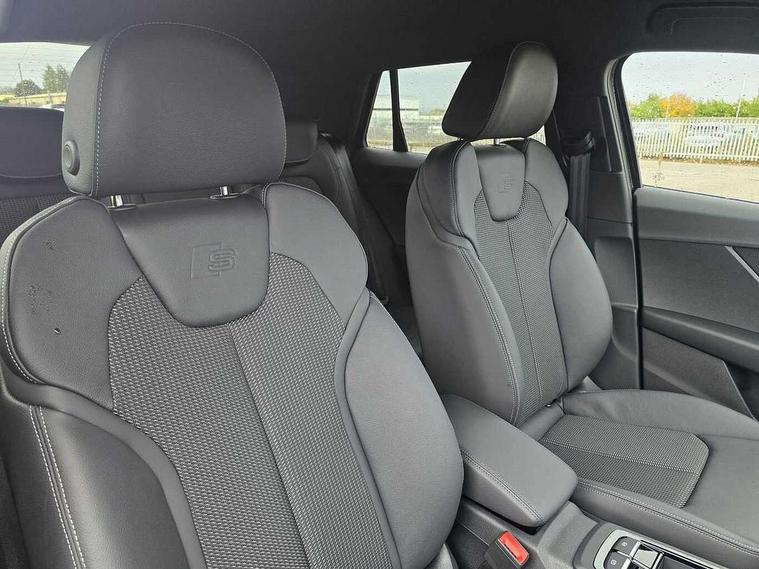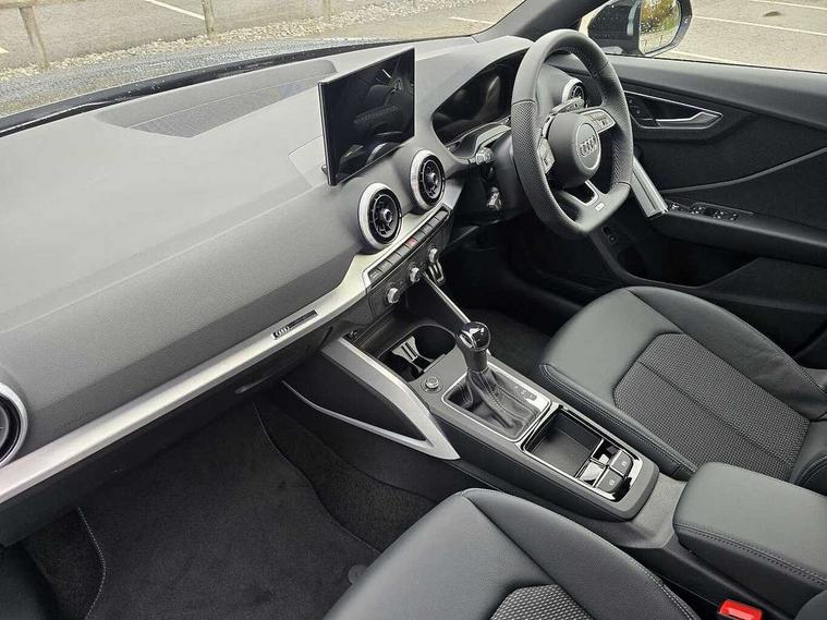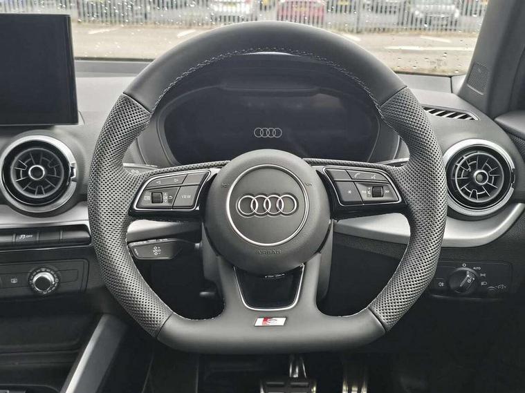 3D map display, Audi connect navigation and infotainment includes innovative services, Audi connect remote and control connects your vehicle to your smartphone, Audi drive select: S tronic - power steering assistance + engine + gearshift (modes: comfort, auto, dynamic, efficiency, individual), Audi smartphone interface - Apple carplay/Android Auto, USB connect, 2xSDXC card readers, voice control for navi, telephone, music and 3rd party apps, Audi virtual cockpit, Automatic start/stop system with recuperation, Bluetooth interface includes bluetooth audio streaming, Camera based traffic sign recognition, Cruise control, Distraction and Fatigue warning, E-call, Jukebox hard drive memory for music (10GB), Lane departure warning, MMI navigation plus with 8.8" touchscreen, Natural voice recognition, Power operated tailgate, Progressive steering, Rear parking sensors, Sport suspension, 6 passive loudspeakers, DAB Digital radio, USB type C port, Audi beam, Auto dimming rear view mirror, Black window trims, Bumper in full body colour paint finish, Electrically adjustable, folding, auto dimming and heated door mirrors with integrated LED side indicators, Front windscreen with grey tinted sunband, LED daytime running lights, LED headlights with dipped beam, high beam, position lights, indicators, LED rear lights, LED third brake light, Privacy glass - dark tinted rear and rear side windows from B-pillar backwards, Rear side wing doors, Rear wiper, Variable front intermittent wipers, Wheel arch trims in manhattan grey, 12V socket in front, 3 seat bench in 2nd row, 3 spoke flat bottomed multi-function leather sport steering wheel with gear shift paddles with S logo, 4-way electric lumbar support for front seats including manual seat height adjustment for both front seats, 60/40 split folding rear seat bench, Black carpets, Black cloth headlining, Front and rear head restraints, Front centre armrest, Front sport seats, Front/rear floor mats, Height/reach adjust steering wheel, Illuminated door sill trims with S logo, ISOFIX child seat mounting in front passenger and rear outer seats, Manual air conditioning, Single front passenger seat, Stainless steel pedals, Black styling pack - Q2, 3x3 point rear seatbelts, 6 airbags - Front, curtain and front side airbags, Electromechanical parking brake, Electronic stabilisation control including ABS, ASR and EDL, Front passenger airbag deactivation, Hill hold assist, Pre-sense front with pedestrian recognition, Seatbelt monitoring, Tyre pressure warning light with visual and acoustic warning, Warning triangle and first aid kit, Anti theft wheel bolts, Electronically operated child locks, Remote central door locking, Thatcham category 1 alarm, Aluminium interior element, Black dashboard, Gloss black centre console, Matt brushed aluminium trim inlays, Tool kit,