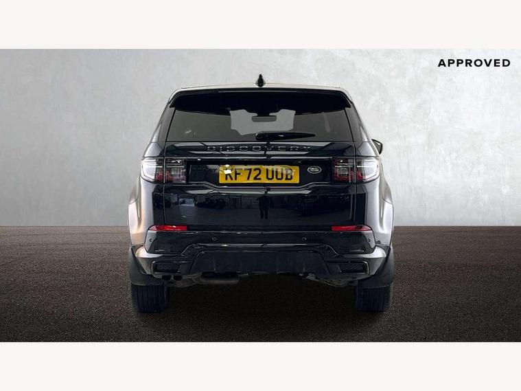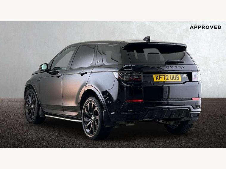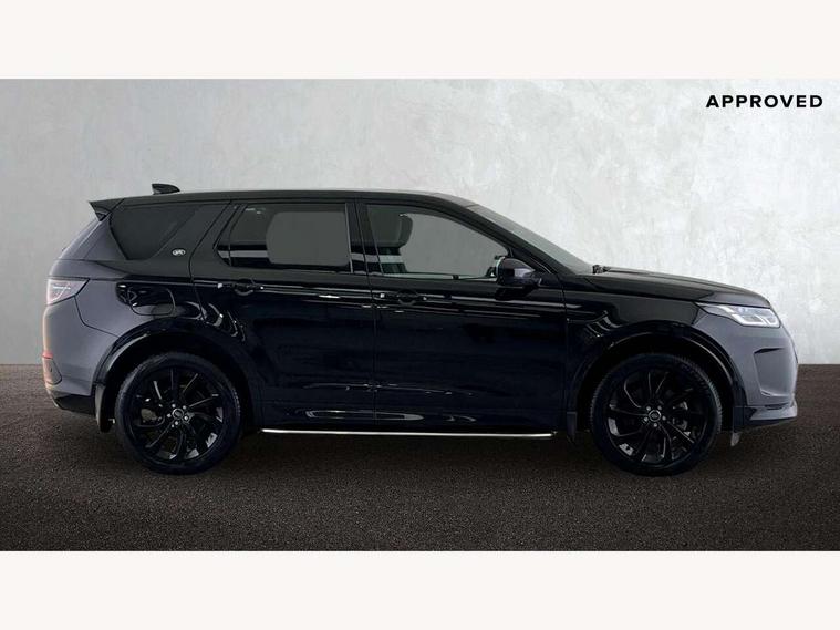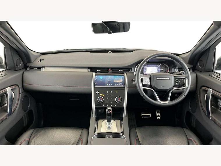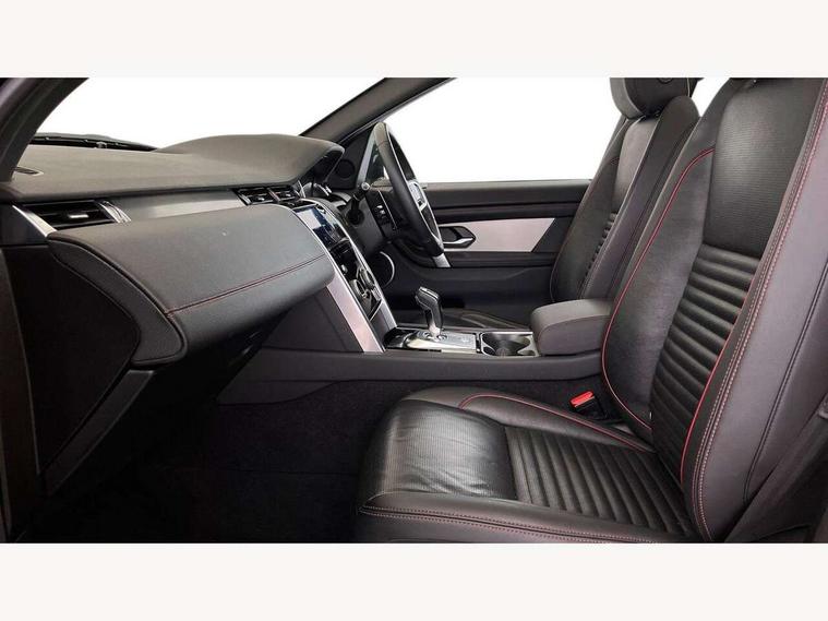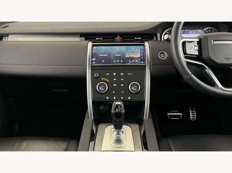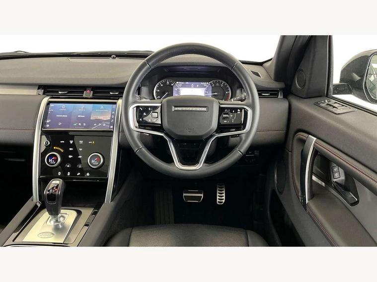 10" touch screen, Adaptive cruise control, Android Auto, Apple CarPlay, Driver condition monitor, eCall emergency call system, Front and rear parking aid, InControl remote premium, Lane keep assist, Locking fuel flap, PAS, Pivi Pro connected navigation system with upgraded Infotainment, Powered tailgate/boot lid, Push button start, Rear collision monitor, Service interval indicator, Traffic sign recognition with adaptive speed limiter, Trip computer, Wade Sensing, All terrain progress control, Coil suspension system, Diesel particulate filter, Dynamic stability control, Terrain Response 2, Bluetooth connectivity including audio streaming, Digital Audio Broadcast radio-DAB, Steering wheel mounted audio controls, 3rd brake light, Automatic headlights, ClearSight interior rear view mirror, Electric front/rear windows, Electric heated/power fold door mirrors with approach lights and auto dimming driver side, Fixed panoramic sunroof with powered sunblind, Front and rear recovery eyes, Heated rear window, Heated windscreen including heated washer jets, No badges, R Dynamic badge, Rain sensing windscreen wipers, Rear fog lights, Rear side wing doors, Rear wing door, Rear wiper, 5 seats, Bright metal pedals, Centre console with armrest, Footwell lights, Front and rear grab handles, Front passenger isofix child seat attachment, Loadspace cover, Loadspace light, Overhead lighting console, Overhead stowage for sunglasses, Rear headrests, Satin chrome gearshift paddles, Sunvisors with illuminated vanity mirrors, Tilt/reach adjustable steering wheel, Black exterior pack - Discovery sport, Online pack with data plan - Discovery, 3 point seatbelts on all seats, ABS, Brake hold function, Child locks on rear doors, Collision mitigation braking system, Cornering brake control (CBC), Driver/Front Passenger airbags, Drivers knee airbag, Electronic brake force distribution, Electronic parking brake, Emergency brake assist, ESP + traction control, Hill descent control, Hill launch assist, Pedestrian airbag system, Rear seat ISOFIX, Roll stability control, Side and curtain airbags for front and 2nd row seats, Trailer stability control, Tyre pressure monitoring system, Battery Back Up System (BBUS) with tilt sensor, Global lock and unlock switch on driver door, Intrusion sensor, Keyless entry, Locking wheel nuts, Centre stack rails in noble chrome,