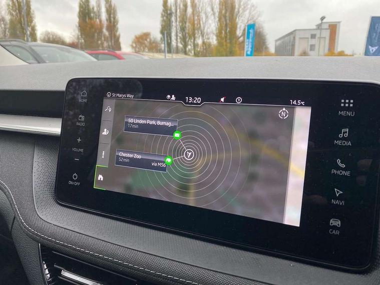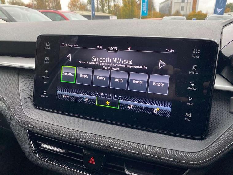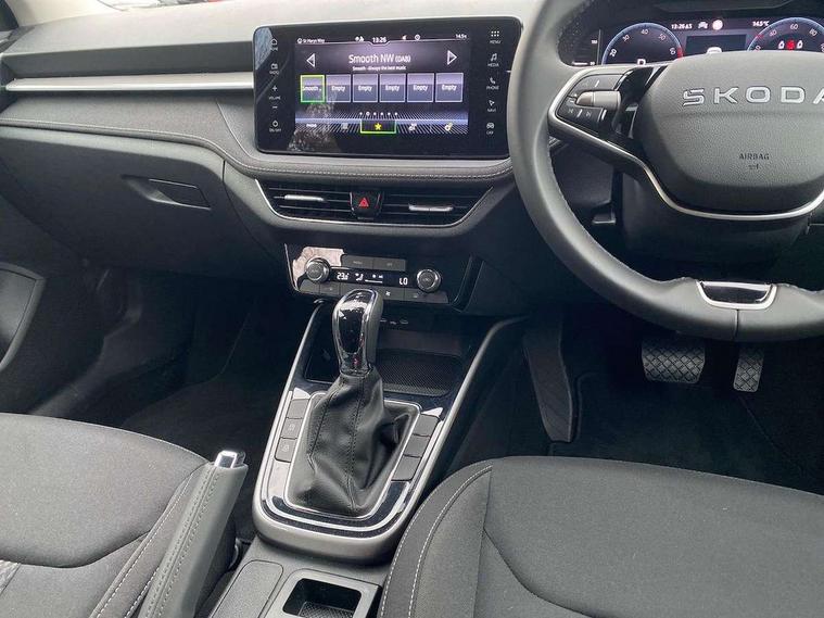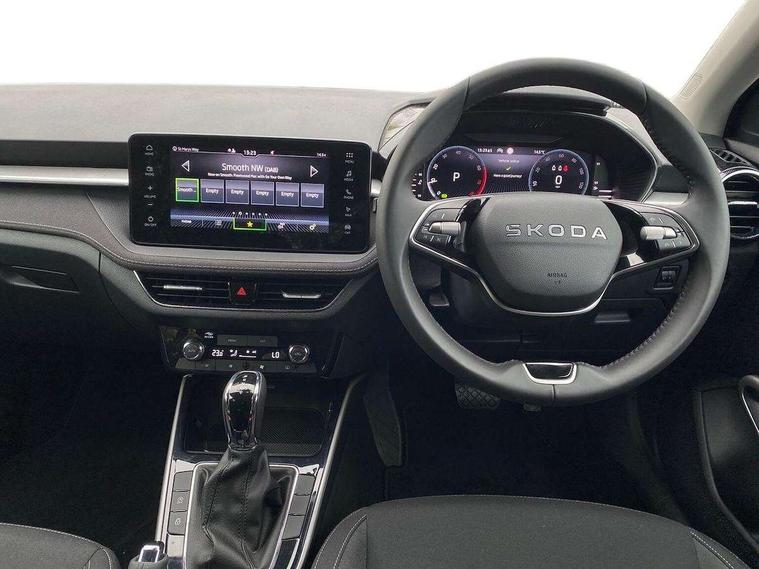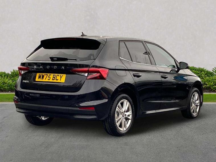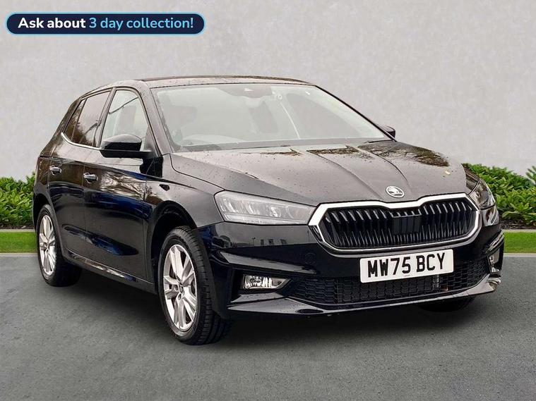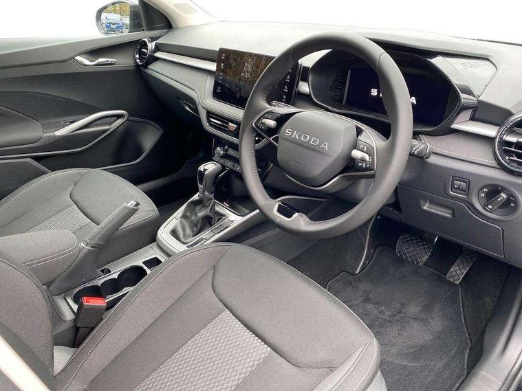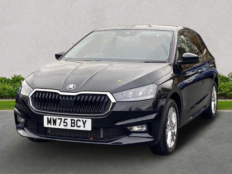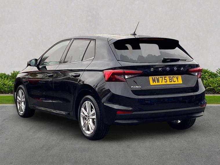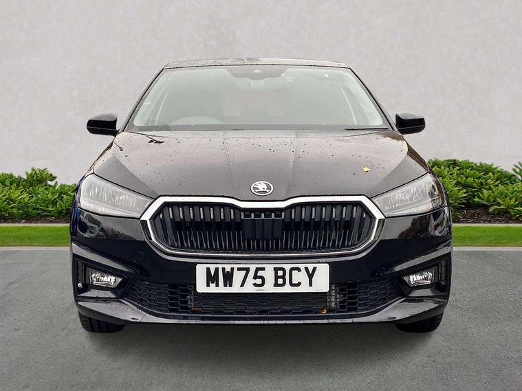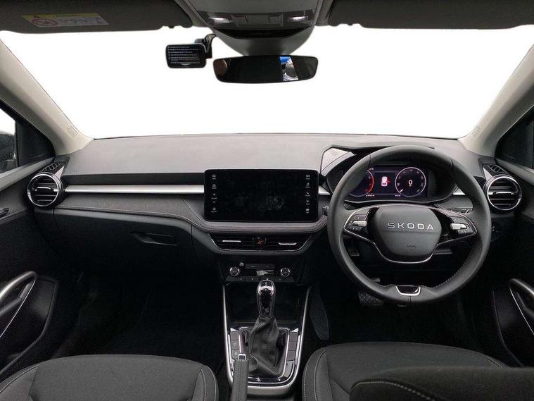 Advanced driver attention and drowsiness monitor, Bluetooth connection, Driver alert system, Electromechanical power steering, Exterior temperature gauge, Service interval indicator, Traffic sign recognition, Virtual cockpit with 10.25" colour display, Wireless SmartLink for Apple CarPlay and Android Auto, 6 Speakers (4 in front and 2 in rear), 9.2" colour display skoda navigation system with voice control and web radio, Auxiliary socket for external MP3 player, DAB digital radio reception, Auto dimming rear view mirror, Body colour door mirrors, Body coloured bumpers, Chrome window surround, Door mirror integrated indicators, Front and rear electric windows, Front window wiper intermittent control, Headlight range control - Automatic, Ice scraper in fuel cap, LED 3rd brake light, LED daytime running lights with coming and leaving home feature, LED rear lights, Privacy glass, Rear LED fog light, Rear side wing doors, Rear window wiper with washing nozzles, Roof mounted spoiler, SKODA tailgate lettering in chrome, Unique dark chrome design logo on alloy wheels, 2 LED reading lights in front and rear, 3 rear headrests, Backrest split and folding, Central console with fixed cup holder and storage box, Chrome handbrake release button, Comfort seats, Door sills with fabia badging, Dual zone air conditioning with climatronic electronic control, Fabric upholstery, Front centre armrest, Gearshift knob/handle in leather, Grain satin black interior door handles, Hand brake lever handle in leather, Height adjustable front headrests, Height adjustable front seats, Height adjustable steering wheel, ISOFIX and TopTether anchorage points to the outer rear seats, ISOFIX and TopTether on the front passenger seat, Luggage compartment lighting, Manually adjustable lumbar support in front seats, Pollen filter, Rear seat bench unsplit, Single front passenger seat, Skoda lettering on steering wheel, Storm grey headlining, Sun visors with mirror and airbag label on passenger side, Textile floor mats, Ticket holder, Ambient lighting pack - Fabia Hatchback, 3-point height adjustable front seats belts with pretensioner and force limiter, Automatic warning lights in case of crash, Driver and passengers airbag with switch off function, e-Call+, ESC including ABS, MSR, ASR, EDS, HBA and XDS, Front and rear seat belt warning, FRONT ASSIST (AEB City and AEB Inter Urban), Front side airbags, Head airbags, Hill hold control, One tone horn, Pedestrian protection, Three rear 3-points safety seat belts with pretensioner and force limiter including stop function for outer rear seat belts, Tyre pressure monitoring system, Anti-theft alarm system including immobiliser, interior monitoring, backup horn, and towing protection, Central locking with radio remote control, interior controls, SAFE function and 2 foldable keys, Chrome edged air vents, Grain satin black central console cover, Metallic grey upper decorative trim, Satin black door and side trim panel in front, Textile microsuede grey lower decorative trim with art grey stitching, Anti-theft wheel bolts protection, Super-low rolling resistance tyres,