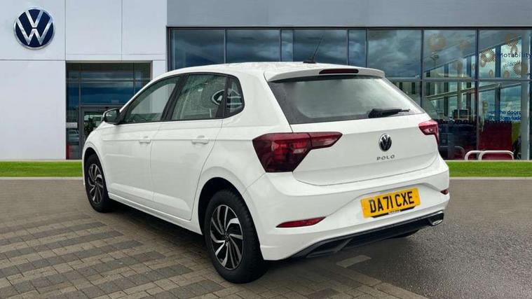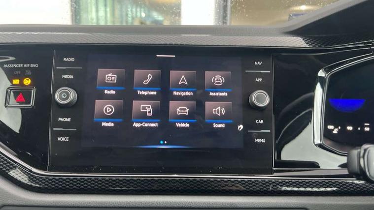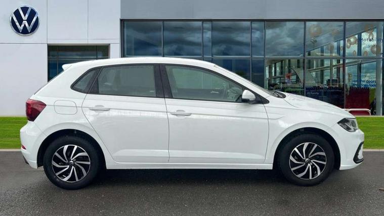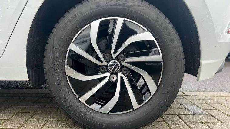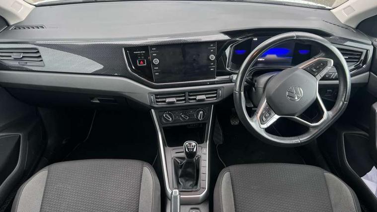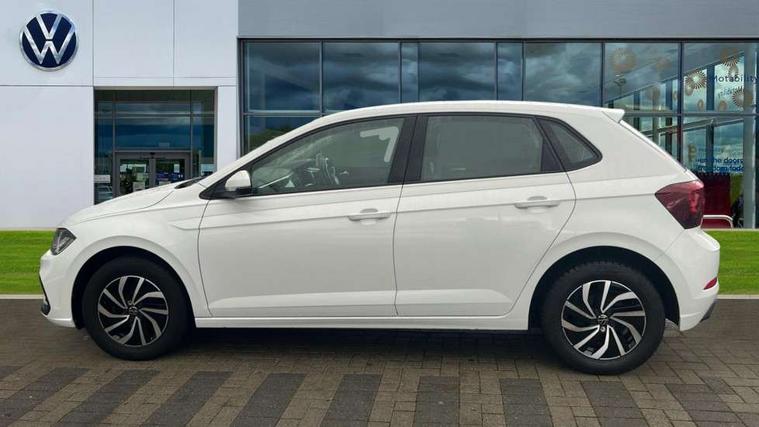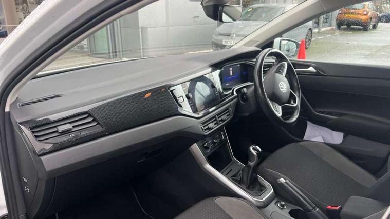 Adaptive cruise control without follow-to-stop and speed limiter, Bluetooth mobile phone interface, Driver alert system, Emergency call service, Front assist system, Power assisted speed sensitive steering, Preparation for We connect and We connect plus, Speedo and rev counter, electronic odometer, trip, service interval display and fuel gauge, Standard rear axle, Travel Assist - Lane keeping system and traffic jam assist, Travel assist including emergency assist, Trip computer, Warning signal and warning light for front and rear seatbelts not fastened, Washer fluid level indicator, Wireless app connect, Front wheel drive, Rear shock absorpion, Start-stop system with battery regeneration (recuperation - energy recovery during braking), DAB Digital radio, Diversity antenna for FM reception, Automatic dimming interior rear view mirror, Body colour bumpers, Body colour door handles, Body colour door mirrors, Electric front windows, Heat insulating darkened glass in side and rear windows, Heat insulating glass windscreen, Power folding adjustable/heated exterior mirrors and front passenger exterior mirror lowering function, Rain sensor, Rear electric windows, Rear fog light, Rear windscreen washer and wiper with interval delay, Third brake light, 12V power socket in centre console, 2 front and 2 rear reading lights, 2 USB-C ports in the front, 2 USB-C charging sockets on the center console in the rear, 3 rear head restraints, 60/40 split folding rear seat and rear seat bench not split, Ceramique headliner, Chrome plated radiator grille inserts, air vent surrounds and light switch surrounds, Door and side trim panel, Driver and front passenger seat height adjustment, Driver/passenger sunvisors with illuminated vanity mirrors, Front centre armrest, Front seat backrest storage pockets, Front standard seats, Handbrake lever handle in leather, Hartley/Thomas cloth upholstery, Isofix child seat preparation easy-fit (for two outer rear seats, and front passenger seat) compatible with I-size, Leather trimmed gear knob, Luggage compartment cover, Luggage compartment floor, Luggage compartment lighting, Multifunction steering wheel, Standard pedal cluster, Light and vision pack - Polo, 3 point height adj front seatbelts + pretensioners, 3x3 point rear seatbelts, ABS, Driver and front passenger airbag with front passenger airbag deactivation, Drivers and front passengers safety optimised head restraints, ESC (Electronic stability control) + EDL (Electronic Differntial lock) and ASR (Traction control), Extended and predictive pedestrian/ cyclist protection, Front curtain and side airbags with center airbag, Front disc brakes, Hill hold control, Rear drum brakes, Single tone horn, Tyre pressure loss indicator, Alarm with interior protection, Anti-theft alarm system with interior monitoring, backup horn, and towing protection, Anti-theft wheel bolts, Electronic engine immobiliser, Lava stone black gloss/matt decorative inserts in dash and front door panels, Low rolling resistance tyres,