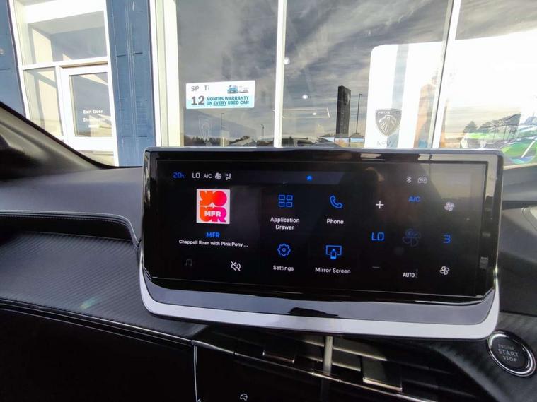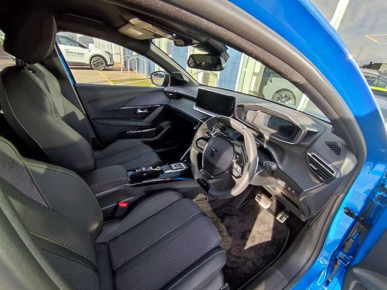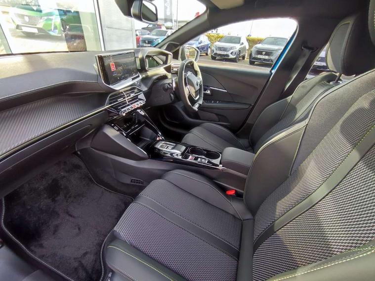 Bluetooth telephone facility, Drive mode select (Eco/Normal/Sport), Driver attention warning, Emergency call service, Exterior temperature indicator with ice warning, Front and rear parking sensors, Gear lever - e-Toggle, Multi function trip computer, PEUGEOT i-Cockpit with 10" configurable 3D colour head up instrument panel, PEUGEOT i-Cockpit with 10" HD capacitive colour touchscreen, PEUGEOT i-Cockpit with compact steering wheel, PEUGEOT SOS and assistance, Push button start, Smart phone docking station, Speed limit recognition and recommendation, Start/stop system, Wireless mirror screen with apple carplay and android auto, 6 Speakers - 2 tweeters and 4 door speakers, DAB Digital radio, USB-A socket (x1) and USB-C socket (x1) - rear, USB-C data and charge socket and USB-C charge socket in front, Voice recognition for radio, navigation and telephony features, 2 X Rear number plate lights, Acoustic windscreen, Antenna - Gloss Black 'fin' design, Automatic hazard light activation upon heavy brake application, Body coloured exterior door handles, Dark tinted rear side and tailgate windows, Diamond black rear spoiler (roof), Door sills protection with PEUGEOT signature lettering, Electric heated and power folding door mirrors with courtesy floor lighting, Electrochrome rear view mirror, Full LED headlights with automatic height adjustment and PEUGEOT smartbeam assist, Gloss black B pillar, Gloss black door mirror shells, Gloss black front bumper grille with body colour accents, Gloss black rear cluster connecting strip, Gloss black wheel arch extensions, Gloss black window weatherstrips, GT model designation badging on C pillar, Headlights left on audible warning, LED 3 claw horizontal rear lighting signature (with daylight function) and LED brake lights, indicators and reversing lights, LED daytime running lights with distinctive 3 claw signature, LED front indicators, LED third brake light, Model designation badges front and rear, One touch electric front/rear windows with pinch protection, Rear bumper with gloss black finish, Rear reversing lights, Rear side wing doors, Rear windscreen wiper triggered automatically in reverse gear, Tailgate with heated rear windscreen and wiper blade, Variable front intermittent wipers, 1/3 to 2/3 split folding rear seats, 12V socket, 3 seat bench in 2nd row, 8 Colour personalisable ambient lighting, Adamite green contrast stitching to front and rear armrest, front centre console, dashboard facia, Aluminium pedals, Automatic mono zone climate control air condition, Boot lighting, Driver and front passenger dynamic seats, Driver and front passenger seat manual adjustment in longitudinal and back rest angle, Driver and front passenger seat mechanical height adjustment, Driver and passenger sun visors, front footwells and central storage with LED lighting, Electric power steering with reach and rake adjustable steering column, Front centre armrest with storage compartment, High centre console with 2 cup holders, Luxury carpet mats, Map pockets on the backs of the front seats, Multi function full grain perforated leather steering wheel with adamite green stitch detail and 'GT' emblem, Piano keys gloss black plated toggle switches to access main functions of the vehicle, Roof lining - Mistral black, Seatbelt unfastened on the move audible and visual alert for front and rear seats, Single front passenger seat, Visibility pack - 208, 2x Isofix child seat fitting on outer rear seats, 3 rear 3 point seatbelts, ABS (Anti-lock Braking System) with EBD (Electronic Brakeforce Distribution) and EBA (Emergency Braking Assistance), Active safety brake with night function/cyclists/pedestrians, Child locking functionality on rear doors, Driver and front passenger airbag with passenger airbag deactivation, Driver/front passenger side airbags, Electric parking brake, ESP with Hill Assist, Front and rear curtain airbags, Front and rear disc brakes, Front optimised safety headrests and 3 x rear retractable headrests with height adjustable, Front three point retractable seatbelts with force limiters, Remote plip(x2) for locking, unlocking, includes emergency key blade, Tyre pressure monitoring system, Acoustic vehicle alert system (AVAS), Alarm - Connected, volumetric , perimetric, anti lift sensor, Automatic door locking when moving off, Deadlock, Electronic code immobiliser, General safety regulation, Peugeot Open and Go System, Remote central locking, Carbon effect dashboard facia trim, 17" Yanaka two tone diamond cut alloy wheels wheels includes gloss black inserts, Space saver spare wheel,