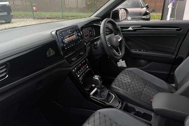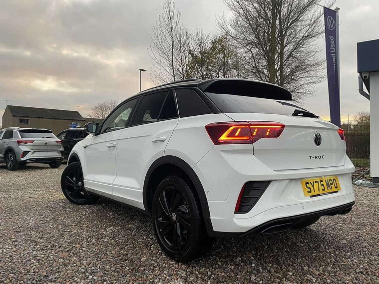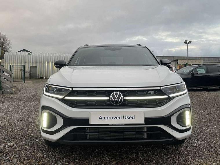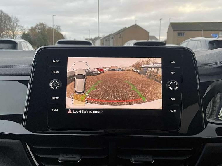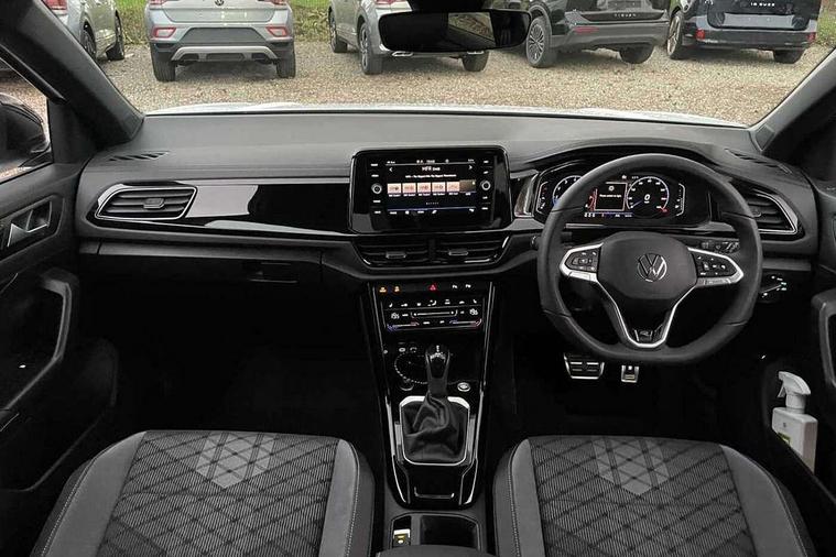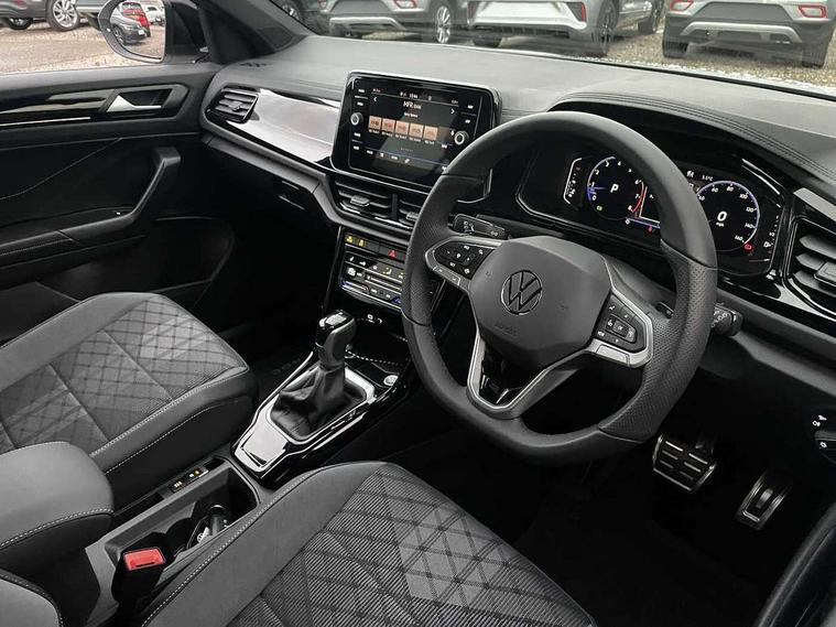 10.25" Digital cockpit pro, Advanced driver attention and drowsiness monitor, Emergency call service, Lane keeping system Lane Assist, Mobile phone interface, Modified key software - reduce switch off time for key status change to Long no motion, Online services, Park assist including front and rear parking sensors, Power assisted speed sensitive steering, Service interval indicator, Tailgate/trunk lid release from outside, Think blue trainer driver tips and journey analysis, Warning sound and light for front seatbelts unfastened, Wireless app connect, Battery regeneration during braking, Rear shock absorption chassis with increased ride height, Start/stop function with battery regeneration, DAB Digital radio, Diversity antenna for FM reception, Front and rear 6 speakers, Music playback - MP3, WMA and AAC files, Premium USB cable in choice of either Apple or Android smartphone compatibility, SD card slot, Simultaneous pairing of 2 compatible mobile devices, Title and cover art display, We Connect and We Connect Plus functionality, Auto dimming interior rear view mirror, Automatic hazard lights activation under emergency braking, Automatic headlight control with LED separate daytime running lights with coming/leaving home function, Dynamic cornering light, Electrically adjustable and heated door mirrors, Extended roof spoiler, Exterior mirrors aspherical on driver side, convex on front passenger side, External USB type C socket and charging sockets, Front windscreen wiper with intermittent wipe and 4 position delay, Heated rear window, Illuminated front grille, IQ LED matrix headlights, LED 3rd brake light, LED rear number plate lights, LED rear tail lights with dynamic turn signal, Light mode for poor weather, rain, fog or snow, Power windows with comfort operation and circuit breaker, R-Line design body coloured bumpers, Rain sensor, Rear exhaust tailpipe, Rear fog light on one side and reversing lights on both sides, Rear side wing doors, Rear wash/wipe with intermittent wipe setting, Remote electrically foldable door mirrors, puddle lights and reverse activated passenger's door mirror, 12V power socket in centre console, 3 rear head restraints, 3 seat bench in 2nd row, 4 load lashing points in luggage compartment, Air care climatronic air conditoning system with active combination filter and 2-zone temperature control, Artvelours cloth upholstery, Black roof lining, Chrome plated radiator grille inserts, air vent surrounds and light switch surrounds, Door and side trim panel with leatherette insert, Drawer under drivers seat, Driver seat height adjust, Driver's seat lumbar support, Front + rear carpet mats, Front centre armrest, Front comfort sports seats, Front cupholders x 2, Front footwell illumination, Front reading light, Front scuff plates with R Line logo, Front seat back storage pockets, Glove compartment door with light, Instrument lighting, white adjustable panel illumination, Interior ambient lighting and surround lighting, Interior light delay, Isofix child seat preparation, Leather gearshift handle, Leather wrapped multifunction steering wheel with paddle shift, Load-through provision with cup holder when folded down ('Unsplit rear seat bench, split folding backrest, with centre armrest), Luggage compartment lighting, Non-folding front passenger seat backrest, Passenger seat height adjuster, Passenger seat lumbar support, Single front passenger seat, Stainless steel pedals, Storage compartment in left and right luggage area, Storage compartment in rear doors, Storage compartments in driver and front passenger doors, Sunvisors with illuminated vanity mirrors, Variable boot floor, height adjustable and removable, Winter pack without heated windscreen washer jets - T-Roc, 3 point height adj front seatbelts + pretensioners, 3 point seatbelts in outer rear with ECE label, ABS, Child locks on rear doors, City emergency braking and pedestrian monitoring, Driver and front passenger airbag with front passenger airbag deactivation, Driver and front passenger safety-optimised head restraints, Drivers seatbelt reminder, Electronic parking brake, Electronic Stability Control (ESC) inc EDL (Electronic Differential Lock) and ASR (Traction Control), Front and rear passengers curtain airbag system including front side airbags, Front disc brakes, Hill start assist, Predictive pedestrian protection, Rear disc brakes, Two tone horn, Tyre pressure loss indicator, Volkswagen roadside assistance, Tool kit, Trims for alloy wheels, Tyre mobility kit including compressor and sealing foam,