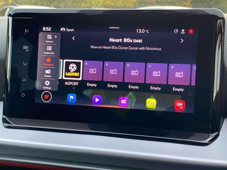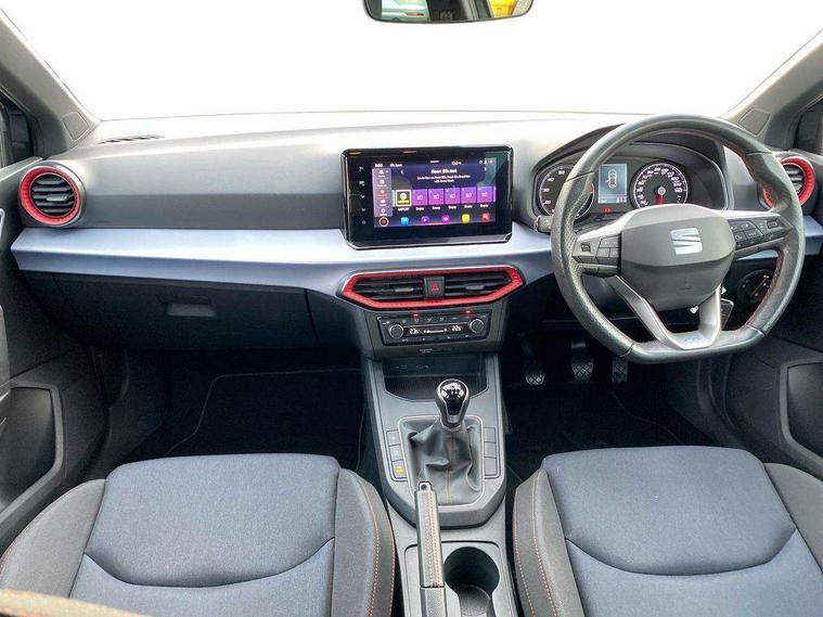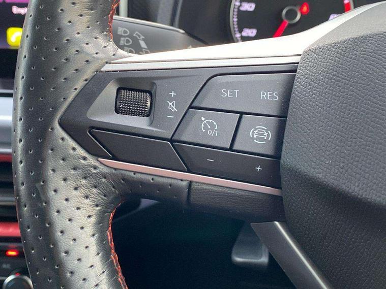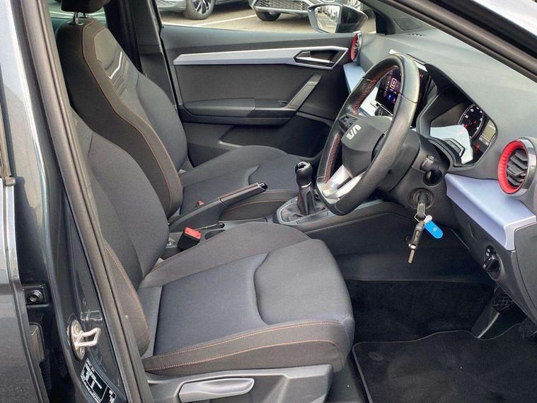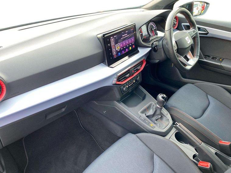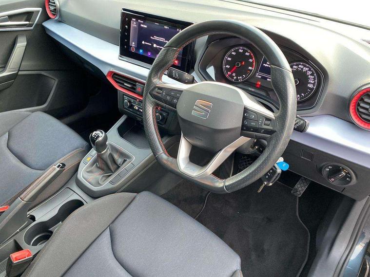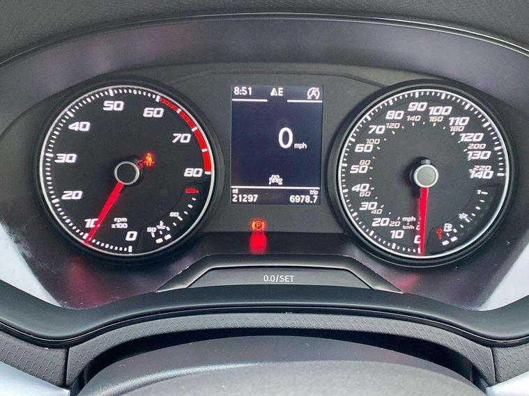 'Lights On' Reminder warning buzzer, 9.2" touchscreen navigation system with type C USB socket, Voice control and DAB/AM/FM radio, Auto start and stop system, Bluetooth audio streaming with handsfree system, Digital clock, E-call, Full link smartphone integration with mirror link, wireless apple carplay, Google android auto + USB Type C cable for apple and android devices, Lane assist, Low fuel warning light, Outside temperature gauge, Power Steering, Seat connect with safety, service, remote and online, SEAT drive profiles and ECO function, SEAT logo boot release, Speed limiter, Trip computer, Sports suspension, Auxiliary input socket, Radio/MP3 player, SD card slot, Steering wheel mounted controls, Anti theft roof antenna, Auto dimming rear view mirror, Automatic rain sensing wipers, Black door mirrors, Body colour bumpers, Body colour door handles, Brilliant black window surrounds, Dark tinted rear windows, Electric adjustable/heated/folding door mirrors, Electric front windows, Electric headlight adjustment, Electric rear windows, Front/rear fog lights, FULL LED automatic headlights with dynamic headlight range control, coming and leaving home, LED daytime running lights, LED tail lights, Rear roof spoiler with FR twin exhausts, Rear side wing doors, Rear wiper, Third brake light, 3 seat bench in 2nd row, 60/40 split folding rear seat, Ambient interior lighting, Chrome detailing and black headlining, Cloth upholstery, Dual zone climate control with combination filter, Front courtesy lights, Front cupholders x 2, Front reading lights, Gear shift indicator, Glovebox, Height adjustable front and rear headrests (five), Height adjustable front seats, Height/reach adjust steering wheel, Illuminated air vent surrounds, Illuminated boot, Instrument lighting with brightness control, Isofix, Leather multifunction flat bottomed sports steering wheel, Passenger sunvisor, Single front passenger seat, Sports seats, Sunvisors with mirror and driver side card holder, 3 point seatbelts on all 3 rear seats, ABS, Active front headrests, Child locks on rear doors, Electronic stability control, Energy recovery system, Front assist forward collision warning and autonomous emergency braking, Front driver and passenger side airbags with curtain airbag and front passenger airbag deactivation, Hill hold control, Multi-Collision braking, Seat belt reminder for front and rear seats, Tiredness recognition system, Tyre pressure monitoring system, Electronic engine immobiliser, Locking wheel bolts, Perimeter alarm and interior monitoring with backup horn and tow away protection, Remote central locking + deadlocks, 17" Alloy wheels in Brilliant silver,