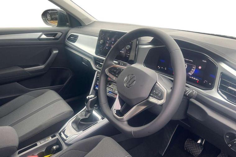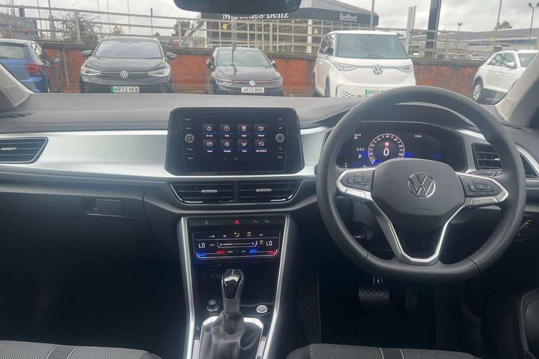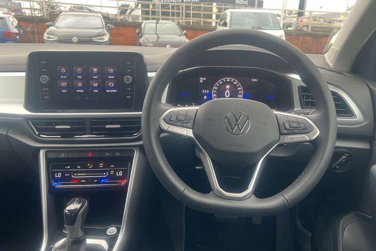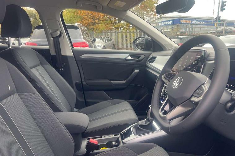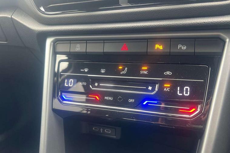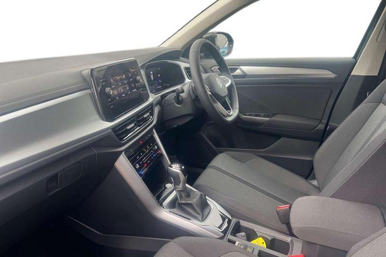 Advanced driver attention and drowsiness monitor, Dynamic road sign display, Emergency call service, Lane keeping system Lane Assist, Mobile phone interface, Modified key software - reduce switch off time for key status change to Long no motion, Online services, Park assist including front and rear parking sensors, Power assisted speed sensitive steering, Rear view camera, Service interval indicator, Tailgate/trunk lid release from outside, Think blue trainer driver tips and journey analysis, Warning sound and light for front seatbelts unfastened, Wireless app connect, Battery regeneration during braking, Front shock absorption, Rear shock absorption chassis with increased ride height, Start/stop function with battery regeneration, DAB Digital radio, Diversity antenna for FM reception, Music playback - MP3, WMA and AAC files, Premium USB cable in choice of either Apple or Android smartphone compatibility, SD card slot, Simultaneous pairing of 2 compatible mobile devices, Title and cover art display, We Connect and We Connect Plus functionality, Auto dimming interior rear view mirror, Automatic hazard lights activation under emergency braking, Automatic headlight control with LED separate daytime running lights with coming/leaving home function, Black roof rails, Body coloured bumpers and radiator grille with chrome trim and front fog lamps with chrome bezel, Body coloured exterior mirror housings and door handles, Electrically adjustable and heated door mirrors, Extended roof spoiler, Exterior mirrors aspherical on driver side, convex on front passenger side, External USB type C socket and charging sockets, Front windscreen wiper with intermittent wipe and 4 position delay, Heated rear window, LED 3rd brake light, LED rear combination lamps, LED rear number plate lights, Power windows with comfort operation and circuit breaker, Privacy glass for rear side windows and rear window, Rain sensor, Rear exhaust tailpipe, Rear fog light on one side and reversing lights on both sides, Rear side wing doors, Rear wash/wipe with intermittent wipe setting, Remote electrically foldable door mirrors, puddle lights and reverse activated passenger's door mirror, 12V power socket in centre console, 3 rear head restraints, 3 seat bench in 2nd row, 4 load lashing points in luggage compartment, Air care climatronic air conditoning system with active combination filter and 2-zone temperature control, Black stitching for floor mats, Ceramique roof liner, Cloth upholstery, Door and side trim panel in cloth, Drawer under drivers seat, Driver/front passenger seat height adjustment, Front centre armrest, Front comfort sports seats, Front cupholders x 2, Front reading light, Front seat back storage pockets, Glove compartment door with light, Instrument lighting, white adjustable panel illumination, Interior ambient lighting and surround lighting, Interior light delay, Isofix child seat preparation, Leather gearshift handle, Load-through provision with cup holder when folded down ('Unsplit rear seat bench, split folding backrest, with centre armrest), Luggage compartment lighting, Lumbar support for driver's and front passengers seat, Non-folding front passenger seat backrest, Single front passenger seat, Storage compartment in left and right luggage area, Storage compartment in rear doors, Storage compartments in driver and front passenger doors, Sunvisors with illuminated vanity mirrors, Variable boot floor, height adjustable and removable, Driver assistance pack without proactive passenger protection - T-Roc Life/Match, 3 point height adj front seatbelts + pretensioners, 3 point seatbelts in outer rear with ECE label, ABS, Child locks on rear doors, City emergency braking and pedestrian monitoring, Driver and front passenger airbag with front passenger airbag deactivation, Driver and front passenger safety-optimised head restraints, Drivers seatbelt reminder, Electronic parking brake, Electronic Stability Control (ESC) inc EDL (Electronic Differential Lock) and ASR (Traction Control), Front and rear passengers curtain airbag system including front side airbags, Front disc brakes, Hill start assist, Predictive pedestrian protection, Rear disc brakes, Two tone horn, Tyre pressure loss indicator, Volkswagen roadside assistance, Alarm with interior protection, Keyless locking and starting system keyless access with safelock, Pewter matt decorative inserts for intrument panel, centre console and door panels at the front, Trims for alloy wheels,
