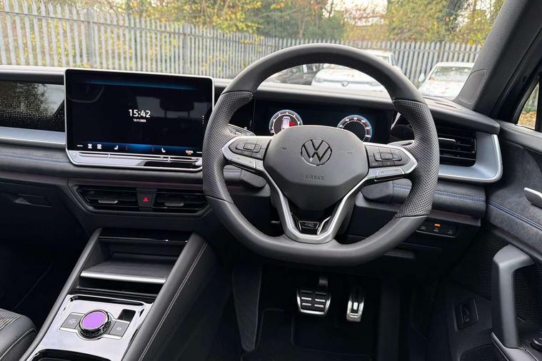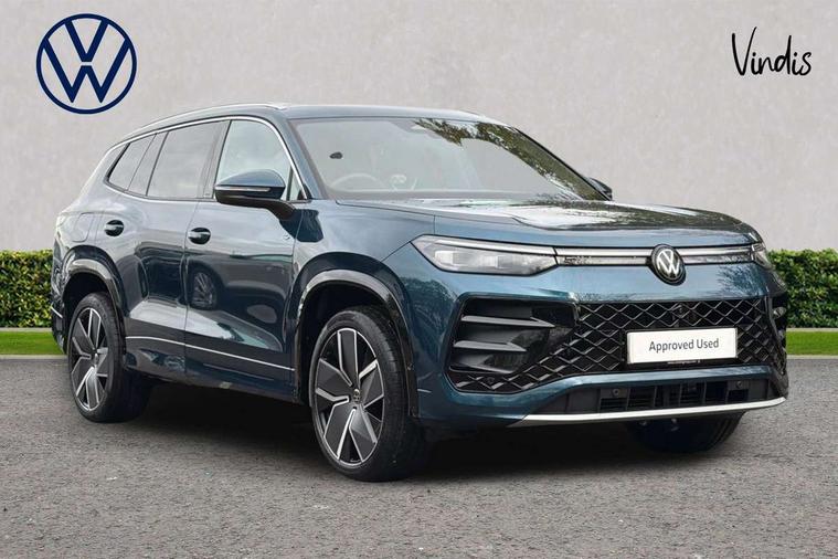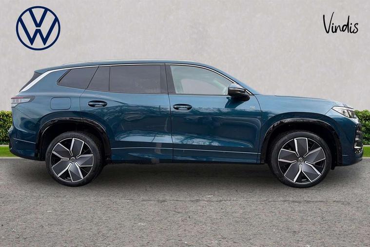 Adaptive cruise control (ACC), Digital Cockpit Pro - 10.25" high resolution dash display screen with customisable menus and information, Driver alert system, Driver attention monitoring system, Dynamic road sign display, E-Sim card for online connectivity, eCall emergency call system, Lane change system, Side assist, Rear traffic alert and Exit warning system, Multifunction front facing camera, Oncoming vehicle braking when turning including swerve support, Start/stop system with regenerative braking, Voice activation spoken voice commands for telephone and navigation system, Warning signal and warning light for front and rear seatbelts not fastened, Wireless App-Connect, All wheel drive - 4Motion, Digital radio reception (DAB), Diversity antenna for FM reception, Air intake with Chrome trim, Auto dimming interior rear view mirror, Automatic headlight control system, Body colour door handles, Chrome moldings on the side windows, Coming/leaving home lighting function, Dynamic headlight range control with dynamic cornering light, Exterior mirrors convex on the left and aspherical on the right, Heat insulating glass in side and rear windows, Illuminated Volkswagen logo rear with animation, Laminated safety glass winshield, heat insulating, LED 3rd brake light, LED separate signature day time running light, Puddle lights, Rain sensor windscreen wipers, Rear fog light on one side, reversing light on both sides, Rear side wing doors, Rear wiper, Reverse activated passenger's door mirror, Surround lighting with welcome light, Volkswagen logo in front, illuminated lighting animation with wake up/goodbye scenario and illuminated door handles, 10 colour interior ambient lighting, 12V outlet in center console rear and in luggage compartment, 3 rear headrests, 3 rear seat bench in 2nd row, backrest split folding with centre armrest and 2 seats in 3rd row of seats, Black roof lining, Brushed stainless steel pedals, Carpet mats, front and rear, Centre console with illuminated storage compartment with sliding cover and two drinks holders, Chrome elements on the mirror switch and power window switches and door pulls, Door and side trim panel insert in Art velour, Flat luggage compartment floor, Front centre armrest, Front scuff plates in aluminium, ISOFIX anchors for child seats on outer rear seats and front passenger seat compatible with i-Size, Mechanical rear seat release, Power adjustable lumbar support in front, Single front passenger seat, Sports comfort seats in front, Sun visors with illuminated vanity mirrors, 3 Point seat belts in front with pretensioners, 3 point seatbelts in outer rear with ECE label, Autonomous emergency braking front assist with pedestrian and cyclist monitoring, Driver and front passenger airbag with front passenger airbag deactivation, Electronic parking brake with auto hold, First aid kit with warning triangle and safety vest, Front and rear curtain airbags, Front and rear side airbags, Front centre airbag, Front disc brakes, Hill decent control, Hill start assist, Rear disc brakes, Two tone horn, Decorative material set R-Line, Interior door handle in matte chrome,
