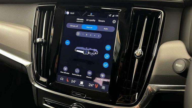 12.3" Progressive Driver Display, 360 degree surround view parking camera with side proximity sensors, 9" centre console touch screen, Adjustable steering wheel force, Apple CarPlay and Android Auto, Bluetooth handsfree system, Drive mode settings, Driver alert control with lane keeping aid, Driver assistance (pilot assist and adaptive cruise control), Driver awareness - Blind spot system + steer assist, cross traffic alert with autobrake, rear collision warning and mitigation, E-call, Emergency assist, Front and rear park assist, Google automotive services - Enabled entertainment apps, navigation with google maps, voice recognition with google assistant, Handsfree bootlid opening/closing, Intelligent speed assistance, Oncoming Lane Mitigation, Power operated tailgate/boot lid, Speed sensitive steering, Volvo on call app, 6m 3 phase 16amp Type 2 / mode 3 charge cable, 8 speed automatic transmission with start/stop + manual change functions, Dynamic chassis, Electric rear axle drive, Lithium-Ion Battery 18.8kWh, On board charger - 6.4 kW 2 phase/3.7kW single phase, Recharging port located in nearside front wing, DAB Radio (Digital Audio Broadcasting), Low speed exterior sound speaker, Premium Sound by Harman Kardon, dirac unison, dolby pro logic II surround sound, 13 speakers/600W output and fresh air subwoofer, Steering wheel remote infotainment controls, Adaptive brake lights with high level LED brake lights, Auto dimming interior + exterior mirrors, Automatic headlight levelling system, Automatic LED Headlights + Active high beam incorporating daytime running lights, Front and rear power windows, Heated windscreen, High gloss black door mirrors and window surround, High gloss black front and rear bumper decoratives, High gloss black mesh front grille and surround, Home safe and approach lighting, Integrated roof rails in high gloss black, Power heated autofolding door mirrors, Puddle lights, Rain sensor with automatic windscreen wiper activation, Rear LED lights with sequential indicators, Rear side wing doors, Rear wiper, Roof antenna, Roof spoiler, Variable front intermittent wipers, Visible VIN plate, 2 zone electronic climate control with Clean zone air quality system + pollen filter, 3 seat bench in 2nd row, 3 Spoke tailored steering wheel with chrome trim, Air purifier particulate matter (PM) 2.5 filter, Ambient door and instrument panel lighting, B Pillar ventilation, Boot lid/tailgate illumination, Bright metal luggage scuff plate, Cargo divider with grocery bag holder, Centre console cupholder and storage, Charcoal carpets and floor mats, Driver and front passenger seat power height adjustment, Extended front seat cushions, Front 12V socket tunnel console and cargo area, Front and rear cabin courtesy light, Front and rear door pocket lights, Front and rear footwell and side step illumination, Front and rear reading lights and centre armrest Storage Illumination, Front headrests, Glovebox compartment with illumination, Heated front seats, Heated rear seats outer positions, Heated steering wheel, Height/reach adjustable steering column, Illuminated luggage compartment, Illuminated recharge aluminium tread plates, Illuminated vanity mirrors + ticket holder, Illumination front tunnel storage, Inner door release handle illumination, Integrated sun curtains in rear doors, ISOFIX attachment on outer rear seats, Leather upholstery, Load cover, Load protection net, Luggage compartment load hooks, Memory function for drivers seat and exterior mirrors, Multi directional lumbar support, Power folding rear headrests, Rear armrest with cupholder, Single front passenger seat, Underfloor cargo storage, Versatile split folding rear seat - 60/40, 3x3 point rear seatbelts, Active bonnet, City safety with steering support with Pedestrian + cyclist + front collision warning with full auto brake and rear auto brake, Driver and front passenger airbags, Drivers knee airbag, Front seats SIPS airbags, Hill start assist, IC (Inflatable Curtains) - Full Length, Passenger airbag cut-off switch, Power child locks on rear doors, Power parking brake with auto hold function, Road sign information display, Run off Road Mitigation, Run off Road Protection, Seatbelt reminder and pretensioners for all seats, SIPS (Side Impact Protection System), Slippery road and hazard light alert, Stability and Traction Control with Spin control, Engine Drag Control and Corner Traction Control, Tyre pressure monitoring system, Vehicle deceleration control with Anti-lock Brake System, Electronic Brake Distribution and Emergency Brake Assist, Warning triangle and first aid kit, WHIPS whiplash protection system - front, 2x Key integrated remote control central locking + fuel flap with deadlocking system and auto open/close power windows, Anti-theft alarm including immobiliser/volume sensor + level sensor, Care key with user defined top speed, Keyless drive includes keyless entry and keyless start, Locking wheel nuts, Private locking for tailgate, Tailored Instrument Panel and Door Tops with Contrast Stitching, 19'' 8 spoke diamond cut black alloy wheels, Tyre sealant kit and compressor,