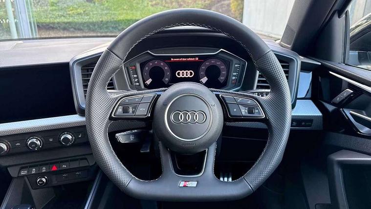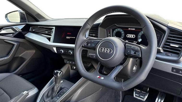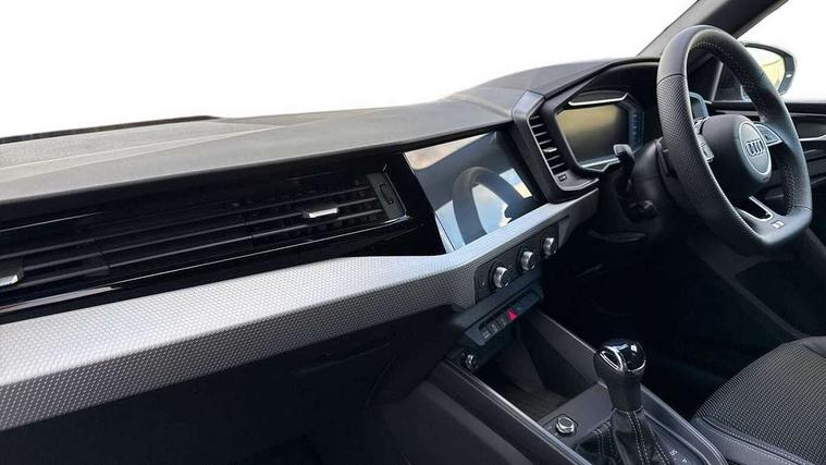 10.25" Digital instrument cluster display classis style instrument dials + speed, odometer, time, outside temperature, telephone menu + fuel level warning, Advanced driver attention and drowsiness monitor, Audi connect emergency call and service, Audi drive select, Audi remote connect and control, Bluetooth interface, Camera based traffic sign recognition, Cruise control, Driver's information system, Electromechanical power steering, Lane departure warning system, Rear parking sensor, Service interval indicator, Smartphone interface, Speed limiter, Start stop system with recuperation, Voice control system, Washer fluid level indicator, Sports suspension, 2 x USB type C connection points, 6 loudspeakers, DAB Digital radio, MMI radio plus with 10.1" colour MMI display screen and MMI touch, Auto dimming rear view mirror, Black door mirror housings, Black side skirts, Body coloured bumpers, Door sill trims with aluminium inlays and logo, Electric front and rear windows, Electrically adjustable, heated, folding door mirrors with integrated LED side indicator, Front side air inlets in grained matt black and C frame in anthracite black, Front wing badges, Headlight cleaning system, Heat insulating glass windscreen and side windows, Heated rear windscreen, High level LED brake light, LED daytime running lights, LED headlights with range control LED rear lights + dynamic rear indicators, Light and rain sensors, Privacy glass, Radiator grille and rear diffuser in matt anthracite black, Radiator protective grille frame in matt aluminium silver, Rear fog lights, Rear side wing doors, Rear wiper, Side front spoiler lips in grained matt black, 12V socket in centre console with two cup holders, 3 rear seats with headrests, 3 seat bench in 2nd row, 3 spoke flat bottomed multi-function plus leather steering wheel with S badging, grips in preforated leather, contrast stitching and paddle shift, 40:60 Split folding rear seat or fully collapsed, Black carpets, Black cloth headlining, Front and rear velour black floor mats with contrast stitching in fine silver, Front head restraints, Front passenger seat, Height and reach adjustable steering wheel, Interior lighting includes roof module, front and rear reading lights and right luggage compartment lighting, ISOFIX child seat mounting for front passenger and outer rear seats including top tether attachment point of outer rear seats, Leather gear knob with aluminium trim, Leather handbrake grip, Manual air conditioning, Manual height adjustable for driver and front passenger seat, Manually adjustable lumbar support in front seats, Stainless steel pedals, Ambient lighting package - A1, Black styling pack - A1 Sportback Black Edition, Luggage compartment pack - A1, 3x3 point rear seatbelts, Audi pre-sense front with pedestrain and cyclist recognition, Brake assist function, Driver and front passenger airbag with front side and head airbags, Electronic Stability Control including ABS, EBD, ASR and EDL, Front passenger airbag deactivation switch, Hill hold assist, Manual rear child locks, Seatbelt height adjustment for front seats, Seatbelt monitoring, Tyre pressure loss indicator, Warning triangle and first aid kit, Anti theft alarm, Anti theft wheel bolts, Immobiliser, Remote control key with safelock, Aluminium trim for control switches, air vents and digital instrument cluster, Black dashboard, Silver grey inlays polygon structure in diamond paint finish, Structured grey accent surfaces insert of air vents, interior door handle recesses and centre console in quartz paint finish,