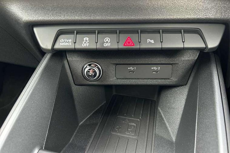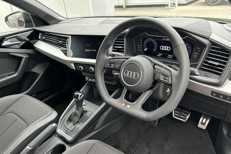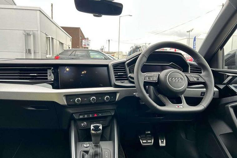 10.25" Digital instrument cluster display classis style instrument dials + speed, odometer, time, outside temperature, telephone menu + fuel level warning, Advanced driver attention and drowsiness monitor, Audi connect emergency call and service, Audi drive select, Audi remote connect and control, Bluetooth interface, Camera based traffic sign recognition, Cruise control, Driver's information system, Electromechanical power steering, Lane departure warning system, Rear parking sensor, Service interval indicator, Smartphone interface, Speed limiter, Start stop system with recuperation, Voice control system, Washer fluid level indicator, Sports suspension, 2 x USB type C connection points, 6 loudspeakers, DAB Digital radio, MMI radio plus with 10.1" colour MMI display screen and MMI touch, Auto dimming rear view mirror, Black door mirror housings, Black side skirts, Body coloured bumpers, Door sill trims with aluminium inlays and logo, Electric front and rear windows, Electrically adjustable, heated, folding door mirrors with integrated LED side indicator, Front side air inlets in grained matt black and C frame in anthracite black, Front wing badges, Headlight cleaning system, Heat insulating glass windscreen and side windows, Heated rear windscreen, High level LED brake light, LED daytime running lights, LED headlights with range control LED rear lights + dynamic rear indicators, Light and rain sensors, Privacy glass, Radiator grille and rear diffuser in matt anthracite black, Radiator protective grille frame in matt aluminium silver, Rear fog lights, Rear side wing doors, Rear wiper, Side front spoiler lips in grained matt black, 12V socket in centre console with two cup holders, 3 rear seats with headrests, 3 seat bench in 2nd row, 3 spoke flat bottomed multi-function plus leather steering wheel with S badging, grips in preforated leather, contrast stitching and paddle shift, 40:60 Split folding rear seat or fully collapsed, Black carpets, Black cloth headlining, Front and rear velour black floor mats with contrast stitching in fine silver, Front head restraints, Front passenger seat, Height and reach adjustable steering wheel, Interior lighting includes roof module, front and rear reading lights and right luggage compartment lighting, ISOFIX child seat mounting for front passenger and outer rear seats including top tether attachment point of outer rear seats, Leather gear knob with aluminium trim, Leather handbrake grip, Manual air conditioning, Manual height adjustable for driver and front passenger seat, Manually adjustable lumbar support in front seats, Stainless steel pedals, Ambient lighting package - A1, Black styling pack - A1 Sportback Black Edition, Luggage compartment pack - A1, 3x3 point rear seatbelts, Audi pre-sense front with pedestrain and cyclist recognition, Brake assist function, Driver and front passenger airbag with front side and head airbags, Electronic Stability Control including ABS, EBD, ASR and EDL, Front passenger airbag deactivation switch, Hill hold assist, Manual rear child locks, Seatbelt height adjustment for front seats, Seatbelt monitoring, Tyre pressure loss indicator, Warning triangle and first aid kit, Anti theft alarm, Anti theft wheel bolts, Immobiliser, Remote control key with safelock, Aluminium trim for control switches, air vents and digital instrument cluster, Black dashboard, Silver grey inlays polygon structure in diamond paint finish, Structured grey accent surfaces insert of air vents, interior door handle recesses and centre console in quartz paint finish,