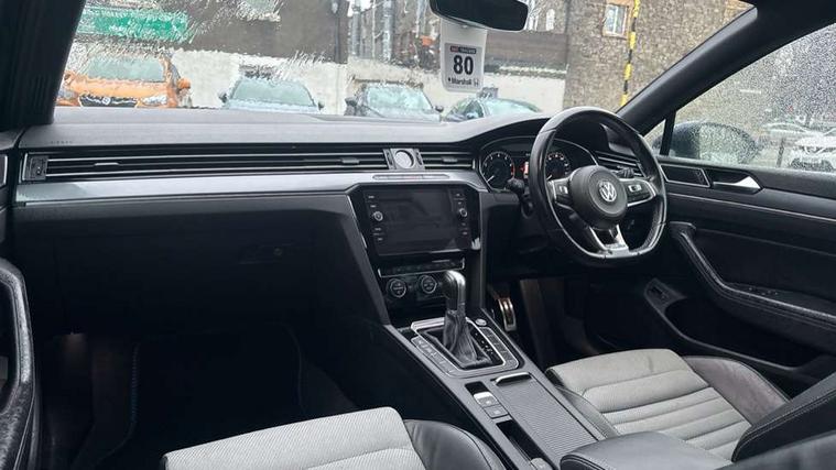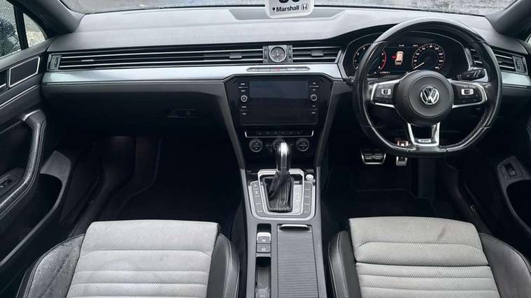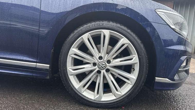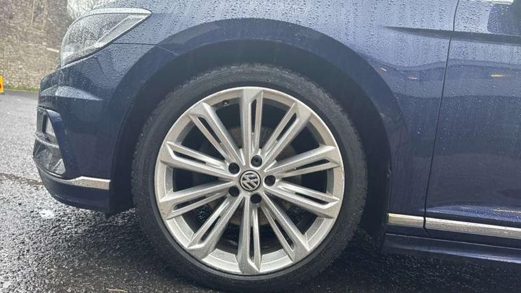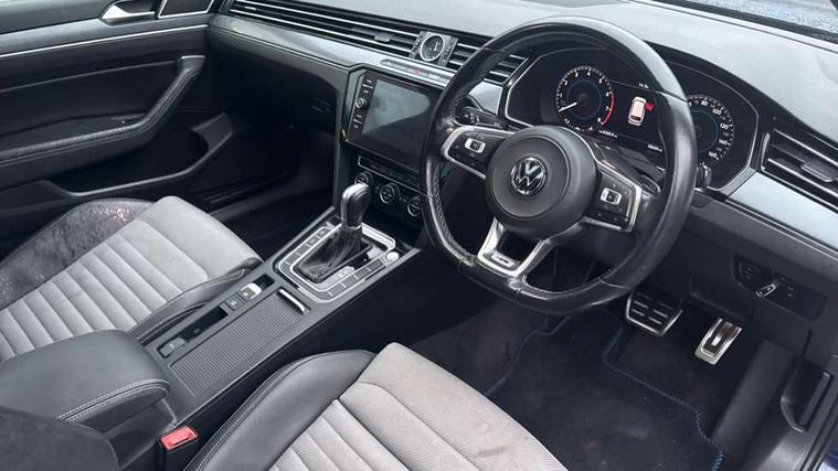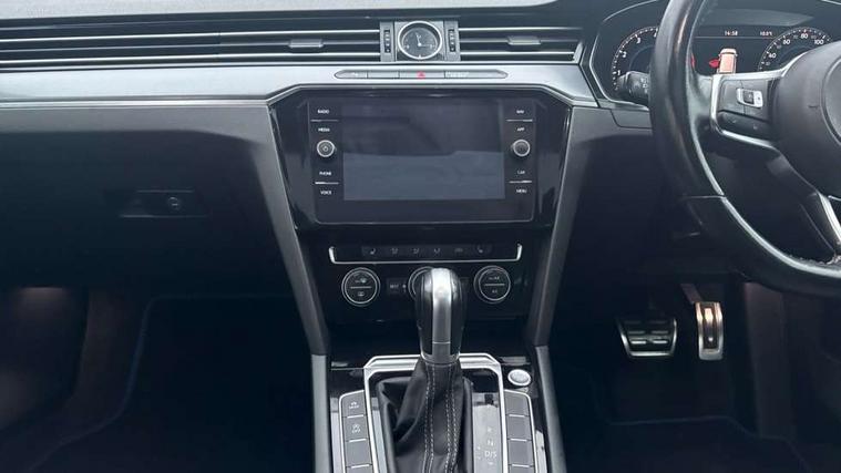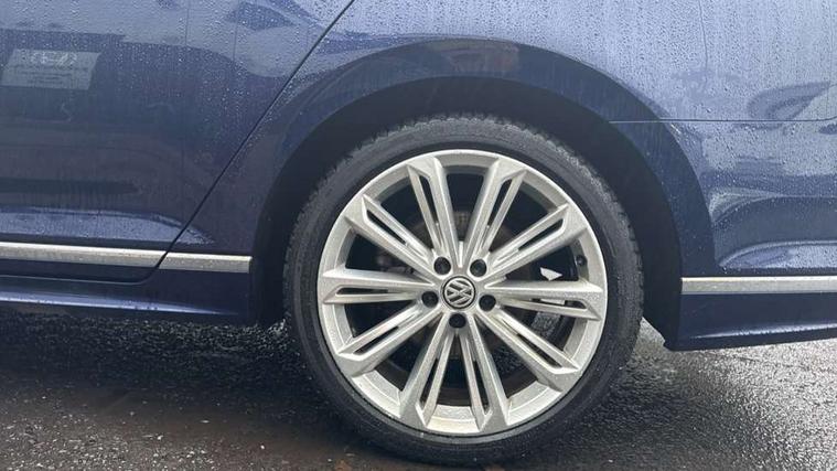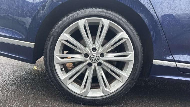 Adaptive cruise control, Analogue clock, App-Connect, Door/tailgate open warning lights, Driver alert system, Driver profile selection, Exterior temperature gauge with frost alarm, Information display, Low washer fluid warning light, Multifunction computer, Remote fuel flap release, Remote tailgate release, Rev counter with fuel gauge, Service interval indicator, Speed limiter, Warning buzzer and light for front seatbelts unfastened, Dynamic chassis control, XDS electronic differential lock, Auxiliary socket for external device, Composition media system with Radio/CD/MP3, DAB Digital radio, MDI with USB/iPod connection cables, SD card slot, Auto dimming driver's door mirror, Auto dimming rear view mirror, Automatic activation of hazard warning lights, Automatic coming/leaving home lighting function, Automatic headlights with dusk sensor, Body colour bumpers, Body colour door handles, Body coloured door mirrors, Chrome fog light surround, Chrome louvres in grille, Chrome side sills, Chrome side window surrounds, Chrome surround for air intake, Electric front windows, Electric panoramic sunroof with sunblind, Electric rear windows, Electrically adjustable and heated door mirrors, Front fog lights with static cornering function, Fully galvanised body, Gloss black finish on B pillar, Headlight range control, Headlight washers, Heated rear window, LED premium headlights with dynamic curve and LED daytime running lights, LED rear lights, LED rear number plate lights, Load sill protection, R Line body kit, Rain sensor, Rear wiper, Reverse activated kerb-view adjustment on passenger's door mirror, Silver roof rails, Trailer stability assist, Twin Trapezoidal tailpipes, Windscreen wipers/ intermittent wipe + 4 position delay, 12V Accessory socket in centre console, 12V socket in luggage compartment, 3 rear head restraints, 3 spoke multifunction leather steering wheel including paddle shift, 3 Zone electronic climate control with automatic air recirculation, 4 boot load lashing points, 40:20:40 split folding rear bench seat, Black roof lining, Driver's cushion tilt adjust, Entry lights on doors, Front + rear carpet mats, Front and rear interior lighting with delay and dimming function, Front centre armrest with storage compartment, Front comfort seats, Front cupholders x2 with covers, Front door pocket bottle holders, Height adjustable head restraints, Height/reach adjust steering wheel, Leather gearknob, Load through provision, Lockable, illuminated, cooled glovebox, Luggage compartment cover, removable, Luggage compartment lighting, Rear centre armrest with cupholder and storage, Stainless steel pedals, Storage compartment in driver's door, Storage compartment in passenger's door, Storage compartment in rear doors, Storage compartment in roof console, Storage pockets in backrests of front seats, Sunvisors with illuminated vanity mirrors, Variable boot floor, Winter pack - Passat - heated front seats, 3 rear 3 point seatbelts, ABS, brake assist and EBD, Automatic post collision braking, Curtain airbags, Door open warning reflectors, Driver/Front Passenger airbags, Driver/Front passenger WOKS head restraints, Drivers knee airbag, Electronic parking brake with auto hold, ESP with EDL + ASR, First aid kit, Front assist including city emergency braking, Front side airbags, Height adjustable front 3 point seatbelts + pretensioners, Hill hold function, Passenger airbag deactivation system, Pre crash system, Rear seatbelt warning indicator, Rear side airbags, Warning triangle, Alarm with interior protection, Electronic engine immobiliser, Keyless Start, Remote central locking with 2 remote folding keys, Brushed aluminium interior trim, Chrome air vent and instrument surround, Piano black centre console, White instrument dials,