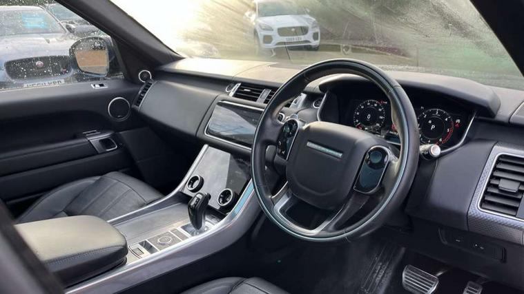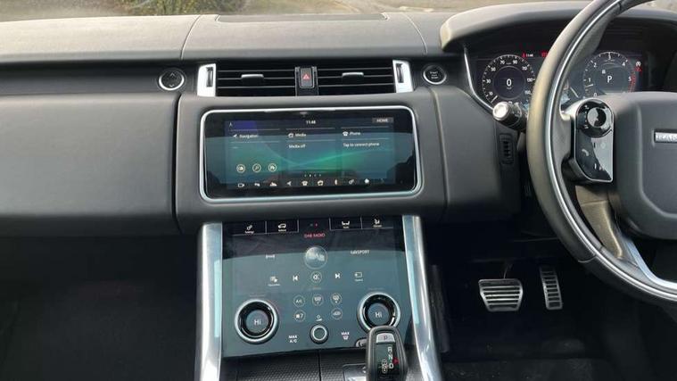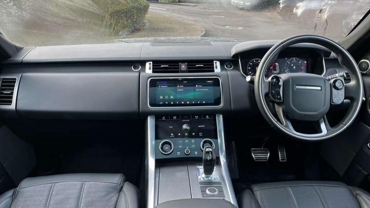 Bluetooth telephone connection, Dynamic response, Front parking aid with visual display, Gesture tailgate, InControl secure, Mist sensor, Navigation pro system with 10" touch screen, app interface and media storage, Push button starter, Rear park distance control, Speed sensitive power steering, TFT Virtual Instrument Panel, Trip computer, Adaptive dynamics, All terrain progress control, Electronic air suspension, Terrain Response 2 with dynamic program, Twin speed transfer box, Bluetooth audio streaming, DAB Digital radio, InControl protect, USB/aux input socket, Adaptive brake lights, Auto dimming rear view mirror, Body coloured side sills and bumpers, Daytime running lights, Door/quarter lights in toughened plate glass, Electric front/rear windows/one touch operation, Electric heated, adjustable, folding door mirrors with memory + approach lamp, Follow me home headlights, Front fog lights, Heated rear window, Heated washer jets, Heated windscreen, Laminated front side windows, Laminated windscreen, LED rear lamps, Rear wash/wipe, Remote window closing, Trailer stability assist, Twin bright tailpipes, 2 way active front head restraints, 2 way rear head restraints, Auto air recirculation, Bright metal foot pedals, Climate control memory, Driver's footrest, Front and rear cupholders, Front door storage bin, Front map lights, Front seat back map pockets, Front stowage pocket, Front/rear passenger grab handles, Glovebox, Isofix child seat preparation, Leather steering wheel with chrome inserts, Luggage compartment lighting, Multifunction steering wheel, Pollen filter, Reach/rake electric adjustable steering column + entry/exit tilt away, Rear centre armrest, Roller blind loadspace cover, Satin chrome gearshift paddles, Sports pedals, Three 12V accessory power outlets, Extended leather pack - Range Rover Sport, InControl connect Pack - Range Rover Sport, 3 point seatbelts on all seats, ABS + EBD + EBA, Auto lock system when vehicle in motion, Auto locking differential, Cornering brake control (CBC), Curtain airbags, DSC - Dynamic Stability Control, Dual stage driver/passenger airbags, Electric child locks, Electronic parking brake, Electronic traction control, Front seatbelt pretensioners, Front side airbags, Height adjustable front seatbelts, Hill descent control, Low traction launch, Roll stability control, Seatbelt warning, Torque vectoring brake, Tyre pressure monitoring system, Immobiliser, Keyless entry, Locking wheel nuts, Perimetric and volumetric anti theft alarm, Remote locking,