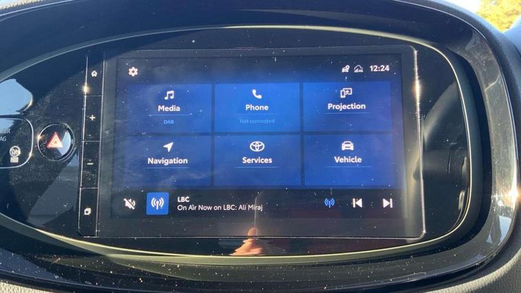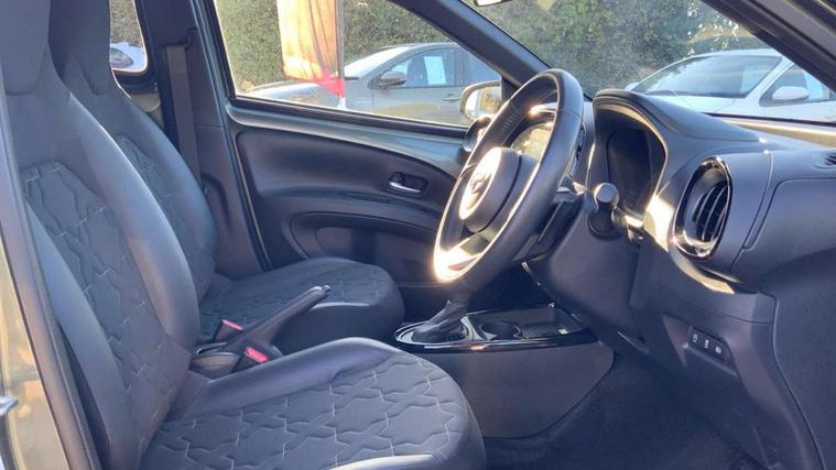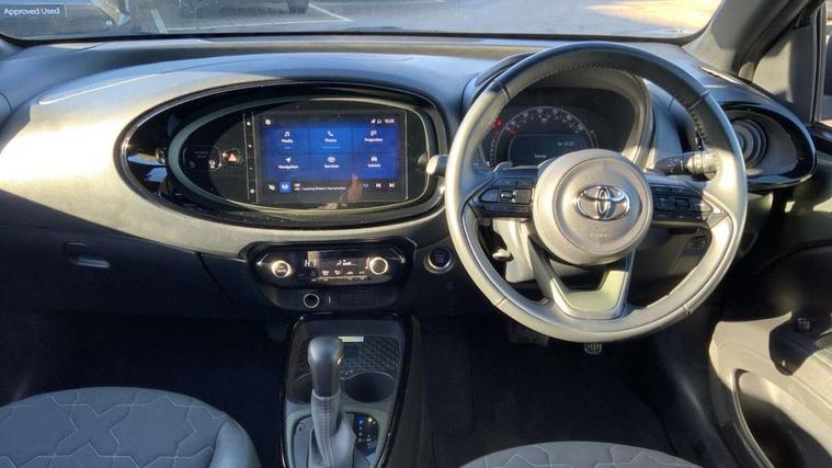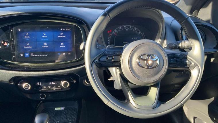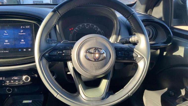 4.2" TFT colour screen, Adjustable speed limiter, Analogue speedometer, Bluetooth connectivity, Digital tachograph, Driver attention alert system, eCall emergency call system, ECO-driving indicator, Electric power steering, Front and rear parking sensors with auto brake, Intersection turn assist, Key reminder warning, Noise reduction kit, Pre collision system with emergency steering assist, Remote boot door release on key, Reversing camera with static guide lines, Smart entry and push button start, Speed limit display, Start and stop, Wireless charger, Wireless Smartphone Integration includes Apple CarPlay and Android auto, Vehicle Stability Control (VSC), 4 speakers, 9" HD multimedia display touch screen with Toyota smart connect, DAB digital audio broadcast, USB connector, Auto headlights, Auto wipers, Automatic headlights cut-off, Automatic high beam On/Off switch, Bicycle towing hook, Black fog light surrounds, Black side protection mouldings, Black wheel arch mouldings, Body colour door handles, Body coloured front bumper, Boot door scuff plate, Eclipse black rear bumper, Electric heated door mirrors, Follow me home headlights, Front and rear underruns in silver, Front fog lights, Front power windows, Gloss black door mirrors, Gloss black upper front grille, Headlight cut-off reminder, LED daytime running lights guide, LED front light guide, LED High mounted stop lamp, LED projector headlights, Manual day/night rear view mirror, Manual headlight levelling, Pagoda roof, Power adjustable door mirrors, Privacy glass, Rain sensor, Rear combination lights LED bulb type, Rear side wing doors, Rear windscreen defogger, Rear windscreen wiper, Remote hazard lights system, Short antenna, Variable intermittent windscreen wipers, 12v power outlet - front, 2 seat bench in 2nd row, 3 spoke leather steering wheel, 50/50 split folding rear seat, Adhesive roof headlining, Adjustable speed limiter switch on steering wheel, Audio and telephone switches on steering wheel, Auto air conditioning, Black roof lining, Body colour satin anodised insert on steering wheel, Boot light, Centre room light, Chrome interior door handles, Chrome surround on air conditioning buttons, Clean air filter, Floor mats, Front and rear cup holders, Front head rest deco art, Front head restraints, Gear shift indicator, Height adjustable driver seat, Intelligent adaptive cruise control switch on steering wheel, ISOFIX child restraint system on rear seats, Lane departure alert switch on steering wheel, Leather gearshift knob, Light blue ambient lighting in centre console, Manual tilt steering wheel, Manually reclining and sliding driver seat, Manually reclining and sliding front passenger seat, Multimedia switches on steering wheel, Paddle shift levers on steering wheel, Partial synthetic leather upholstery, Pollen filter, Rear door pockets, Rear head restraints, Remote air-conditioning system, Satin silver insert on gear shift knob, Single compartment glovebox with lights, Single front passenger seat, Soft tonneau cover, Sun visors with mirror on driver and passenger side, Voice recognition switch on steering wheel, Toyota safety sense pack - Aygo X, Anti lock braking system + Electronic brake force distribution, Child safety door lock, Emergency brake light signal (EBS), Hill start assist control (HAC), Passenger airbag on/off switch, Seat belt reminder for front and rear seats, Supplement restraints system (SRS) - 6 airbags, Traction control, Tyre pressure warning system, Immobiliser, Remote power door locks, Black wheel centre caps, Tyre repair kit,
