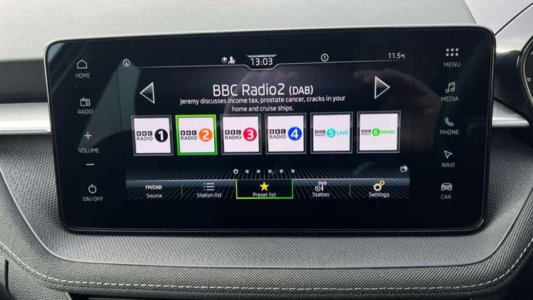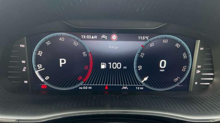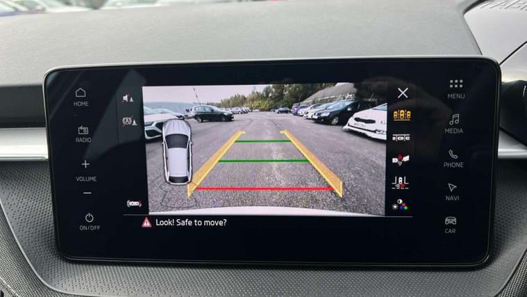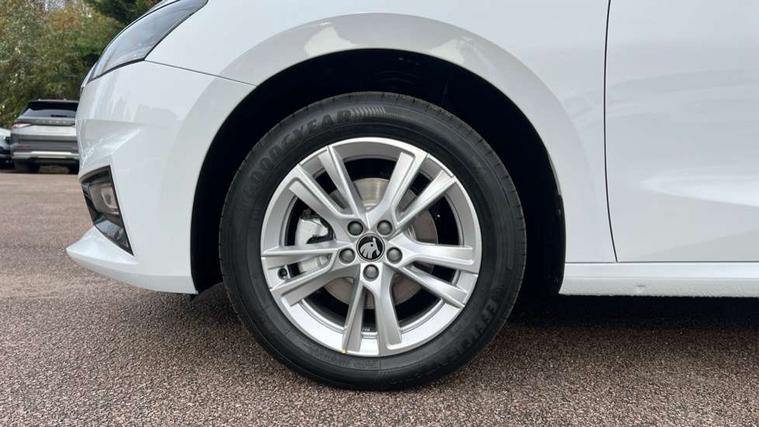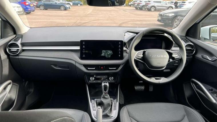 Advanced driver attention and drowsiness monitor, Bluetooth connection, Driver alert system, Electromechanical power steering, Exterior temperature gauge, Service interval indicator, Traffic sign recognition, Virtual cockpit with 10.25" colour display, Wireless SmartLink for Apple CarPlay and Android Auto, 6 Speakers (4 in front and 2 in rear), 9.2" colour display skoda navigation system with voice control and web radio, Auxiliary socket for external MP3 player, DAB digital radio reception, Auto dimming rear view mirror, Body colour door mirrors, Body coloured bumpers, Chrome window surround, Door mirror integrated indicators, Front and rear electric windows, Front window wiper intermittent control, Headlight range control - Automatic, Ice scraper in fuel cap, LED 3rd brake light, LED daytime running lights with coming and leaving home feature, LED rear lights, Privacy glass, Rear LED fog light, Rear side wing doors, Rear window wiper with washing nozzles, Roof mounted spoiler, SKODA tailgate lettering in chrome, Unique dark chrome design logo on alloy wheels, 2 LED reading lights in front and rear, 3 rear headrests, Backrest split and folding, Central console with fixed cup holder and storage box, Chrome handbrake release button, Comfort seats, Door sills with fabia badging, Dual zone air conditioning with climatronic electronic control, Fabric upholstery, Front centre armrest, Gearshift knob/handle in leather, Grain satin black interior door handles, Hand brake lever handle in leather, Height adjustable front headrests, Height adjustable front seats, Height adjustable steering wheel, ISOFIX and TopTether anchorage points to the outer rear seats, ISOFIX and TopTether on the front passenger seat, Luggage compartment lighting, Manually adjustable lumbar support in front seats, Pollen filter, Rear seat bench unsplit, Single front passenger seat, Skoda lettering on steering wheel, Storm grey headlining, Sun visors with mirror and airbag label on passenger side, Textile floor mats, Ticket holder, Ambient lighting pack - Fabia Hatchback, 3-point height adjustable front seats belts with pretensioner and force limiter, Automatic warning lights in case of crash, Driver and passengers airbag with switch off function, e-Call+, ESC including ABS, MSR, ASR, EDS, HBA and XDS, Front and rear seat belt warning, FRONT ASSIST (AEB City and AEB Inter Urban), Front side airbags, Head airbags, Hill hold control, One tone horn, Pedestrian protection, Three rear 3-points safety seat belts with pretensioner and force limiter including stop function for outer rear seat belts, Tyre pressure monitoring system, Anti-theft alarm system including immobiliser, interior monitoring, backup horn, and towing protection, Central locking with radio remote control, interior controls, SAFE function and 2 foldable keys, Chrome edged air vents, Grain satin black central console cover, Metallic grey upper decorative trim, Satin black door and side trim panel in front, Textile microsuede grey lower decorative trim with art grey stitching, Anti-theft wheel bolts protection, Super-low rolling resistance tyres,