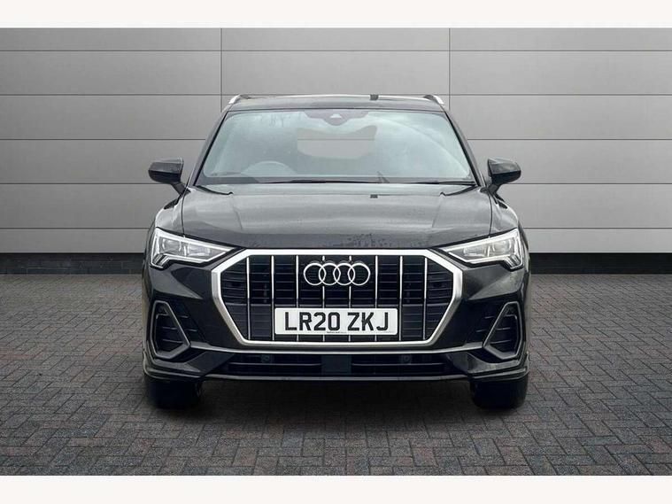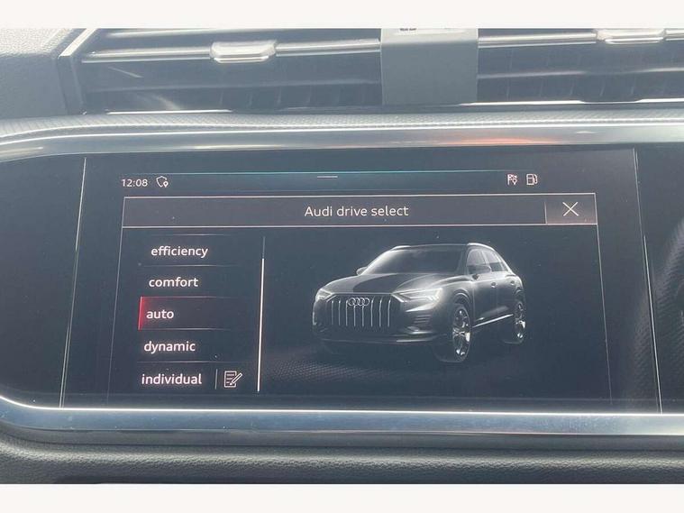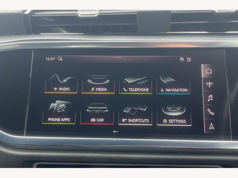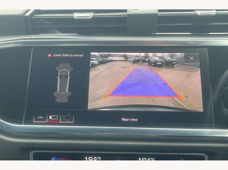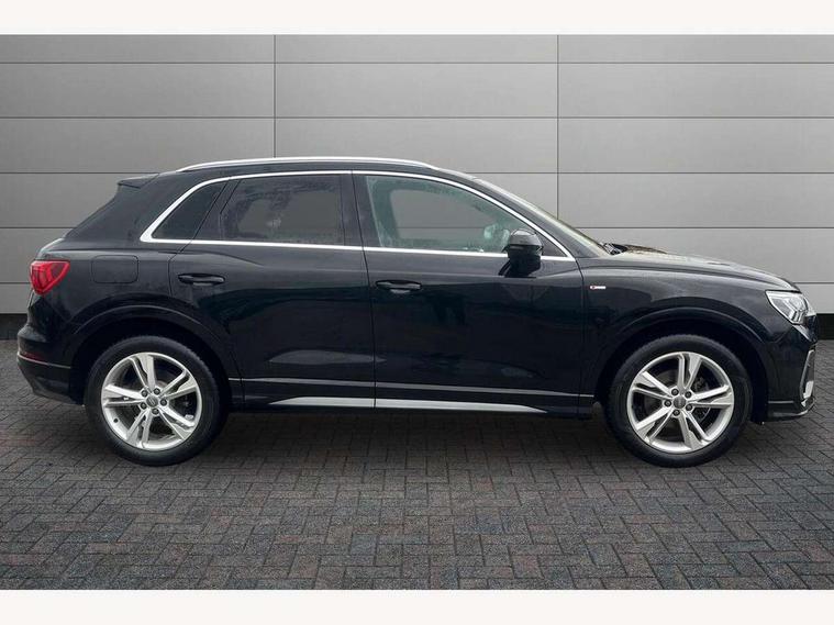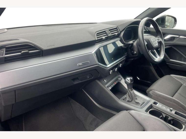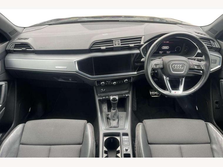 Audi connect safety and service (e-call), Audi drive select, Audi lane departure warning, Audi side assist, Audi smartphone interface includes wireless Apple carplay/Android Auto, Audi Virtual Cockpit - 10.25" display, Bluetooth interface, Camera based traffic sign recognition, MMI Navigation Plus with high resolution 10.1 inch touchscreen colour display, Power operated tailgate, Progressive steering, Service interval indicator, Start stop system with recuperation, Voice control system with natural language interaction, 48V Mild hybrid technology, Sports suspension, 1 x USB type C and 1 USB type A charging points, 6 passive loudspeakers, DAB digital radio module, Acoustic windscreen, Aluminium roof rails, Aluminium window trim, Auto dimming frameless rear view mirror, Body coloured bumpers, Electrically folding, adjustable and heated door mirrors with integrated LED side indicators and kerb view function for passenger side, Front and rear electric windows, Front fog lights, Front side air inlets in matt platinum grey, Front spoiler blade in matt platinum grey, Grille vertical bars in aluminium silver/Matt, High gloss black finish B and C pillars, LED headlights with LED daytime running lights and dynamic rear indicator, LED rear lights, Privacy glass dark tinted rear and rear-side windows (from B-pillar backwards), Rain and light sensors, Rear diffuser strip in matt titanium black, S line badges on front wings, S Line front and rear bumpers, Side skirt insert in matt Platinium grey, Silver chrome grille surround, Titanium black radiator grille, 12V socket in rear centre console, 40:20:40 folding with manual adjustment for 60:40 forwards/backwards position and backrest angle, Adjustable rear seat bench/backrest with centre armrest and cupholder, Black cloth headlining, Dual zone electronic climate control, Front and rear black floor mats with contrast stitching in rock grey, Front and rear headrests, Front and rear roof module including reading lights, Front centre armrest, Glove compartment lighting, Height and reach adjustable steering wheel, Illuminated door sill trims with S logo, ISOFIX child seat mounting for front passenger with airbag deactivation and outer rear seat including top tether attachment point for outer rear seats, Luggage compartment light, Manual front seats with height adjustment, Perforated leather gearknob, Stainless steel luggage compartment sill finisher, Stainless steel pedals, Tool kit, Non smoking pack - Q3, 3x3 point rear seatbelts, 6 airbags - Driver, front passenger, curtain and side windows, Electrically operated child locks on rear doors, Electromechanical parking brake, Electronic stabilisation control including ABS, ASR and EDL, Hill descent control, Hill hold assist, Pre sense basic, Seatbelt monitoring, Tyre pressure warning, Warning triangle and first aid kit, Anti theft alarm, Anti theft wheel bolts, Audi pre-sense front with pedestrain and cyclist recognition, Remote central locking, Dark matt brushed aluminium inlay, Leatherette door armrest, MMI touch colour display in glass look, black with surround in aluminium look, Tyre repair kit,