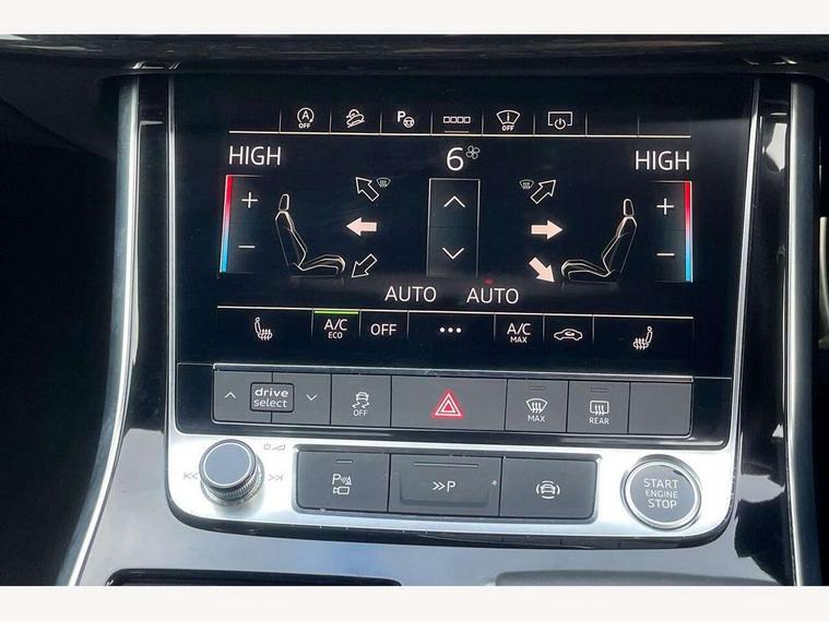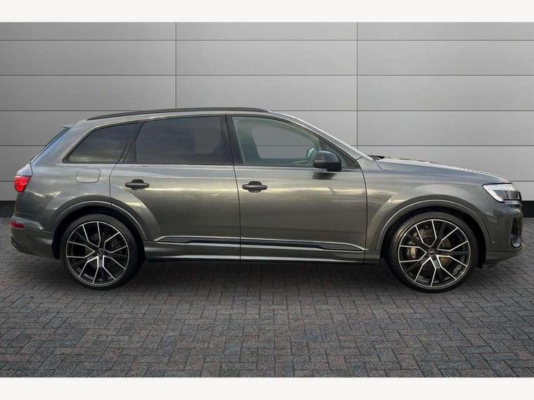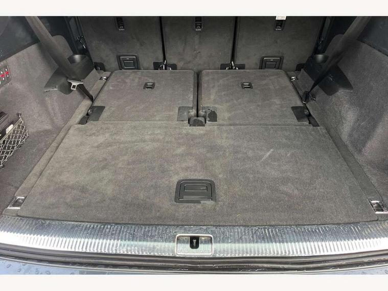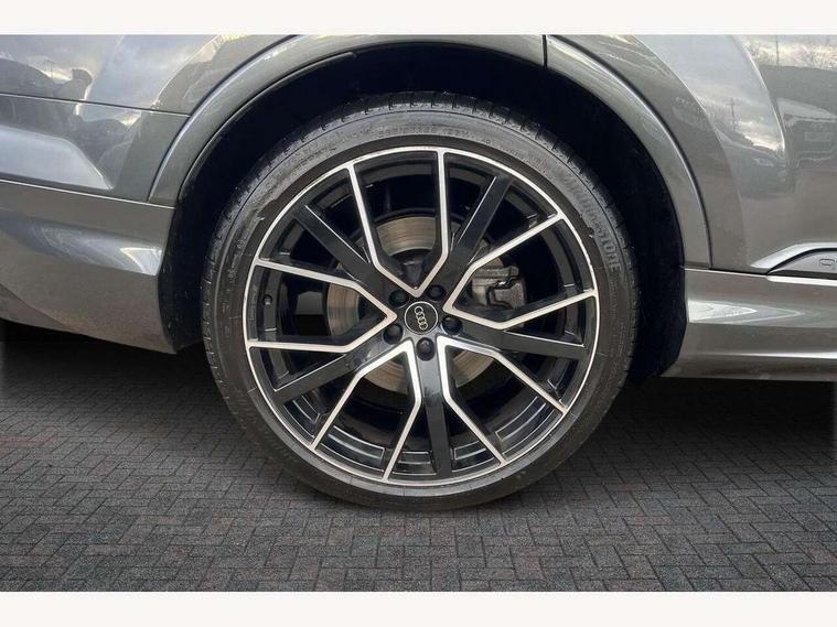 Audi connect safety and service (e-call), Audi connect with Amazon Alexa Integration, Audi drive select (Auto, Comfort, Dynamic, Efficiency, Individual, Off-road and All road), Audi phone box light with wireless charging, Audi virtual cockpit - 12.3" high-resolution LCD display with fully customisable instrument cluster, Bluetooth interface, Camera based traffic sign recognition, Electromechanical power steering, MMI navigation plus with MMI touch screens includes 10.1" and 8.6" screens with haptic feedback, Natural voice recognition, Operating buttons in Matte black, Parking system plus with 360 degree display (front, rear and side sensors) - acoustic and visual park assist system, Power operated tailgate, Rear view camera, Smartphone interface includes wireless Apple carplay/Android Auto, Start/stop system, 48V Mild hybrid technology, Adaptive air sports suspension, Quattro all wheel drive with self locking centre differential, Audi music interface - front 2 USB-C ports with charger and data functions, Audi sound system with 6 channel amplifier, 180 watt amplifying capacity and 10 loudspeakers including subwoofer, DAB digital radio module, Audi Beam uses LEDs to project S emblem with red rhombus onto the ground when opening the side doors (front/rear), Auto dimming frameless rear view mirror, Black exhausts, Black roof rails, Electrically adj heated/folding + automatically dimming exterior mirrors with memory + automatic kerb side function for passenger side exterior mirror, Heat insulating glass in windshield, Integrated LED indications in door mirrors, LED 3rd brake light, LED daytime running lights, LED rear tail lights, Loading edge protection in stainless steel, Matrix LED headlights with dynamic front and rear indicators, Privacy glass - dark tinted rear and rear side windows from B-pillar backwards, Rear side wing doors, Rear wiper, 2 seat bench in 3rd row, 2 zone automatic climate control, 3 seat bench in 2nd row, 7 seat layout with ISOFIX points for the front passenger seat and rear passenger seat, Black cloth headlining, Comfort front centre armrest, Electric adjustable front seat with 4 way lumbar support, driver memory functionality, Folding rear seats, Front head restraints, Front/rear floor mats, Heated front seats, Illuminated door sill trims with S logo, ISOFIX child seat mounting for front passenger seat and 2 outer rear seats with top tether child seat mounting for all 3 rear seats, LED interior ambient lighting, Luggage compartment cover, Luggage compartment sill protection in stainless steel, Rear head restraints, Single front passenger seat, Stainless steel pedals, Sunvisors with illuminated vanity mirrors, Black styling pack plus - Q7, 3 point seatbelts on all rear seats, Audi pre sense front, Child locks on rear doors, Convenience key with safelock and gesture tailgate, Driver and front passenger, front side and curtain airbags, Electromechanical parking brake, Electronic Stabilisation Control (ESC) including ABS, ASR and EDL, Extended pedestrian protection measures, Hill hold assist, Seatbelt reminder, Tyre pressure loss indicator, Warning triangle and first aid kit, Anti theft alarm with tow away protection, Anti-theft wheel bolts and wheel loosening detection, Keyless Go, Remote central locking, Polished oak trim with grey finish inlay, Tool kit, Tyre repair kit,