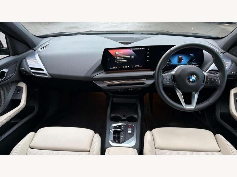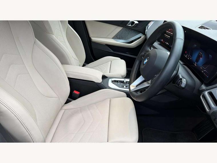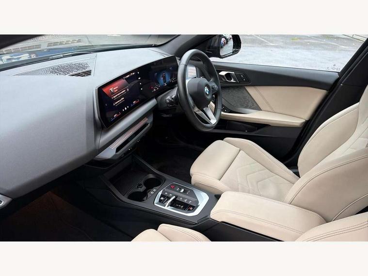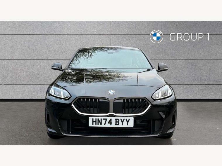 Active guard plus, Attentiveness assist, Bluetooth / WiFi interface for wireless connection of mobile terminal devices and audio streaming, BMW ConnectedDrive online services, BMW Live cockpit plus, BMW Teleservices, Check Control warning system for monitoring of lights and door/luggage compartment open warning, Eco pro mode, Electric power steering with Servotronic steering optimised at all speed ranges, Front and rear parking sensors, Front axle single joint with specific axle kinematics to minimise drive influences on steering + provide increased rigidity agile driving behaviour, Integrated owners handbook, Oil sensor for level and grade, On board computer, Optimum shift indicator, Park assist including reversing assistant, lateral parking aid and reversing assist camera, Personal Profile, Pull away assistant, Rigidly mounted rear subframe - Multi link construction with separate spring / damper configuration and excellent driving characteristics, Speed limit Info including no-overtaking indicator, Speedometer, 49 litre fuel tank, Aluminium lightweight construction, Anti roll bar front and rear, Balancer shaft, Double VANOS twin scroll turbocharging system, Drive Performance Control, Electronic differential lock, High precision injection, Petrol Particulate Filter, Suspension with twin tube gas filled shock absorbers with degressive characteristic curve, VALVETRONIC engine management, DAB Digital radio, Auto dimming rear view mirror, Automatic windscreen wipers and automatic headlight, Body colour door handles, Body colour mirror caps, Body colour roof trims, Chrome exhaust twin tailpipes round 90mm in left, Direction indicator side lights in exterior mirrors, Electrically adjustable exterior mirror with mirror adjustment switch on drivers armrest and aspheric on driver side, convex on passenger side, Fading support, Follow me home headlights, Front and rear bumper system with replaceable deformation elements, Front and rear electric windows with open and close fingertip control, anti trap facility and comfort closing, Front bumper in Body colour with exclusive Sport air inlets finished in High gloss Black, Front door sill finishers in black plastic with BMW designation in metallic look, Green tinted heat protection glazing, High gloss shadowline window frame, Recess cover mirror frames and B/C pillar embelisher trim, High level third brake light, Integrated front windscreen with washer jets, Kidney grille in chrome frame with highgloss black struts, LED daytime running lights, LED eyebrow turn indicators, LED front fog lights, LED Headlights, Lightweight engineering, Manual headlight beam throw control, Manual headlight levelling, Matt black air guide grilles, Matt black wheel arch trim, Nearside reverse light in rear light cluster, Preparation for high beam assistant, Rear bumper in Body colour with exclusive Sport design elements finished in High gloss Black, Rear fog lights, Rear side wing doors, Rear window wiper, Shark fin antenna, Trailer stabilisation logic, Visible VIN plate, Welcome lighting, 12V power socket in front centre console with blanking plug, 3 rear seat head restraints, 3 seat bench in 2nd row, 3 spoke sports leather steering wheel in black leather with black stitching and decorative finisher in pearl chrome, Black boot net with lashing eyes, Cargo function on 2nd seat row, Child seat ISOFIX attachment for two outer rear seats and front passenger seat with anchorage points, Conditioned based service, Driver and front passenger backrest net on rear, Driver side folding compartment in instrument panel, Folding rear clothes hook, Four grab handles integrated in roof lining, Front and rear door pockets with bottle holders, Front and rear side armrest integrated into door trim, Front armrest, Glove compartment, Height adjustable front head restraints, Luggage compartment for bag hooks on left and right, foldable luggage compartment liner and four lashing eyelets, Manual adjust steering wheel, Multi-function controls for steering wheel, Rear seat backrest with manual 60:40 split folding with 3 top tether clips integrated on rear of seat panels, Single front passenger seat, Storage compartment in centre console, Storage compartment in luggage compartment, Stowage of the parcel shelf in luggage compartment trim, Sun visors with vanity mirrors and insert tab, Two front centre console cupholders, Type C two USB ports in rear centre console, Velour floor mats, Connected pack professional - 1 Series, Interior lights pack - 1 Series, 2 tone horn, 3 point seatbelts on all seats, front pyrotechnic belt tensioners, stopper and belt force limiters, rear coded belt buckles, Airbags - Front driver/passenger, front and rear curtain head protection, front side, manual deactivation of front passenger airbag, Anti lock braking system (ABS) with brake assist, BMW emergency call, Brake drying, Braking readiness, Child proof locking system in rear door, Comfort modes, Cornering brake control, Crash sensor activating of airbags, Unlocking doors, hazard warning lights, interior light, safety battery terminal, Driver and front passenger seat belt security check, Dynamic stability control + (DSC+), Dynamic Traction Control - DTC, Electrically operated hand brake including automatic hold function, Front and rear disc brakes, Seatbelt warning, Side impact protection, Tyre pressure monitoring system, Warning triangle and first aid kit, Central locking switch for all doors, fuel filler cap and luggage compartment, Deadlocking function system to all doors, Drive away locking system on all doors and luggage compartment with de-activated in iDrive settings, Locking wheel bolts, Remote central locking with two Integrate key, one button for opening and closing all lock, open and close window, button for open luggage compartment, Start/stop button illuminated in centre console with keyless engine start and auto start stop deactivation button, Thatcham Cat.1 alarm and immobiliser, Wheel slip limitation cl