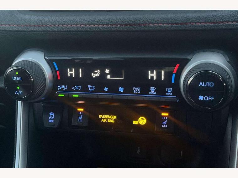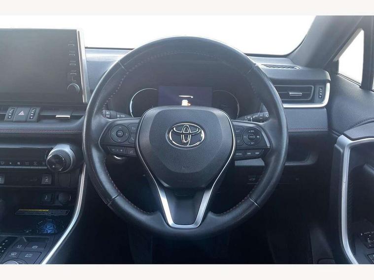 7" Coloured TFT multi informational display, Analog tachometer, Apple car play and Android auto, Blind spot monitoring with rear cross traffic alert, Bluetooth system, Cyclist Detection, Day and night time pedestrian detection, Digital speedometer, Drive mode selector, Driver attention alert system, eCall emergency call system, ECO-driving indicator, Electric power steering, EV audible alert, Front parking sensors, Hybrid system indicator, Intelligent adaptive cruise control, Lane departure alert with steering control, Lane trace assist, Lights on warning, Memory on adjustable speed limiter, My T Connected services, Power boot opening and closing, Push button start, Rear parking camera, Rear parking sensors, Remote boot door release in cabin, Remote boot door release in key, Road sign assist - RSA, Smartphone integration, Touch 2 Go navigation system, Traffic sign recognition, Trip computer, Voice control system, Wireless Mobile Phone Charger, 6.6 kw fast charger, 7.5m cable with home charging plug, Vehicle Stability Control (VSC), 2x USB sockets in front armrest, 2x USB sockets in rear, 6 speakers, 9" Multimedia display, Auxiliary socket for external MP3 player, DAB audio, Toyota touch 2 multimedia system, USB in front centre console, Anti-jam protection on power windows, Auto high beam, Auto up and down function on all power windows, Automatic headlamp levelling, Automatic headlights, Automatic wipers, Automatically retractable door mirrors, Bi-tone black roof, Black door mirrors, Black door moulding, Black front bumper, Black front grille, Black front under-run, Black rear bumper, Black rear spoiler, Black rear under-run, Black roof rails, Black Shark-fin antenna, Body colour door handles, Chrome window surround, Door mirror puddle lights, Dual exhaust pipes, Electric adjustable door mirrors, Emergency brake-light signal (EBS), Follow me home headlights, Framed electrochromatic rear view mirror, Front fog lights, Heated door mirrors, Honeycomb upper front grille, LED daytime running lights, LED dual beam projector headlights, LED front light guide, LED High mounted stop lamp, LED rear lights, Power front windows, Power rear windows, Privacy glass, Rear windscreen defogger, Rear wiper, Trailer sway control, Turning signal integrated indicators in door mirrors, 1.5L front and rear bottle holder, 12V socket in boot, 12V socket in front, 220v power socket in boot, 2x Rear coat hooks, 3 rear headrests, 60/40 split fold rear seat back with toyota easy flat system, Adjustable speed limiter switch on steering wheel, Array microphone, Black roof lining, Blue ambient lighting on front cupholders and open tray on passenger dashboard, Boot light, Clean air filter, Driver and front passenger personal light, Driver and front passenger Whiplash Injury Lessening seats, Driver and passenger seatback pockets, Driver and passenger sunvisors with illuminated vanity mirrors, Dual sided deck board in boot, Dynamic sports seats, Floor mats, Folding rear centre armrest, Front centre armrest, Front cupholders, Front footwell lights, Front headrests, Front/rear roof mounted assist grips, Heated driver and front passenger seats, Heated rear seats, Illuminated entry system, Isofix child seat preparation, Leather gearshift, Lockable glovebox, Manual telescopic and tilt 3-spoke nappa leather steering wheel, Manually reclining and sliding front passenger seat, Multimedia switches on steering wheel, Pollen filter, Power height-adjustable sliding reclining and lumbar support for driver seat, Rear console box, Rear door armrests with cupholder, Rear passenger air vents, Rear view display in display audio screen with dynamic guide lines, Reclining rear seats, Remote dual zone automatic air conditioning, Retractable tonneau cover, Satin chrome interior door handles, Silver gear shift surround on centre console, Sunglasses holder, Synthetic leather upholstery, Telephone and voice recognition switches on steering wheel, Under floor storage in luggage area, 3x3 point rear seatbelts, ABS/EBD, Acoustic vehicle alerting system, Adjustable front driver and passenger seat belt extender, Brake assist function, Brake hold function, Child proof door locks, Collision mitigation braking system, Driver/Front Passenger airbags, Driver/front passenger side airbags, Drivers knee airbag, Electronic parking brake, Electronic Stability Programme (ESP), Front and rear curtain airbags, Front and rear seatbelt reminder, Front passenger airbag detector, Hill start assist, Passenger airbag cut-off device, Pedestrian detection, Pre collision system, Seatbelt pretensioners with load limiters, Toyota safety sense, Traction control, Tyre pressure warning, Glass-breaking alarm sensors, Immobiliser, Intrusion alarm, Light - on and Key in reminder, Motion sensor alarm, Remote central locking, Smart entry + Smart start, Speed sensitive auto door locking, Tilt detection sensors, Black centre air vent surround, Black centre console, Soft-touch black upper dashboard with silver insert, Soft-touch texture on lower dashboard, 19" 5 spoke black machined face alloy wheels, Tyre repair kit,