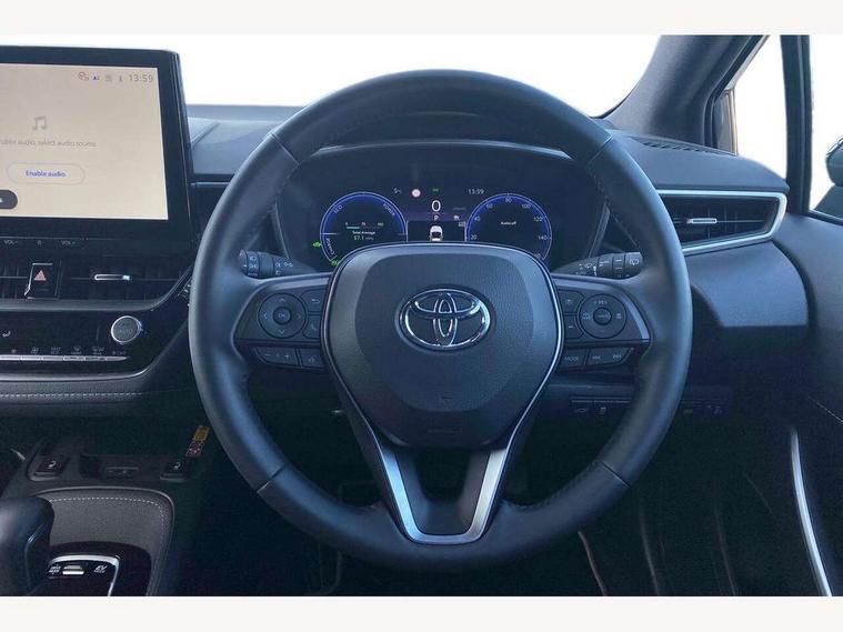 10.5" Multimedia display screen, 12.3" multi information screen, Adjustable speed limiter, Bluetooth telephone connectivity, Colour multi information display with 3D, Connected car functionality upgrade, tracker, remote status and e-care, Drive mode select (Eco, Normal), E-call, Electrically assisted power steering, EV drive indicator, Front and rear parking sensors, Full Digital 12.3" TFT Digital Combimeter, Gear position indicator with meter, Hybrid system indicator, Intelligent parking assist, Key reminder warning, Lane Departure Alert (LDA) switch on steering wheel, Lane departure alert - LDA, Memory on adjustable speed limiter, MyT connected services, Proactive driving assist (PDA), Reversing camera, Smart entry and push button start, Smartphone integration with Apple CarPlay and wired android auto, Speedometer, Toyota remote services, Toyota smart connect multimedia system, Toyota smart connect navigation, Wireless charger, Catalytic converter, Double wishbone rear suspension, Electric accelerator pedal, Front and rear stabilizers, Front differential 2.834, Gasoline particulate filter, MacPherson front suspension, Vehicle Stability Control (VSC), 6 speakers, DAB Digital radio, Smart voice assist/ Voice recognition, USB connector, 20% privacy rear side and quarter glass, A - Pillar garnish, Adaptive automatic high beam system (AHS), Aluminium roof rails, Anti-jam protection on power windows, Auto dimming rear view mirror, Auto headlights, Auto up and down function on all power windows, Automatic folding mirrors, B - Pillar in Black, Black door moulding, Black metallic meshed front grille, Black side air vents, Black toyota logo in front, Body colour rear roof spoiler, Body coloured door mirrors, Body coloured front spoiler, Body coloured outside door handles, Body coloured rear bumpers, Electrochromatic mirror, Ethanol washer fluid, Follow me home headlights, Front and rear fender high liner, Front bumper, Fuel caution label, Gloss black diffuser, Gloss black upper front grille, Height memory opening on power tailgate, LED daytime running lights, LED dual beam projector headlights, LED front fog lights, LED High mounted stop light, LED rear combi lights with LED lightguide, Light remind warning with auto cut off, Lower back and back door plated garnish, Manual headlight levelling system, New grille pattern, Noise reduction layer on front windows, Noise reduction layer on windscreen, Paint protective wrap guard, Power adjustable heated door mirrors, Power front windows, Power rear windows, Power tailgate with kick sensor, Rain sensing wipers, Rear bumper decoration with chrome plated inserts, Rear privacy windows, Rear side wing doors, Rear under guard with chrome ornament, Rear window defogger, Rear window wiper, Remote tailgate release on key, Reverse tilting door mirrors, RHD aimed headlight levelling system, Satin chrome insert on front door assist grips, Satin chrome inserts on rear passenger air vents, Satin chrome surround on lower front grille, Shark fin antenna, Single exhaust tailpipe, Tailgate release with push button, Tailgate remote release in cabin, Time adjustment on intermittent wiper, Turning signal integrated indicators in door mirrors, Unique lower skirt, UV-filter on driver and passenger windows, 12v power outlet - front, 12v power outlet - luggage side, 2 Shopping bag hooks in luggage compartment, 3 rear height adjustable headrests, 3 seat bench in 2nd row, 3 spoke steering wheel with satin insert, 4 tie down hooks in luggage compartment, 60/40 split folding rear seat, Adaptive cruise control (ACC) switch on steering wheel, Adjustable speed limiter switch on steering wheel, Aluminium door scuff plates with corolla batch, Audio, multi-info and telephone switches on steering wheel, Automatic light control system, Black armrest on centre console box, Black out with door sash and wheel house, Boot underfloor storage, Center console cover, Clean air filter, Driver and front passenger personal light, Driver and passenger sun visor with mirror and light, Dual level deckboard, Dual mike in roof, Dual sided boot floor, Dual zone automatic air conditioning with ECO mode switch, Electric lumbar support for passenger, Fabric upholstery, Forward tilting 2nd row seats, Front and rear bottle holders, Front and rear door pockets, Front console box with stitching, Front floor mats, Front head restraints, Front overhead assist grips, Front passenger seat, Front sliding synthetic leather armrest, Gear knob, Gloss black gear shift console, Heated front seats, Illuminated entry system in room lamp, ISOFIX child restraint system, Leather gear shift with satin chrome on gear shift console, LED boot light, Manual height adjustable for driver and front passenger seat, Manual tilt and telescopic steering wheel, Manually sliding driver seat, Manually sliding front passenger seat, Matt black front door assist grip, Nanoe-X air purifier, Passenger seat back pocket, Pollen filter, Power adjustable lumbar support on driver seat, Power window switches with satin chrome inserts, PVC door armrest, Rear air vents, Rear armrest with 2 cupholders, Rear fabric floor mats, Rear overhead assist grips, Rear passenger coat hooks (2), Rear passenger personal lights, Refrigerant correspondent hf01234f, Regulation compliancy wvta label +, Remote air conditioning, Remote controlled Toyota easy flat system, Retractable tonneau cover with luggage partition net, Satin chrome inserts on centre air vents, Satin chrome inside door handles, Satin chrome surround on heater control panel, Satin chrome surround on multimedia, Satin chrome surround on speedometer, Side storage in boot, Slow opening glovebox with lights, Soft touch front and rear door trim, USB charger front, Voice recognition switch on steering wheel, Whiplash Injury Lessening (WIL) feature (active headrest) for seats, White ambient lighting on open tray and front cup holder, Toyota safety sense 3 pack - Corolla, 15" Front brakes, 3x3 point rear seatbe