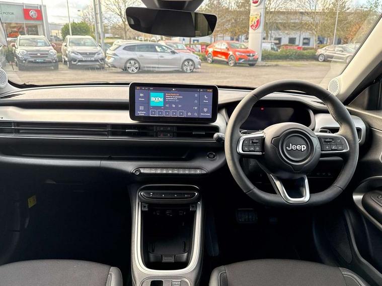 (AEB) Autonomous Emergency Braking with pedestrian and cyclist recognition, 10.25" Full TFT reconfigurable colour cluster, 180 Degree rear camera with drone view, 360 degree parking sensors, Adaptive cruise control, All-Terrain Mode Selector, Apple Carplay/Android Auto with wireless mirroring, BSRF connectivity box, Connectivity services, Drowsy driver detection system, eCall emergency call system, Keyless Start/Engine On Button, L2 Autonomous driving, Lane Centering, Lane keep assist, Odometer, PAS, Quick Guide English, Rear parking sensors, Rear view camera with dynamic grid lines, Telematic box and connected services, Traffic jam assist, Traffic sign recognition, Urban blind spot monitor, Warranty Booklet - UK, Wireless charging, Battery default, High efficiency alternator, Idle coasting, L2-AGM 12V battery, Rear USB port with type-C charging, 3rd brake light, 7 Slots grille in gloss black, All power windows express Up/Down, Automatic headlights, Automatic high/low beam, Body colour exterior door handles, Day time running light, Frameless auto dimming interior rear view mirror, Full LED headlights, Gloss black mirror caps, LED Fog lamps with cornering function, LED rear lights, Power foldable mirrors, Rain sensor, Rear side wing doors, Rear wiper, Silver skid plates, Welcome/leaving lighting, Wiring preperation for towing group by Mopar, 3 rear headrests, 3 seat bench in 2nd row, Automatic A/C (1 Zone), Central console dividers x2, Driver and front passenger sunvisor with vanity mirror, Foldable second row seats 40/60 - Fix and Fold, Front and rear velour floor mats, Front central armrest with storage, Front head restraints, Front passenger grab handle, Front passenger isofix child seat attachment, Front seat backrest pocket, Height adjustable cargo floor, I am Jeep label, Paddle shifter, Predisposal for tunnel pad cover, Single front passenger seat, Synthetic leather steering wheel, Tunnel pad cover and interior rubber mats "Jeep", Anti-lock braking system (ABS), Child locks on rear doors, Electric parking brake, ESC - Electronic Stability Control + traction control, Hill descent control, Kit fix and go predisposition/housing only, Rear seat ISOFIX, Three 3 point rear seatbelts, Volumetric anti theft alarm, Painted silver dashboard, 18" Diamond cut alloy wheels painted in matt black with summer not chainable, Fix and go tyre repair kit,