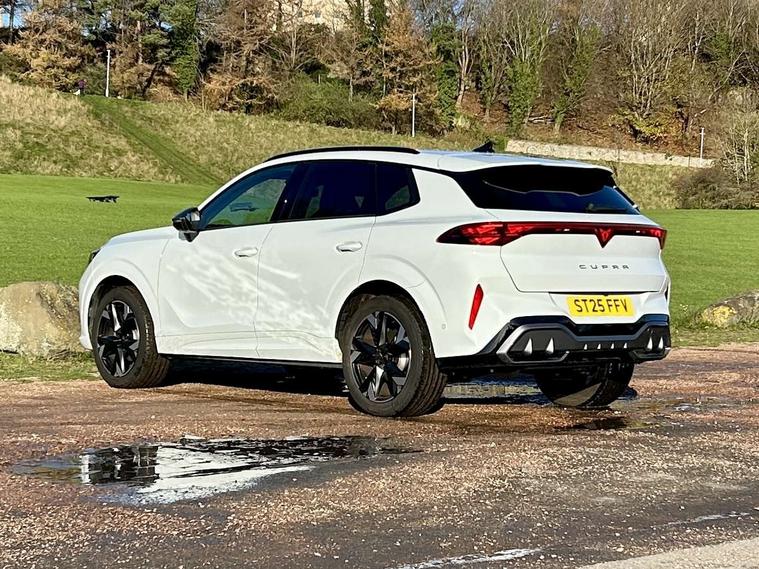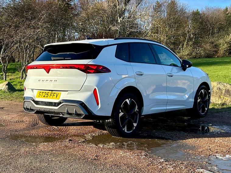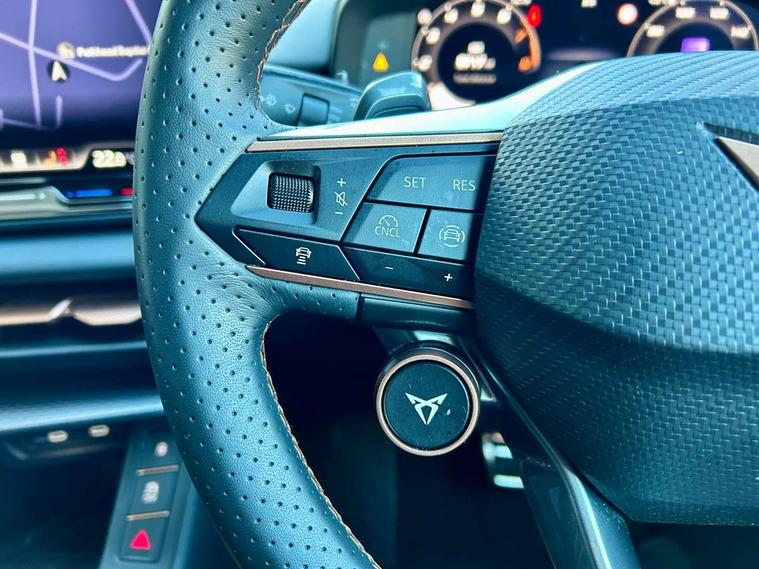 10.25" digital cockpit and configurable dashboard, Adaptive cruise control with follow-to-stop and speed limiter, Advanced driver alert system, Advanced lane assist with semi-automatic vehicle control in a medical emergency and traffic jam assist, Driving profile selection and conventional shock absorber, Dynamic road sign display, E-call, Electric tailgate with virtual pedal, Emergency steering support with turn assist, Four x USB Type C ports (2 in front and 2 in rear), Front and rear parking sensors, Front assist (Forward collision warning with automatic braking) with multifunction camera and front cross traffic assist, Head up Display, Intelligent park assist, Media system with Nav - 12.9" touch display, voice control, full link phone (wired/wireless), DAB and Steering wheel mounted controls, Rear traffic assist, Side and exit assist, Speed sensitive power steering, Start/stop system with regenerative braking, Top view camera (front camera, rear camera, 2 side cameras), Wireless phone charger, Auto dimming rear view mirror, Black roof rails, CUPRA 3D rear lights with ceremony & swiping indicator and illuminated logo, Dark tinted rear windows, Daytime running lights with automatic headlight control and Coming and Leaving home function, Door mirrors with memory function and lowing function on passenger mirror, Dynamic headlight range control, Electric front/rear windows, Electrically adjustable, heated and folding door mirrors, Front fog lamps with cornering function, Heat reflecting windscreen, High beam assist, LED headlamps with signature "CUPRA LED", Rain sensing wipers, Rear fog light on one side, back up light on both sides, Rear side wing doors, Rear wash/wipe, Third brake light, Welcome lights (within exterior mirror housing), 3 seat bench in 2nd row, Black roof lining, Cupra sports pedals, Dinamica cloth upholstery, Driver seat memory function, Electrically adjustable front seats including lumbar support, Front and rear head restraints, Front and rear reading lights X 4, Front centre armrest, Heated front seats, Heated leather wrapped multi function sports steering wheel with tiptronic, Illuminated interior front door sills, Isofix, Operating voltage 12V, Single front passenger seat, Smart wraparound interior lighting, Sunvisors with illuminated mirror, Three zone climate control with control panel in rear, Unsplit rear seat bench, split folding backrest, with centre armrest, Variable luggage/load compartment floor, 3 point seatbelts in front with pretensioner and electric height adjustment, 3 point seatbelts on all rear seats, Brake control system - ESC and brake booster, Child proof door locks, Driver and front passenger airbags, Electronic parking brake, Front and rear disc brakes, Front interaction airbag, Front passenger airbag deactivation switch, Front side airbags with curtain airbags, Pre-crash front and rear seat belt tensioner, window closure and hazard lights, Tyre pressure monitoring system, Visual and acoustic seat belt reminder, electric contact in front and rear, Anti theft alarm, Keyless locking and starting system with keyless access, Locking wheel bolts, Black decorative trims, Chrome interior detailing, 19" Spectrum exclusive machine alloy wheels, Tool kit,