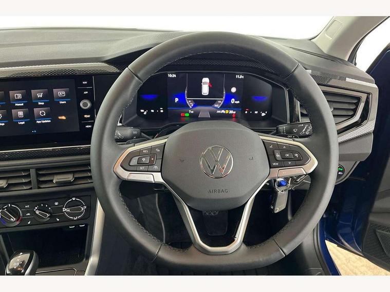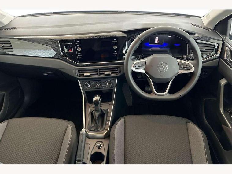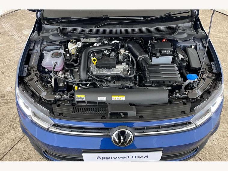 Advanced driver attention and drowsiness monitor, Bluetooth mobile phone interface, Dynamic road sign display, Emergency call service, Multifunction front facing camera for distance control, Power assisted speed sensitive steering, Predictive adaptive cruise control without follow-to-stop and speed limiter, Preparation for navigation system with media and internet package, Preparation for We connect and We connect plus, Rear view camera, Speedo and rev counter, electronic odometer, trip, service interval display and exterior temperature gauge, Standard rear axle, Travel Assist - Lane keeping system and traffic jam assist, Travel assist including emergency assist, Trip computer, Warning signal and warning light for front and rear seatbelts not fastened, Washer fluid level indicator, Wireless app connect, Front wheel drive, Rear shock absorpion, Start-stop system with battery regeneration (recuperation - energy recovery during braking), DAB Digital radio, Diversity antenna for FM reception, Automatic dimming interior rear view mirror, Automatic headlight control with LED separate daytime running lights with coming/leaving home function, Body colour bumpers with chrome inserts, Body colour door handles, Body colour door mirrors, Electric front windows, Engine badge deletion, Headlight range adjustment, Heat insulating and laminated safety glass windshield, LED Headlights, LED rear combination lamps, Power folding adjustable/heated exterior mirrors and front passenger exterior mirror lowering function, Rain sensor, Rear electric windows, Rear fog light, Rear side wing doors, Rear tinted glass from B-pillar backwards approx 65% tinted, Rear windscreen washer and wiper with interval delay, Third brake light, 12V power socket in centre console, 2 front and 2 rear reading lights with switch off delay and dimmer, 2 USB-C ports in the front, 2 USB-C charging sockets on the center console in the rear, 3 rear head restraints, 60/40 split folding rear seat and rear seat bench not split, Ceramique roof lining, Chrome plated radiator grille inserts, air vent surrounds and light switch surrounds, Door and side trim panel, Driver and front passenger seat height adjustment, Driver/passenger sunvisors with illuminated vanity mirrors, Front centre armrest, Front seat backrest storage pockets, Front standard seats, Handbrake lever handle in leather, Hartley/Thomas cloth upholstery, Headliner in recycled material, Isofix child seat preparation easy-fit (for two outer rear seats, and front passenger seat) compatible with I-size, Leather trimmed gear knob, Luggage compartment cover, Luggage compartment lighting, Removable luggage compartment floor, Single front passenger seat, Standard climatic zones, Standard pedal cluster, Three spoke leather wrapped multifunction steering wheel with shifting paddles, Light and vision pack - Polo, 3 point height adj front seatbelts + pretensioners, 3 point seat belt for centre rear seat, 3 point seatbelts, outer rear with ECE lable, ABS, Driver and front passenger airbag with front passenger airbag deactivation, Drivers and front passengers safety optimised head restraints, ESC (Electronic stability control) + EDL (Electronic Differntial lock) and ASR (Traction control), Extended and predictive pedestrian/ cyclist protection, Front assist with autonomous emergency braking (for Adaptive Cruise Control ACC up to 130 mph), Front curtain and side airbags with center airbag, Front disc brakes, Hill hold control, Manual child lock in rear doors, Rear drum brakes, Single tone horn, Tyre pressure loss indicator, Alarm with interior protection, Anti-theft alarm system with interior monitoring, backup horn, and towing protection, Anti-theft wheel bolts, Electronic engine immobiliser, Lava stone black gloss/matt decorative inserts in dash and front door panels, 16" Torsby alloy wheels, Low rolling resistance tyres,