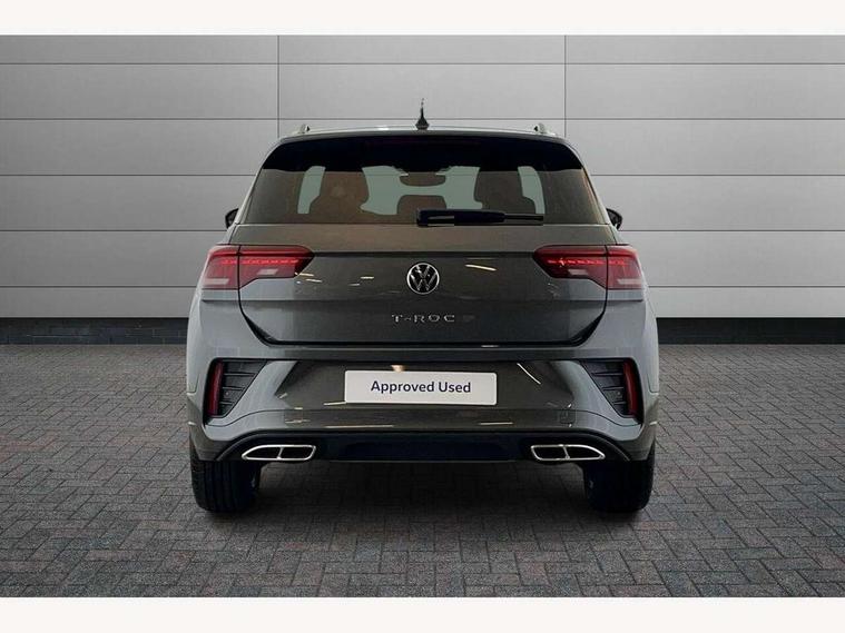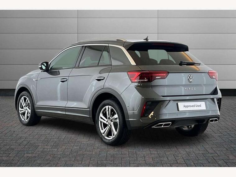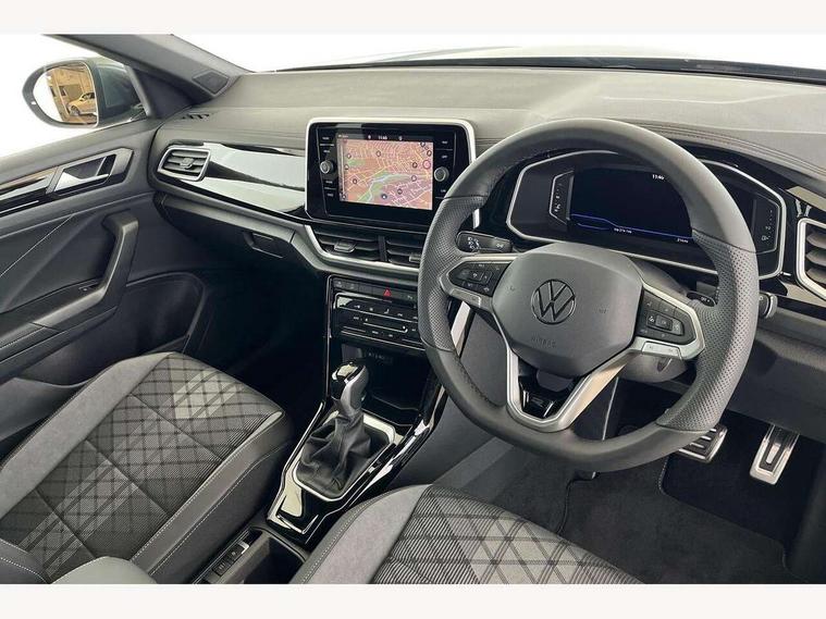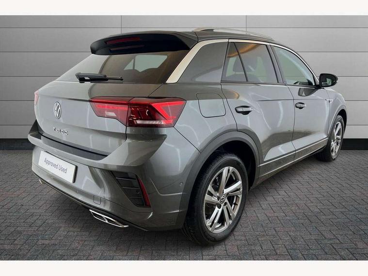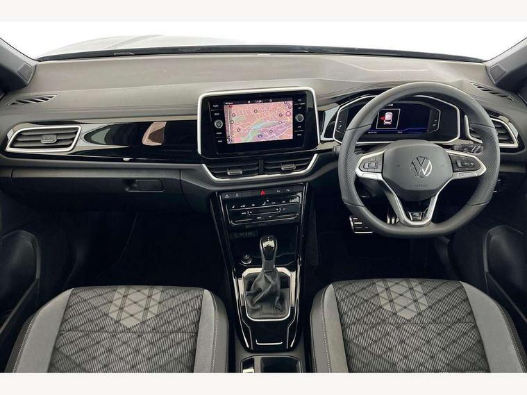 10.25" Digital cockpit pro, Advanced driver attention and drowsiness monitor, Emergency call service, Lane keeping system Lane Assist, Mobile phone interface, Modified key software - reduce switch off time for key status change to Long no motion, Online services, Park assist including front and rear parking sensors, Service interval indicator, Tailgate/trunk lid release from outside, Think blue trainer driver tips and journey analysis, Warning sound and light for front seatbelts unfastened, Wireless app connect, Battery regeneration during braking, Start/stop function with battery regeneration, DAB Digital radio, Diversity antenna for FM reception, Front and rear 6 speakers, Music playback - MP3, WMA and AAC files, Premium USB cable in choice of either Apple or Android smartphone compatibility, SD card slot, Simultaneous pairing of 2 compatible mobile devices, Title and cover art display, We Connect and We Connect Plus functionality, Auto dimming interior rear view mirror, Automatic hazard lights activation under emergency braking, Automatic headlight control with LED separate daytime running lights with coming/leaving home function, Body coloured exterior mirror housings and door handles, Electrically adjustable and heated door mirrors, Extended roof spoiler, Exterior mirrors aspherical on driver side, convex on front passenger side, External USB type C socket and charging sockets, Front windscreen wiper with intermittent wipe and 4 position delay, Heated rear window, LED 3rd brake light, LED rear combination lamps, LED rear number plate lights, Power windows with comfort operation and circuit breaker, Privacy glass for rear side windows and rear window, R-Line design body coloured bumpers, Rain sensor, Rear exhaust tailpipe, Rear fog light on one side and reversing lights on both sides, Rear side wing doors, Rear wash/wipe with intermittent wipe setting, Remote electrically foldable door mirrors, puddle lights and reverse activated passenger's door mirror, 12V power socket in centre console, 3 rear head restraints, 3 seat bench in 2nd row, 4 load lashing points in luggage compartment, Air care climatronic air conditoning system with active combination filter and 2-zone temperature control, Black roof lining, Chrome plated decorative trims, Chrome plated radiator grille inserts, air vent surrounds and light switch surrounds, Door and side trim panel with leatherette insert, Front + rear carpet mats, Front centre armrest, Front cupholders x 2, Front footwell illumination, Front reading light, Front scuff plates with R Line logo, Front seat back storage pockets, Glove compartment door with light, Instrument lighting, white adjustable panel illumination, Interior ambient lighting and surround lighting, Interior light delay, Isofix child seat preparation, Leather gearshift handle, Load-through provision with cup holder when folded down ('Unsplit rear seat bench, split folding backrest, with centre armrest), Luggage compartment lighting, Single front passenger seat, Stainless steel pedals, Storage compartment in left and right luggage area, Storage compartment in rear doors, Storage compartments in driver and front passenger doors, Sunvisors with illuminated vanity mirrors, Variable boot floor, height adjustable and removable, Driver assistance pack without proactive passenger protection - T-Roc, 3 point height adj front seatbelts + pretensioners, 3 point seatbelts in outer rear with ECE label, ABS, Child locks on rear doors, City emergency braking and pedestrian monitoring, Driver and front passenger airbag with front passenger airbag deactivation, Driver and front passenger safety-optimised head restraints, Drivers seatbelt reminder, Electronic parking brake, Electronic Stability Control (ESC) inc EDL (Electronic Differential Lock) and ASR (Traction Control), Front and rear passengers curtain airbag system including front side airbags, Hill start assist, Predictive pedestrian protection, Rear disc brakes, Two tone horn, Tyre pressure loss indicator, Volkswagen roadside assistance, Piano black decorative inserts in dashboard and front door trim panels, Trims for alloy wheels,