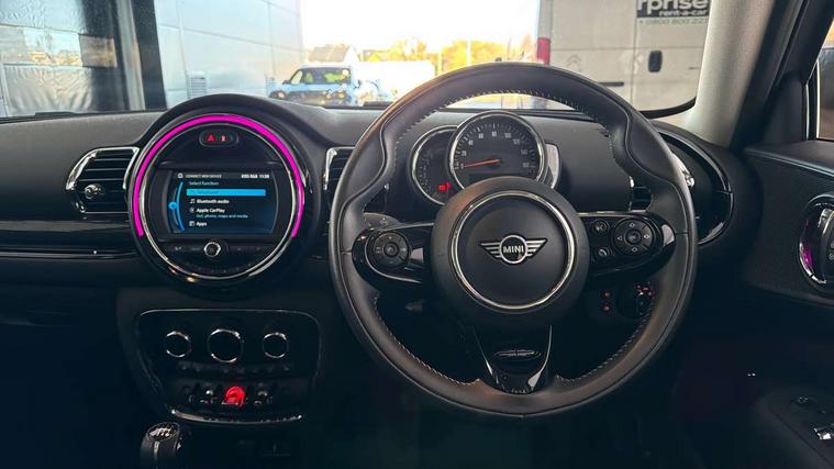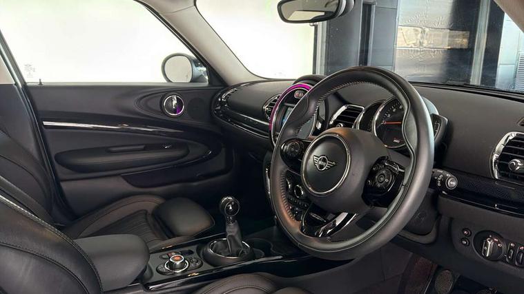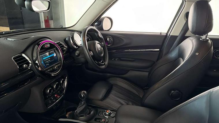 Active Guard incl speed limiting and lane departure functions with auto steering, and front collision warning with brake intervention, Automatic start/stop function with brake energy recuperation, Compatible mobile phone bluetooth with audio streaming, Electro-mechanical speed dependant steering assistance, Instrument cluster, Mini E-call, MINI TeleServices, On board computer, Double Vanos system, Fully variable valve control, High precision injection, FM tuner and DAB digital radio, Body colour fuel filler cap, Chrome line exterior, Door sill strips, Dynamic brake lights, Electric windows, Heated rear window, Heated windscreen washer jets, Left exhaust tailpipe with chrome finisher, Model logo, Model logo on rear doors, Radiator grille, Rain sensor with auto headlights, Rear fog lights, Rear window wiper, Side scuttle panel with integrated indicator, Split rear doors, Sun/heat protection glass, White indicator lenses, 12V Accessory socket in centre console, 360L luggage compartment capacity, 4 lashing eyes in luggage compartment, 60/40 split folding rear seat, Chrome interior highlights, Cupholders, English handbook, Glove compartment, Height and length steering column adjustment, Interior lighting with 12 basic colours selectable via toggle switch in roof, Isofix rear child seat preparation, Leather gearshift lever and handbrake gaiters, LED reading lights, vanity mirror lights, front foot well light and spotlight on front seats, Manual air conditioning, Mechanical seat adjustment, driver seat height adjust, forward/back and front seats backrest, MINI Yours fine walk nappa leather steering wheel with contrast stitching in silver and MINI Yours badge, Multifunction steering wheel, Storage compartments in doors, Sunvisors with vanity mirrors, Toolkit, Excitement pack - Clubman, Navigation pack - Clubman, 2 tone horn, 3 point seatbelts on all seats, 6 Airbags - front, side, head and seat belt tensioners, Anti-lock braking system (ABS), DSC - Dynamic Stability Control, Electronic handbrake, Front and rear disc brakes, Tyre pressure monitoring system, Alarm system with tilt sensor, monitoring doors, bonnet interior and tailgate, Auto drive away locking, Deadlocking function, Electronic vehicle immobiliser, Locking wheel bolts, Start/stop toggle with keyless go, Chrome line interior,