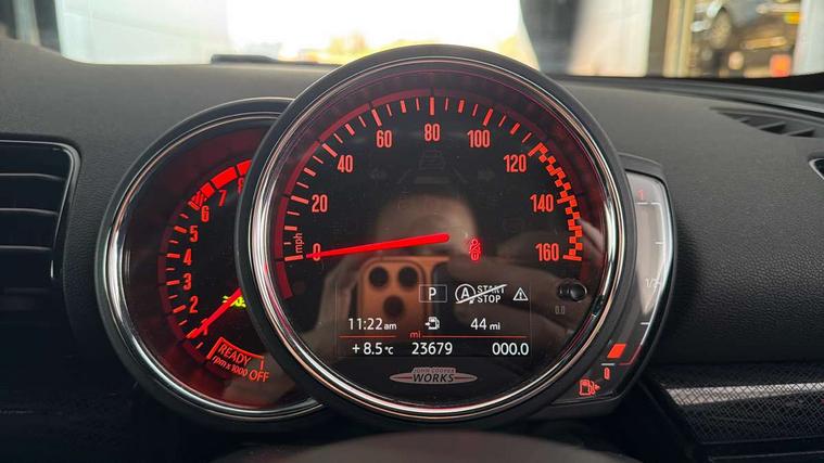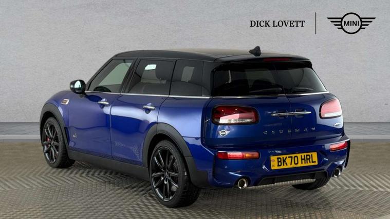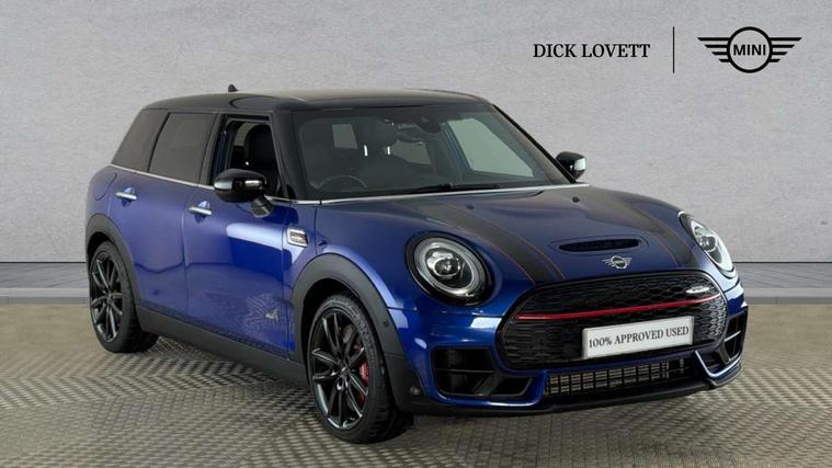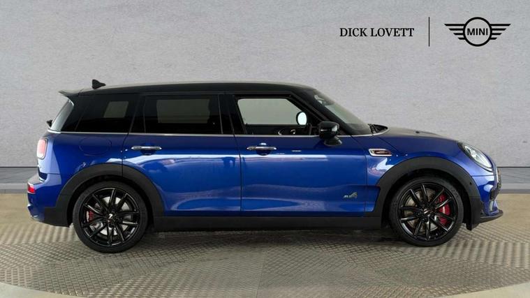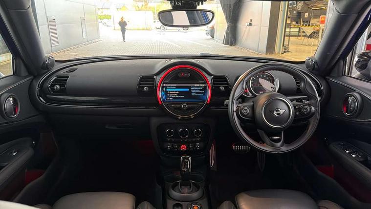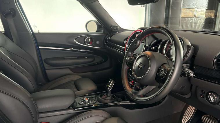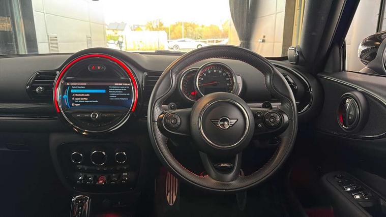 Active Guard incl speed limiting and lane departure functions with auto steering, and front collision warning with brake intervention, Automatic start/stop function with brake energy recuperation, Compatible mobile phone bluetooth with audio streaming, Digital cockpit, Electro-mechanical speed dependant steering assistance, Instrument cluster, Mini E-call, MINI TeleServices, On board computer, 8 Speed steptronic sport transmission including steering wheel paddles, All Wheel Drive (AWD), Double Vanos system, Fully variable valve control, High precision injection, Performance Control, FM tuner and DAB digital radio, Bonnet scoop, Chrome fuel filler cap, Dynamic brake lights, Electric windows, Heated rear window, Heated windscreen washer jets, John Cooper Works - aerodynamic kit (front and rear apron, spoiler), front and rear sport bumpers and part-painted side sills with door sill finishers, John Cooper Works rear spoiler, LED rear light with union jack design, Metal door sill strips with Cooper S imprint, Model logo, Model logo on rear doors, Piano black exterior, Radiator grille piano black border with honeycomb structure in matt black with John Cooper Works logo above an individual grille struct in chilli red, Rain sensor with auto headlights, Rear fog lights, Rear window wiper, Side scuttle with MINI John Cooper Works logo in high gloss black with red border, Split rear doors, Sun/heat protection glass, Twin exhaust tailpipe, White indicator lenses, 12V Accessory socket in centre console, 360L luggage compartment capacity, 4 lashing eyes in luggage compartment, 60/40 split folding rear seat, Anthracite headlining with grab handles and clothes hooks, Chrome interior highlights, Cupholders, English handbook, Glove compartment, Height and length steering column adjustment, Interior lighting with 12 basic colours selectable via toggle switch in roof, Isofix rear child seat preparation, John Cooper Works perforated leather steering wheel with contrast stitching in chilli red and John Cooper Works logo, John Cooper Works sports seat with integrated headrest, adjustable thigh support and John Cooper Works logo, Leather gearshift lever and handbrake gaiters, LED reading lights, vanity mirror lights, front foot well light and spotlight on front seats, Multifunction steering wheel, Rubberised stainless steel pedals, Storage compartments in doors, Sunvisors with vanity mirrors, Toolkit, Comfort plus pack - Mini Clubman, Excitement pack - Clubman, Navigation pack - Clubman, 17" front sport brake with 4 piston fixed calliper, 2 tone horn, 3 point seatbelts on all seats, 6 Airbags - front, side, head and seat belt tensioners, Anti-lock braking system (ABS), DSC - Dynamic Stability Control, Electronic handbrake, Front and rear disc brakes, Red brake callipers with John Cooper Works logo, Torsen mechanical limited slip differential, Tyre pressure monitoring system, Alarm system with tilt sensor, monitoring doors, bonnet interior and tailgate, Auto drive away locking, Comfort access system, Deadlocking function, Electronic vehicle immobiliser, Locking wheel bolts, Start/stop toggle with keyless go,