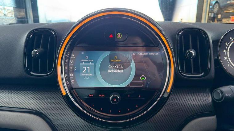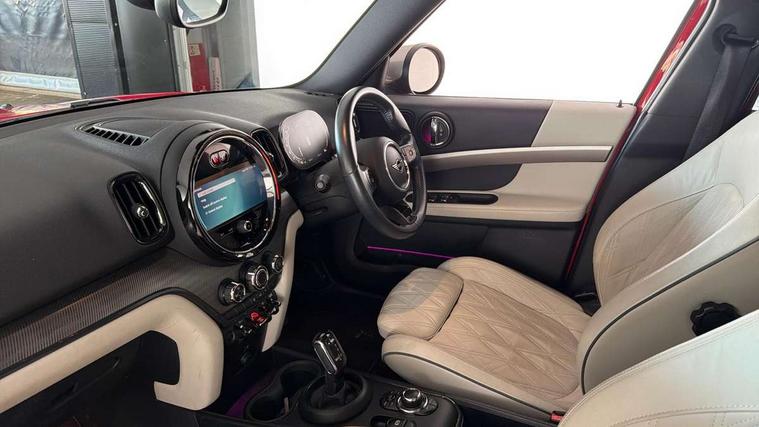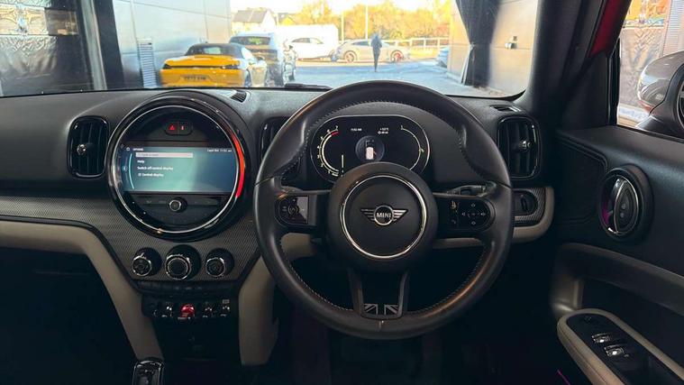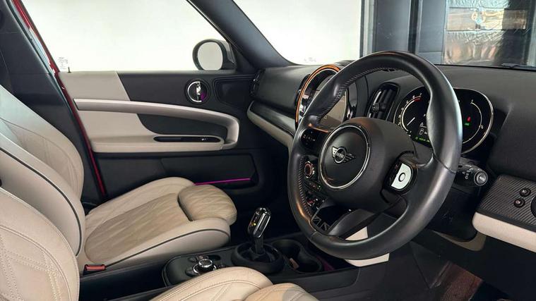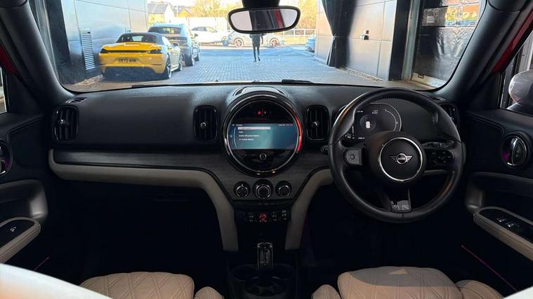 Active Guard incl speed limiting and lane departure functions with auto steering, and front collision warning with brake intervention, Automatic start/stop function with brake energy recuperation, Compatible mobile phone bluetooth with audio streaming, Cruise control with brake assist, Electro-mechanical speed dependant steering assistance, Instrument cluster, MINI Driving Modes - centre toggle switch to control driving setting (sport, mid and green), On board computer, Rear parking distance control, 51 Litre fuel tank, Automatic transmission, Double Vanos system, Fully variable valve control, High precision injection, Performance Control, FM tuner and DAB digital radio, Body colour fuel filler cap, Day time driving lights, Door sill strips, Dynamic brake lights, Electric windows, Heated rear window, Heated windscreen washer jets, LED fog lights, LED Headlights, MINI yours exterior badge in C-Pillar, driver and passenger side, Model logo, Model logo on Tailgate, Rain sensor with auto headlights, Rear fog lights, Rear window wiper, Side scuttle panel with integrated indicator, Split rear doors, Sun/heat protection glass, White indicator lenses, 12V socket in centre console, 360L luggage compartment capacity, 4 lashing eyes in luggage compartment, 40:20:40 split folding rear seats, Anthracite headlining with grab handles and clothes hooks, Chrome interior highlights, Colour line - Carbon black, Cupholders, English handbook, Front headrests, Glove compartment, Height and length steering column adjustment, Interior lighting with 12 basic colours selectable via toggle switch in roof, Isofix rear child seat preparation, Leather gearshift lever and handbrake gaiters, LED reading lights, vanity mirror lights, front foot well light and spotlight on front seats, Manual air conditioning, MINI Yours fine walk nappa leather steering wheel with contrast stitching in silver and MINI Yours badge, MINI Yours floor mats, Multifunction steering wheel, Rear headrests, Storage compartments in doors, Sunvisors with vanity mirrors, Excitement pack - Countryman, Navigation pack - Countryman, 2 tone horn, 3 point seatbelts on all seats, 6 Airbags - front, side, head and seat belt tensioners, Anti-lock braking system (ABS), DSC - Dynamic Stability Control, Electronic handbrake, Front and rear disc brakes, Hill start assist, Tyre pressure monitoring system, Alarm system with tilt sensor, monitoring doors, bonnet interior and tailgate, Auto drive away locking, Deadlocking function, Electronic vehicle immobiliser, Locking wheel bolts, Start/stop toggle with keyless go, Tool kit,